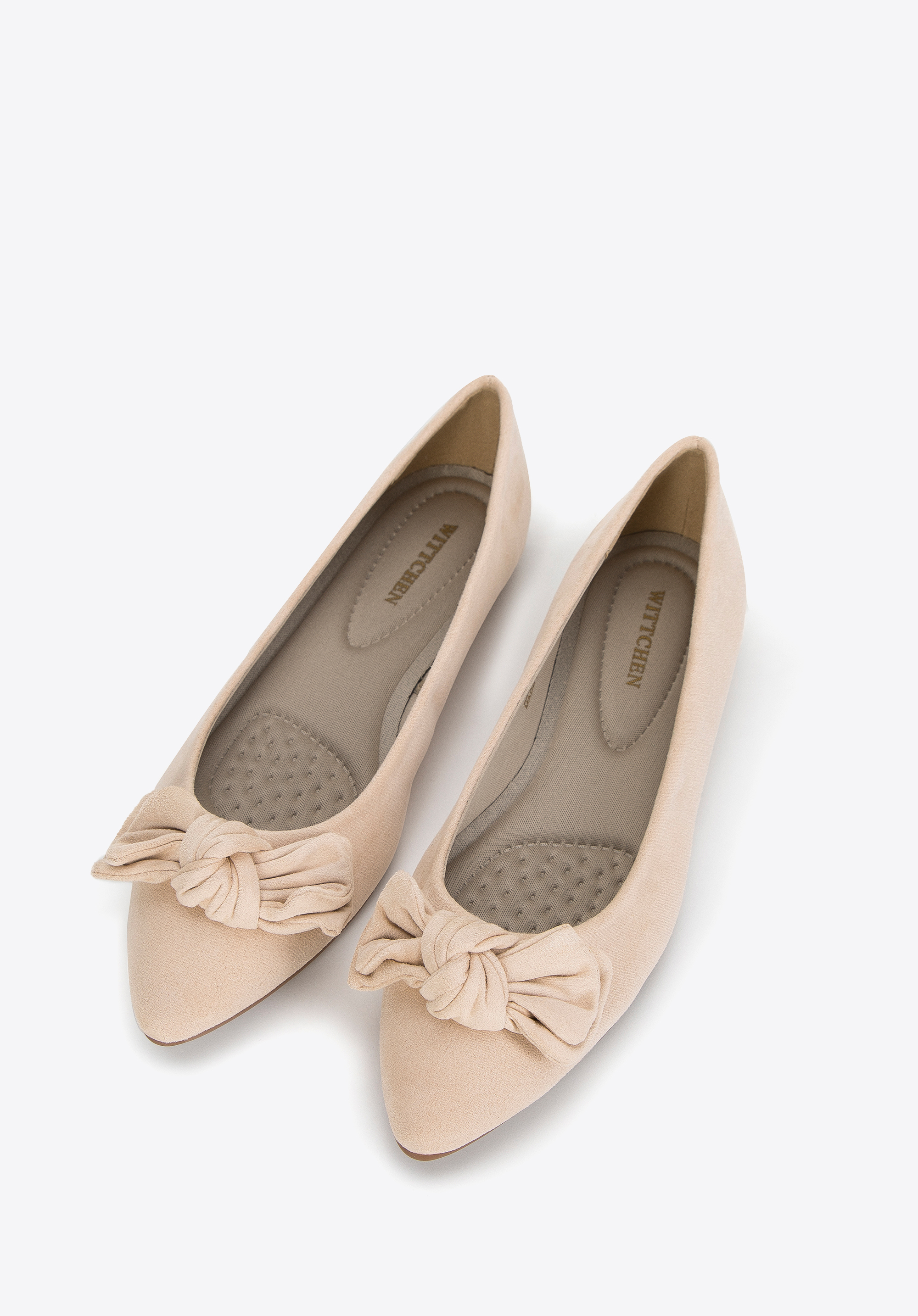 Ballerinas aus Öko-Wildleder mit Schleife Farbe: hellbeige