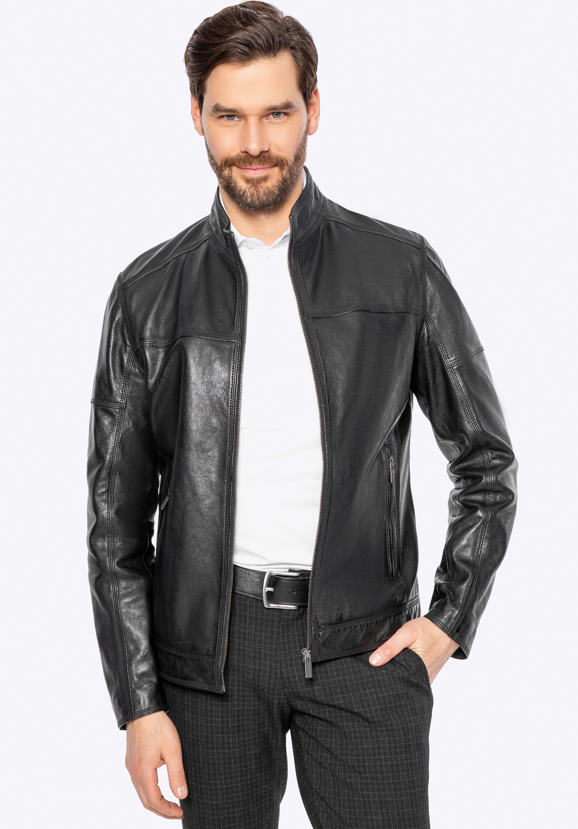 Wir präsentieren eine Jacke , die Eleganz, Modernität und zeitlosen Stil vereint. Sie ist aus natürlichem Schafsleder gefertigt und ein absolutes Must-have in der Garderobe eines jeden Mannes. Metallakzente , ein dezentes Logo an der Seite und Reißverschlüsse sowie Ziernähte verleihen ihr einen unverwechselbaren Charakter, der sofort ins Auge fällt. Durchdachte Details wie per Reißverschluss verstellbare Manschetten sorgen nicht nur für einen stilvollen Look, sondern auch für eine perfekte Passform.
