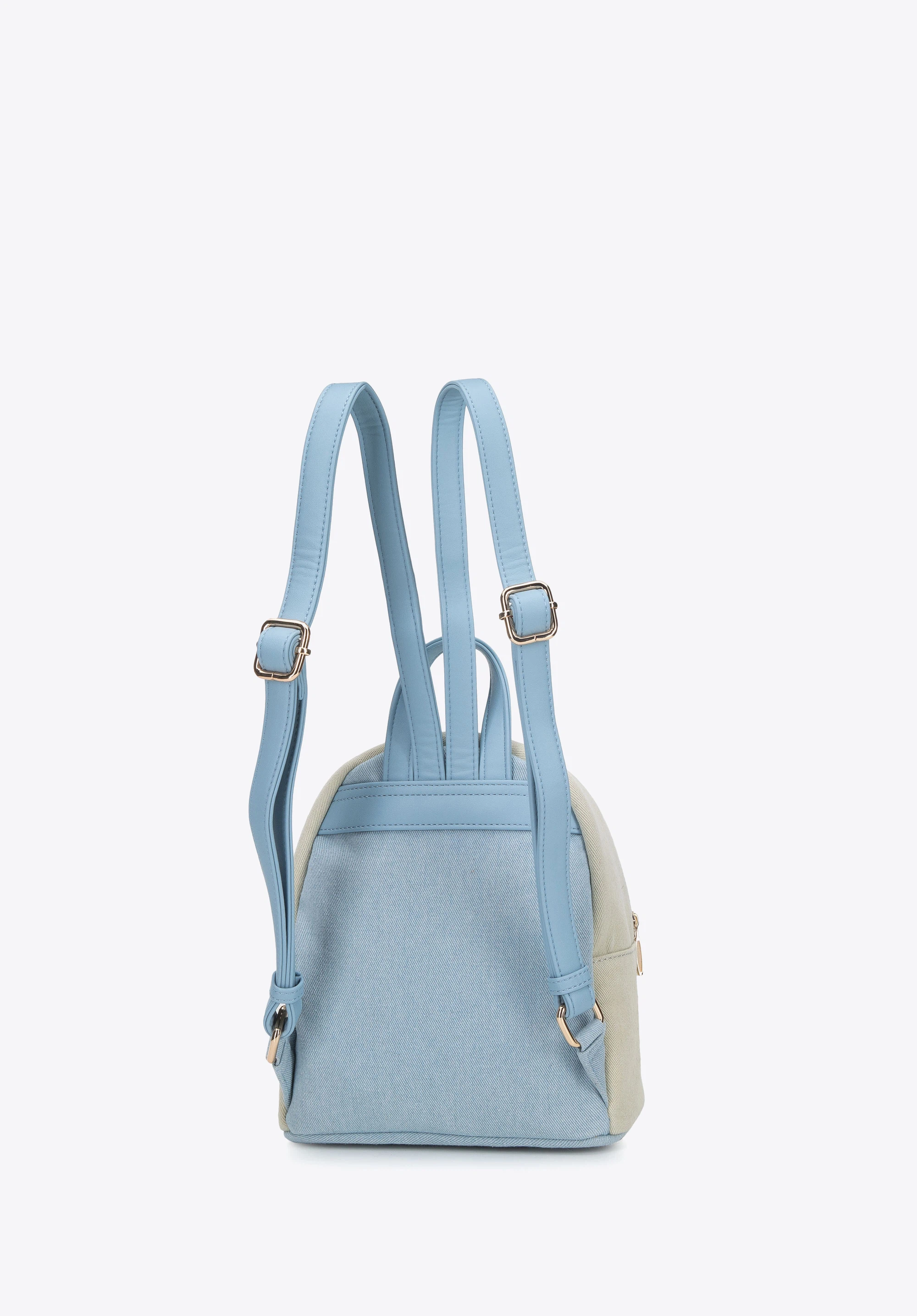Ein origineller Rucksack wird jeden Fan von Jeans begeistern. Er besteht aus Denim in zwei Farbtönen und Einsätzen aus Öko-Leder. Denim-Stoff ist auf der Vorderseite zusätzlich abgesteppt - dieser Rucksack vereint viele Trends. Sie können zum Beispiel Ihr Portemonnaie, eine kleine Flasche Wasser und ein paar Kleinigkeiten einpacken, genau richtig für ein Picknick, einen Spaziergang oder einen Einkauf. Der gesteppte Denim-Rucksack passt gut zu Casual-Looks, ist aber auch perfekt zu einem Sommerkleid. Der Damen-Rucksack aus Denim verleiht Ihrem Look Leichtigkeit und Freiheit.