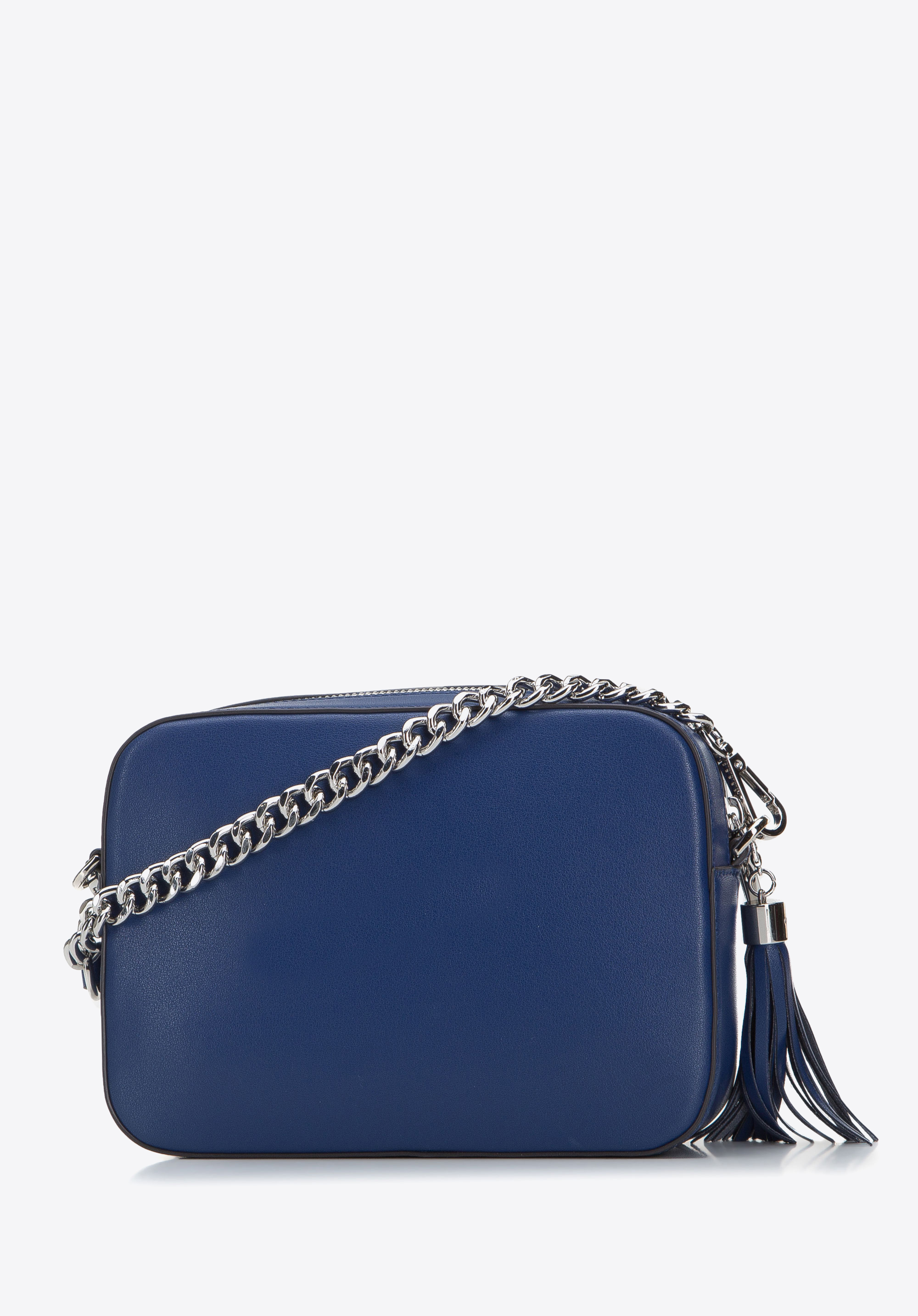 Die schlichte und zugleich elegante Umhängetasche für Damen. Sie ist aus Naturleder gefertigt und hat das WITTCHEN-Logo aus Metall auf der Vorderseite und die abnehmbare Quaste. Sie bietet Platz für eine Brieftasche und ein Handy, einen kleinen Kalender, eine Handcreme und andere Kleinigkeiten. Der Riemen der Tasche besteht zur Hälfte aus Leder und zur Hälfte aus einer Kette mit dicken Gliedern. Dieses Modell ist universell und passt hervorragend zu jeder Gelegenheit. Diese Umhängetasche aus Leder mit Quaste ist ein zeitloses Accessoire, das in Ihrem Kleiderschrank nicht fehlen darf.