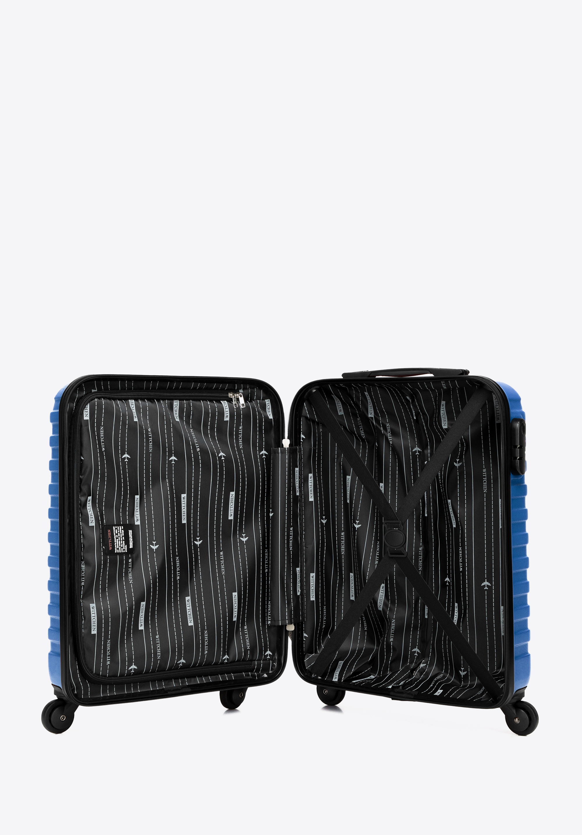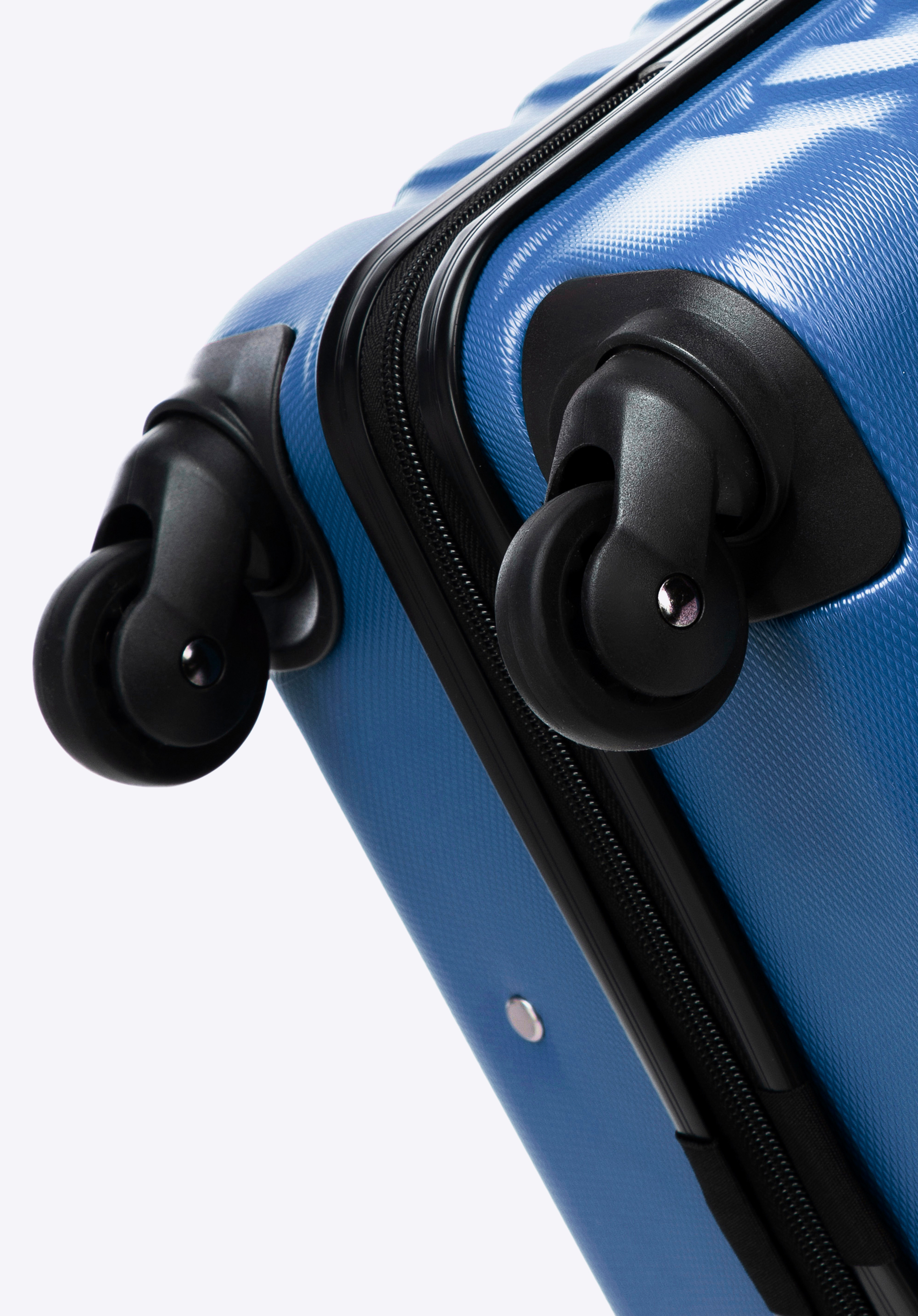 In dieser Kollektion befinden sich einfarbigen Kabinenkoffer, die aus strapazierfähigem ABS-Material hergestellt wurden. Dieses Modell passt perfekt zu einem Kosmetiketui in derselben Farbe. Dieser stillvolle Koffer ist in fünf verschiedenen Farben erhältlich: Schwarz, Rot, Grün, Blau und Gold.