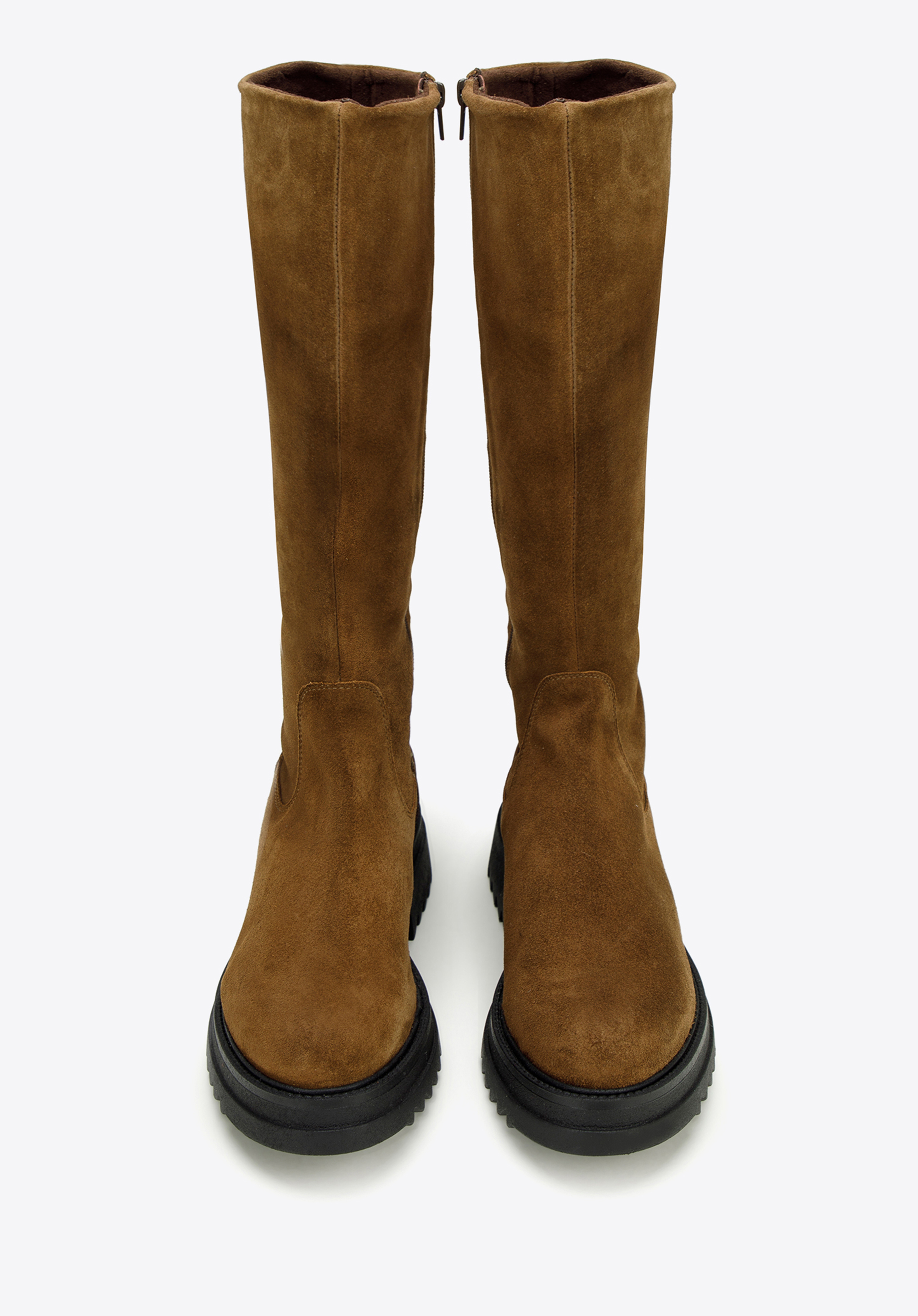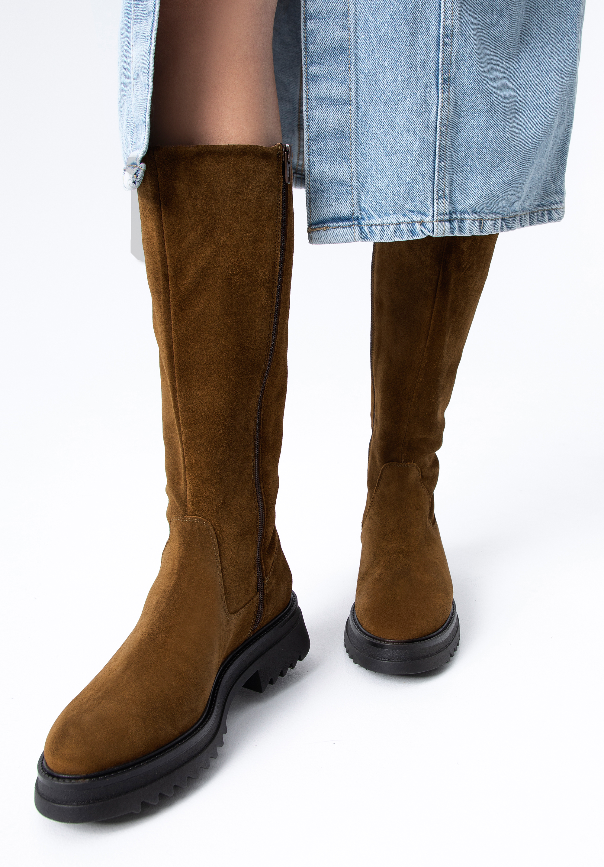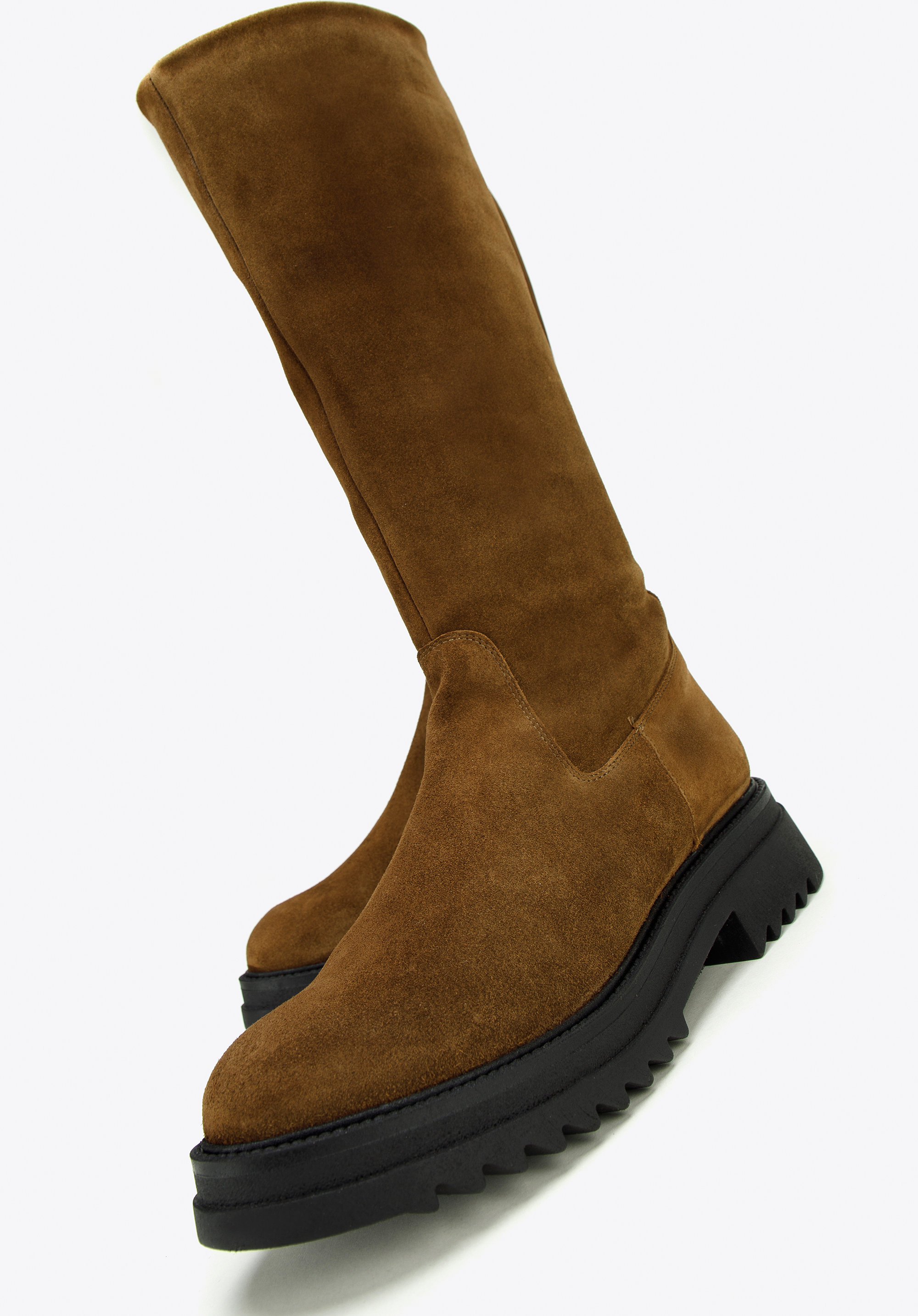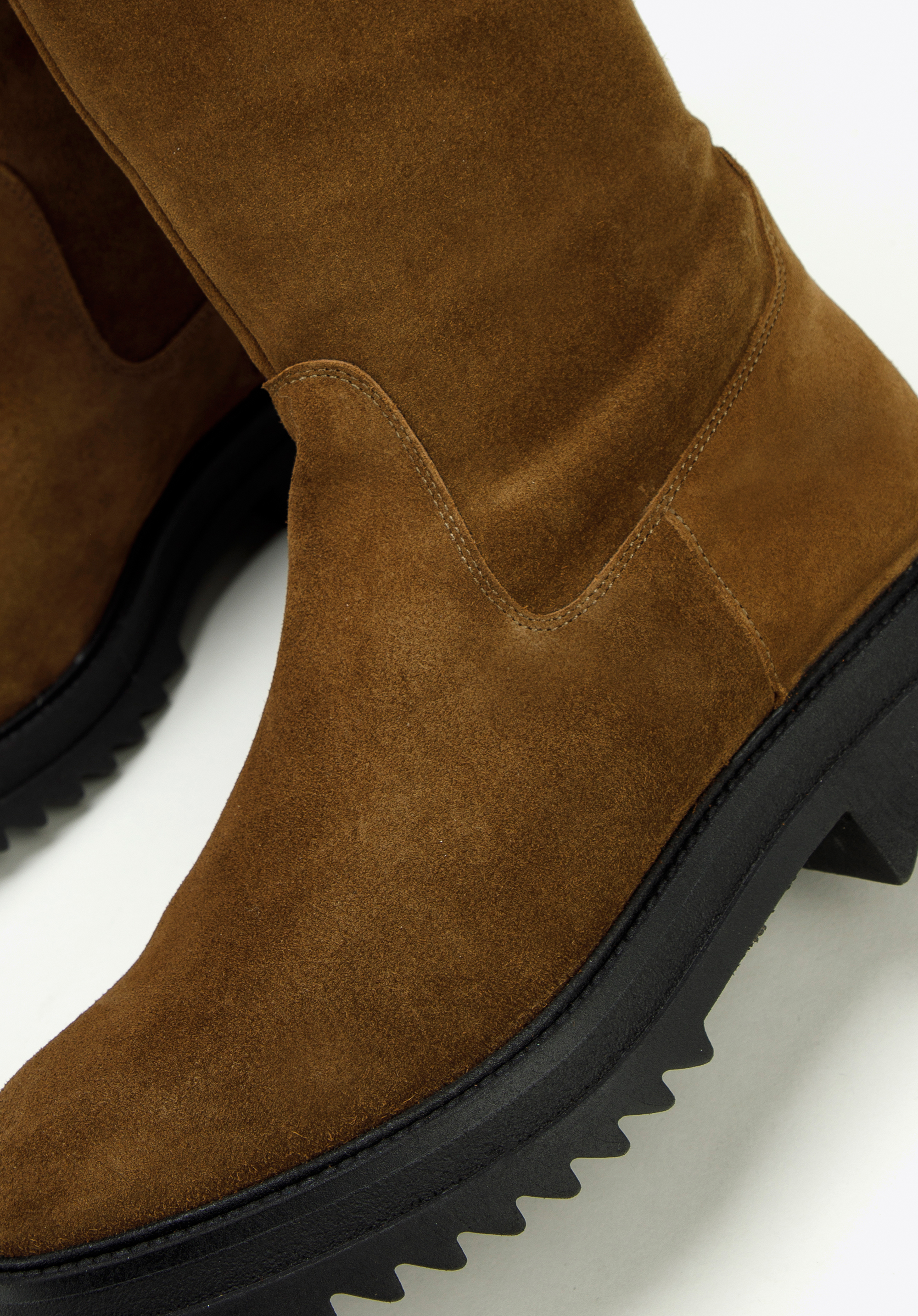 Klare Linien und schlichte Details legen den Fokus auf die klobige Plateausohle dieses kniehohen Stiefels. Eine Plateausohle verleiht jedem Look den perfekten Touch. Diese aus dem hochwertigsten Wildleder in Spanien gefertigten Statement-Schuhe zeichnen sich durch ein modisches Design aus und die Textileinlegesohle schützt vor Witterungseinflüssen. Dank des praktischen seitlichen Reißverschlusses für einen einfachen Einstieg sind sie der ideale Begleiter für Ihre Füße an kalten Wintertagen. Bringen Sie etwas Gemütlichkeit in Ihre Schuhkollektion mit einem Paar klobiger kniehoher Stiefel .