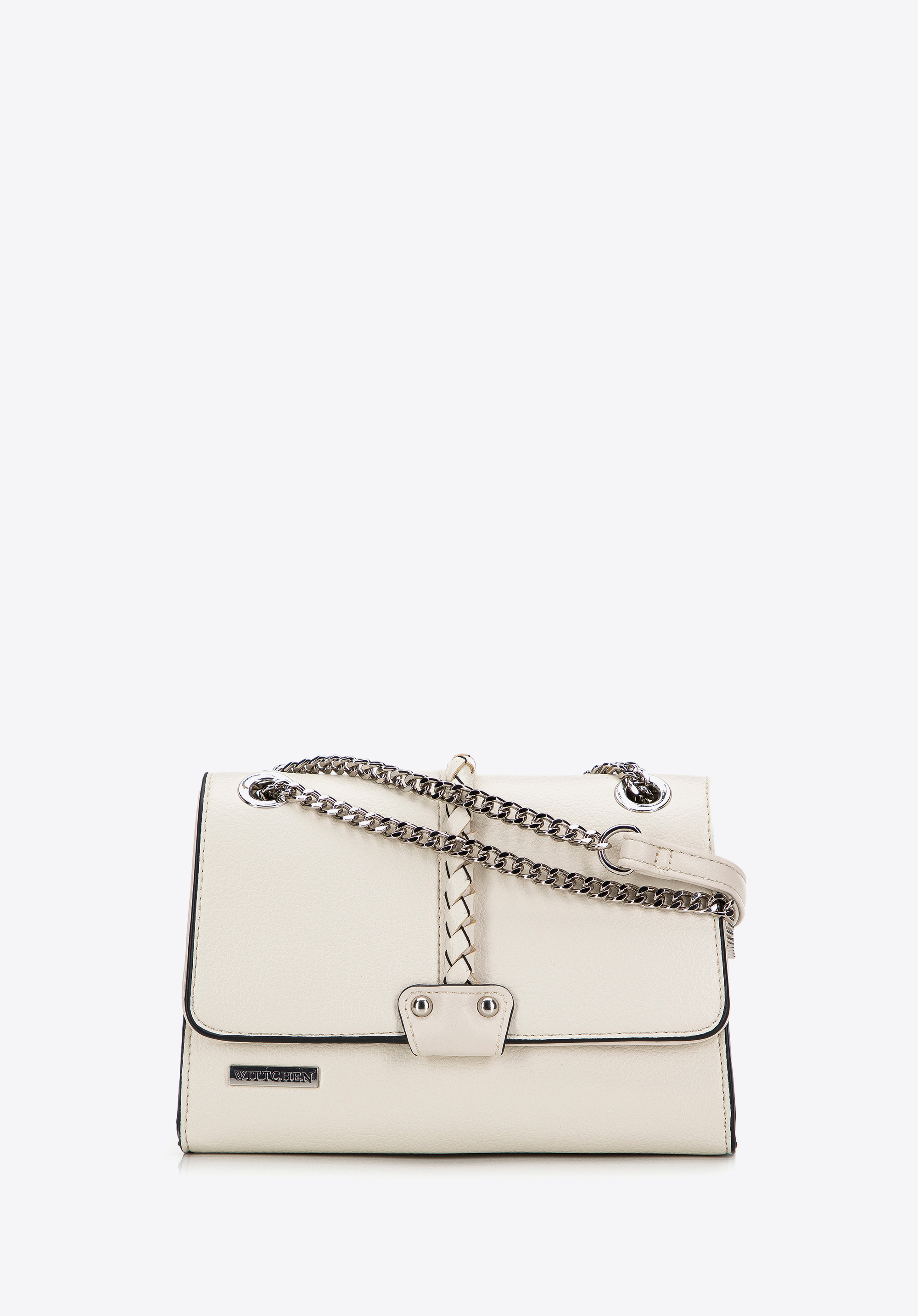 Diese kleine, elegante Klappentasche ist ein wunderschön feminines Accessoire. Verfügt über eine geflochtene Klappe mit Magnetverschluss, unter der sich eine offene Tasche befindet. Diese Klappentasche mit strukturierter Form und hübschem Design verfügt über einen Kettenschulterriemen. Hergestellt aus Kunstleder höchster Qualität, bietet es Platz für ein Kreditkartenetui, ein Telefon, Ihren Lieblingslippenstift und einige andere wichtige Dinge. Dieses verführerische Design passt gut zu einem Cocktailkleid sowie zu Boyfriend-Jeans und einem Hemd.