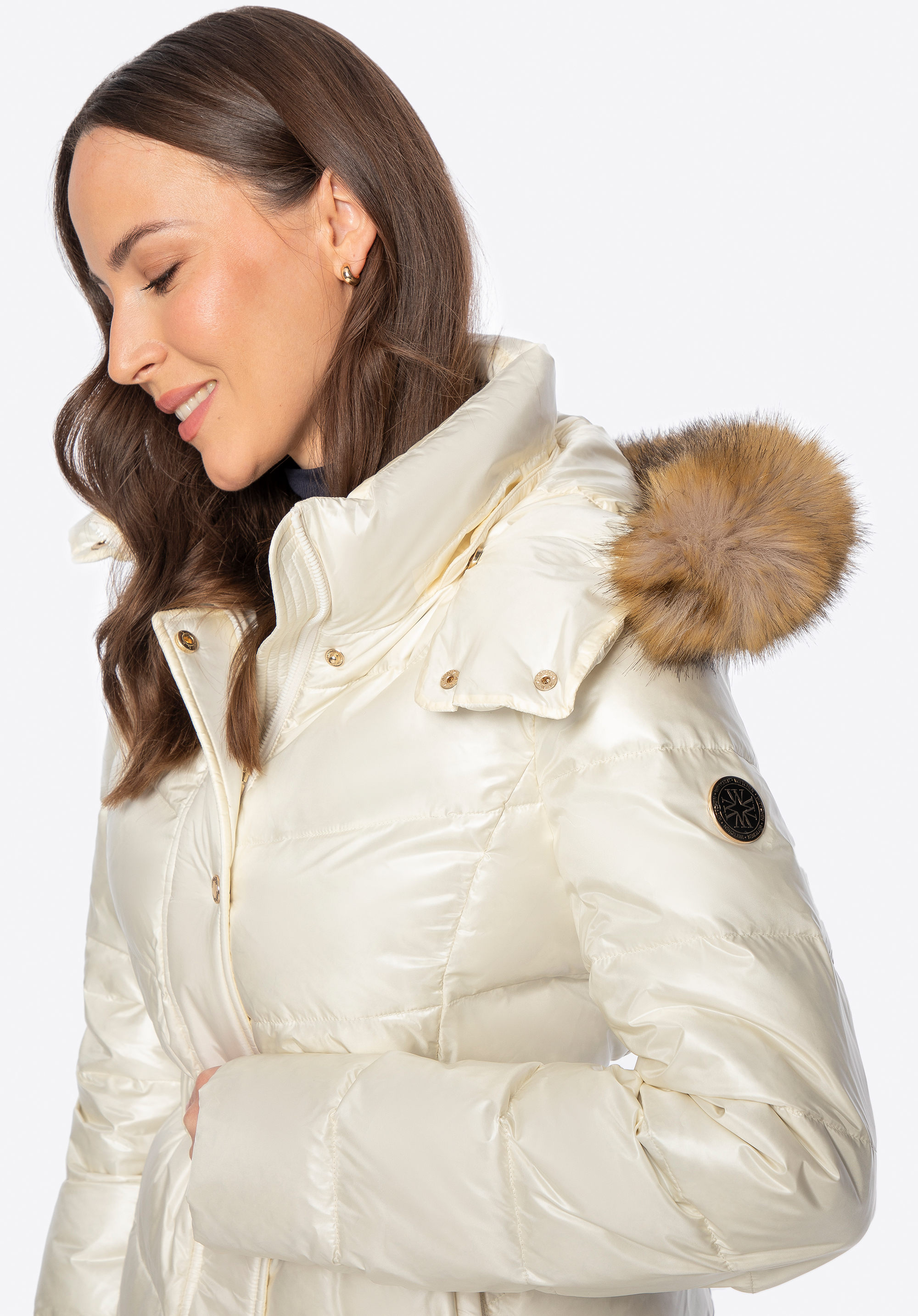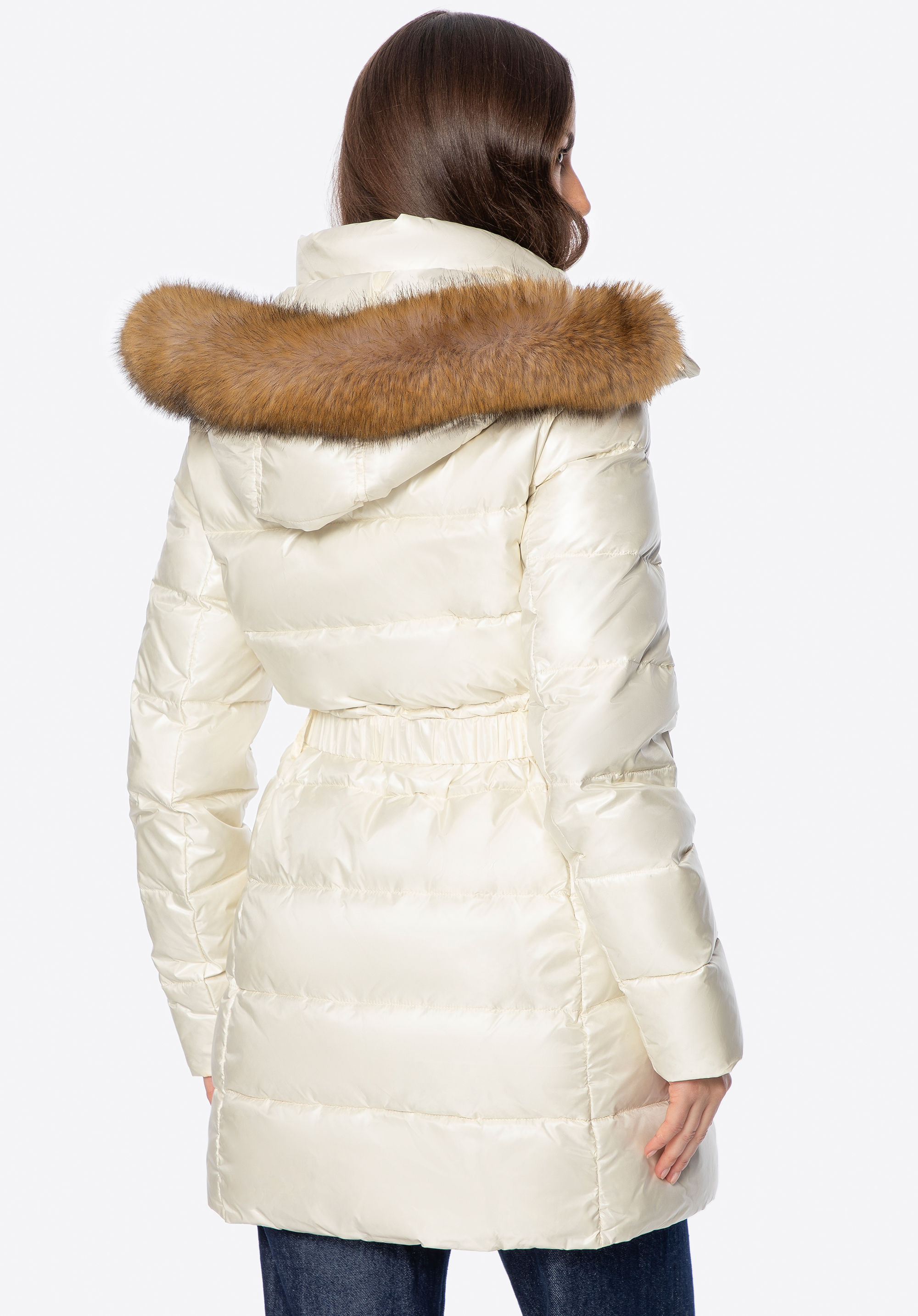 Diese Damenjacke vereint Stil und Komfort für kältere Tage. Die natürliche Daunen- und Federfüllung sorgt für hervorragende Isolierung, während das gesteppte Design Ihre Silhouette schmeichelt. Strapazierfähiges Nylon schützt vor Wind und Nässe, und das leichte Futter sorgt für ganztägigen Tragekomfort. Die Jacke verfügt über praktische Details – Reiß- und Druckknopfverschlüsse , zwei Reißverschlusstaschen , einen Taillengürtel , der die feminine Silhouette betont, und eine abnehmbare Kapuze mit Kunstfell – perfekt für viele Anlässe.