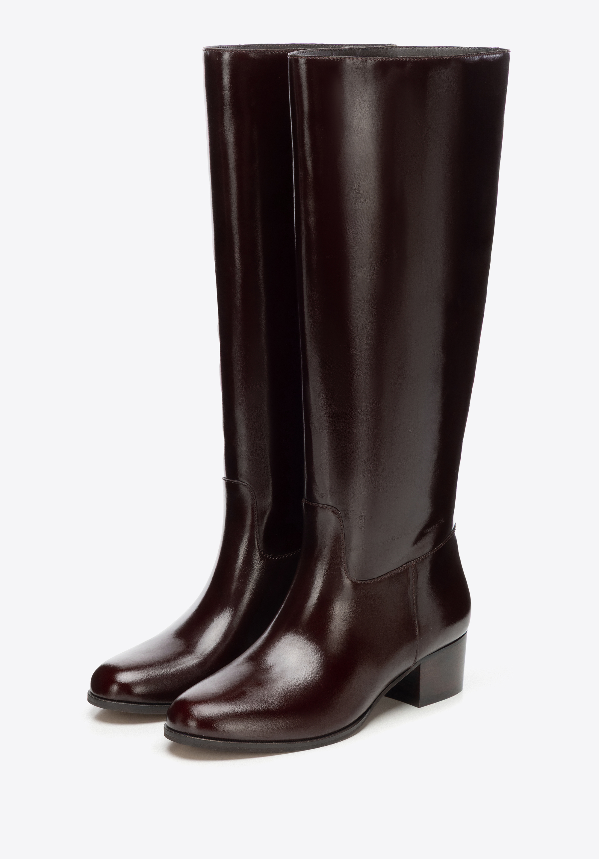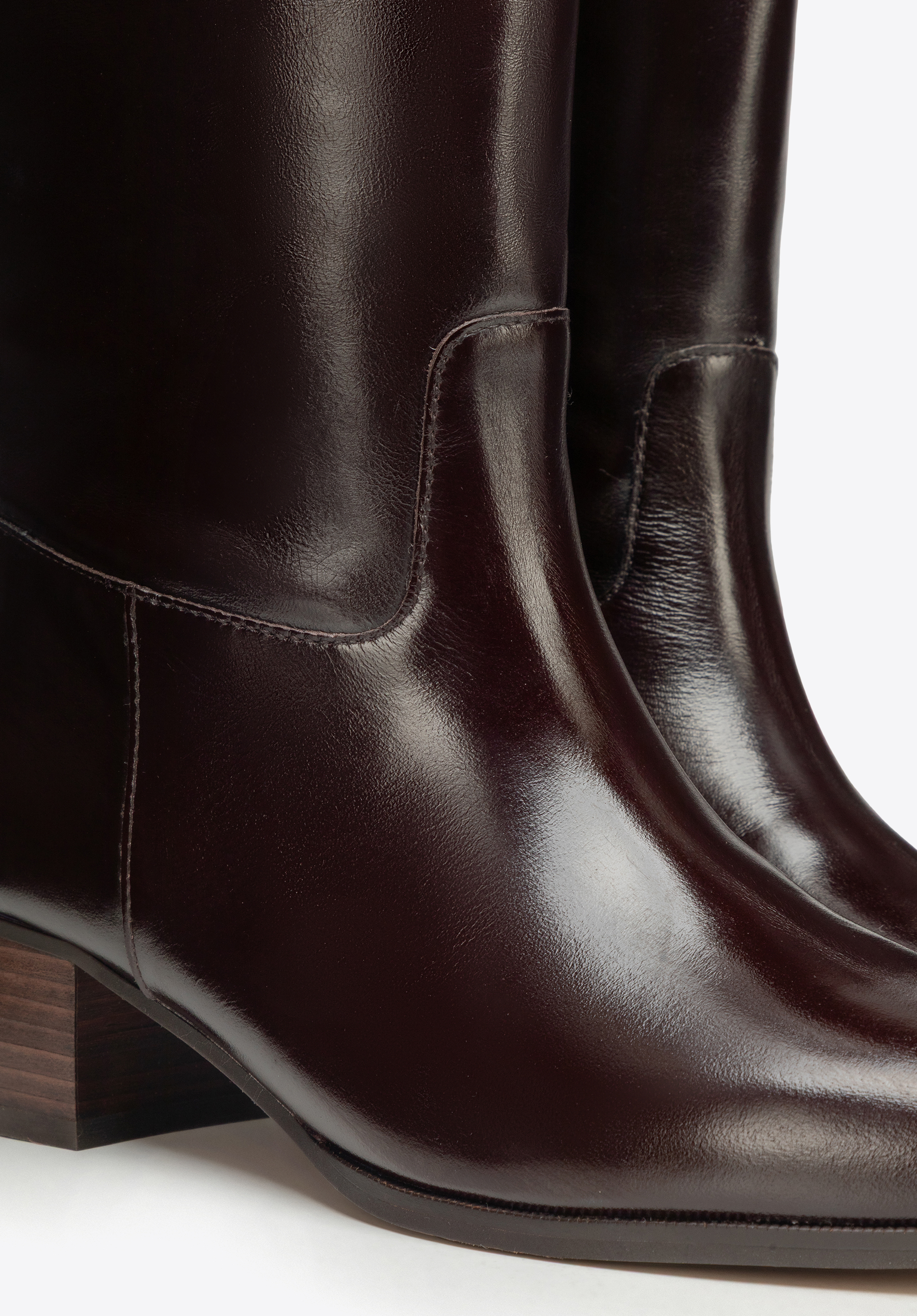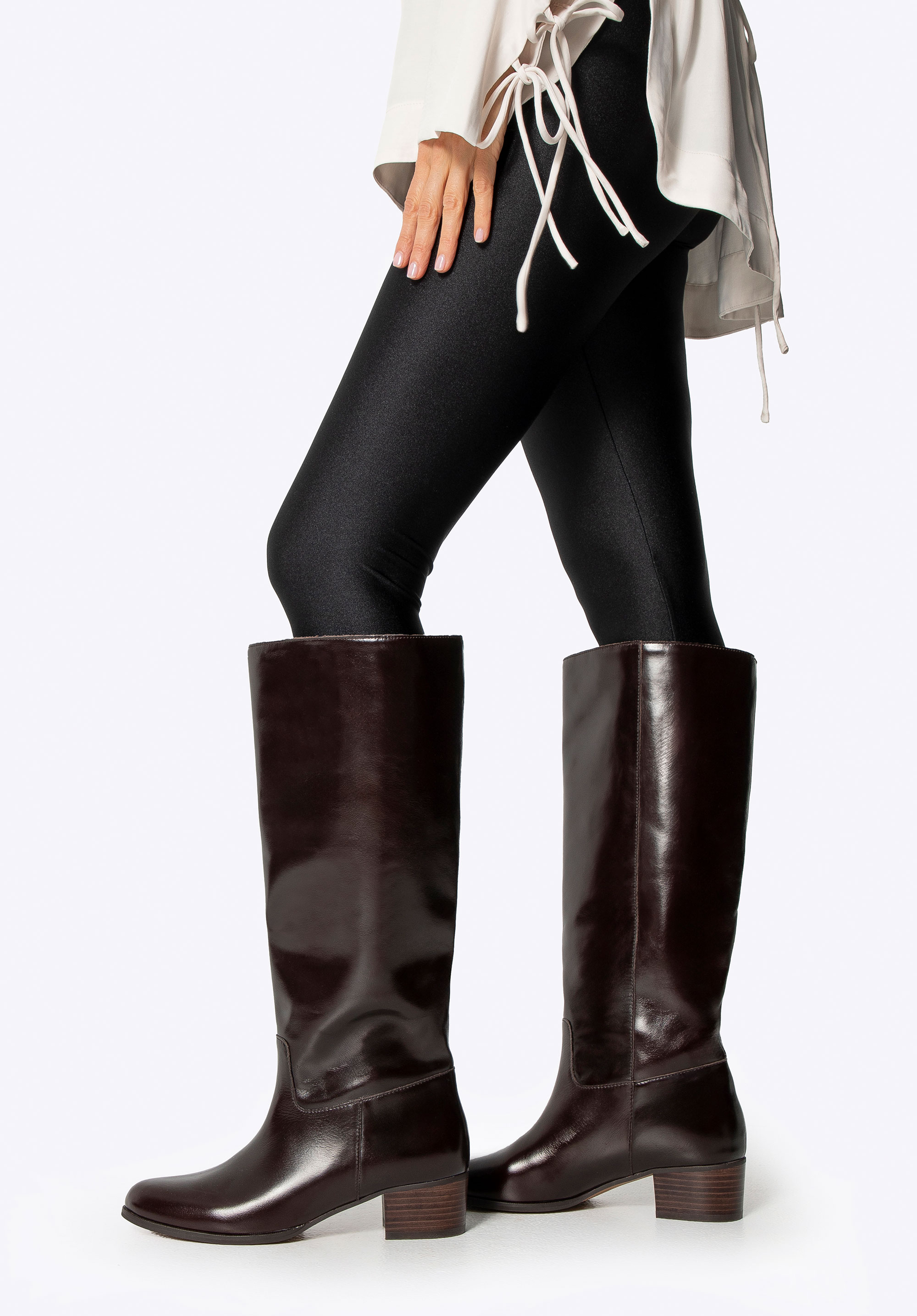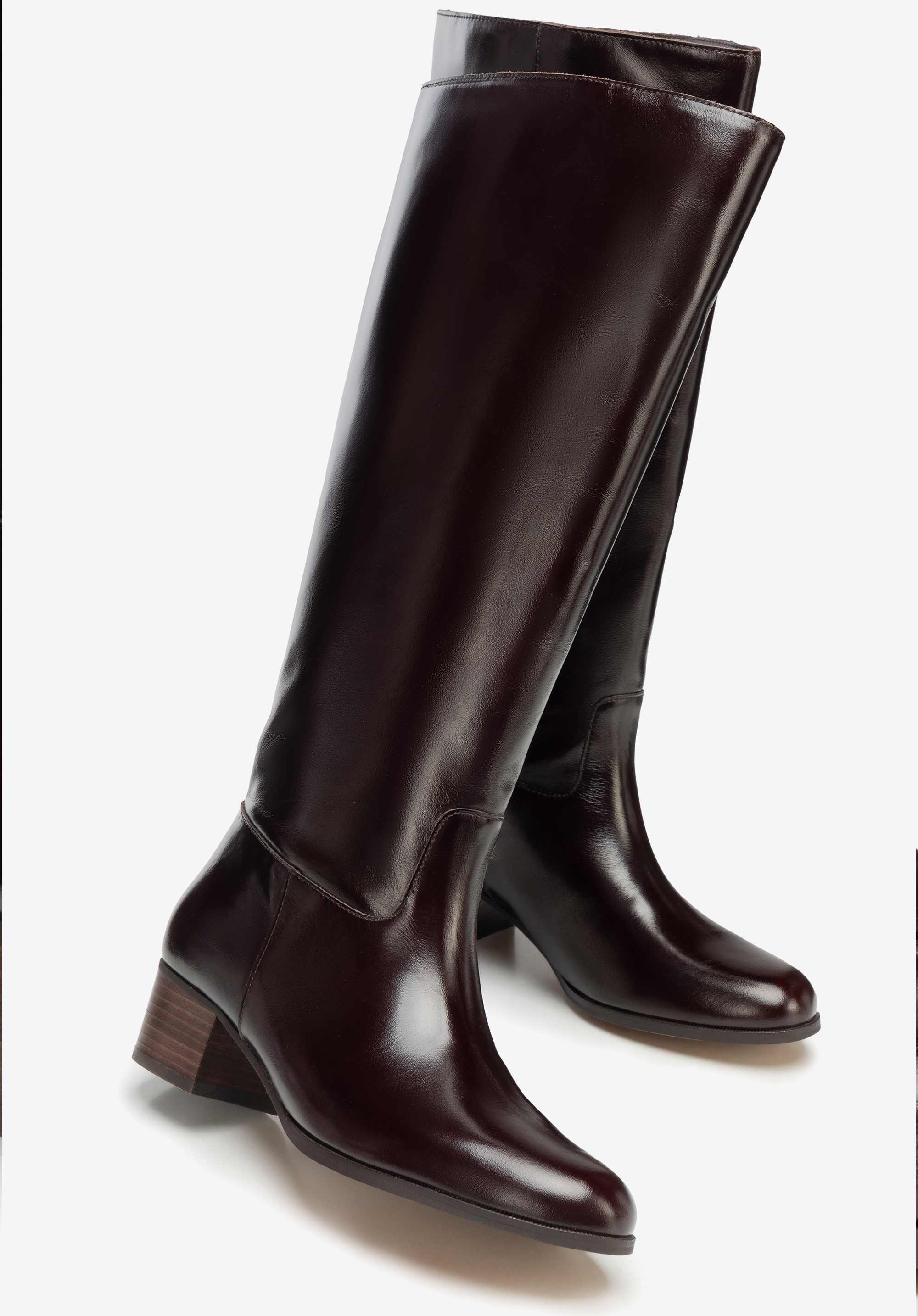 Diese stylischen Stiefel vereinen zeitlose Eleganz mit Alltagskomfort. Gefertigt aus natürlichem, geöltem und dezent glänzendem Rindsleder , wirken sie luxuriös und sind gleichzeitig strapazierfähig für den täglichen Gebrauch. Der robuste Blockabsatz sorgt für dauerhaften Komfort, während die abgerundete Spitze den Fuß optisch streckt und Ihrer Silhouette Leichtigkeit und femininen Charme verleiht. Das Schlupfdesign sorgt für bequemes Anziehen, und die zarten Nähte verleihen einen Hauch von raffiniertem Stil.