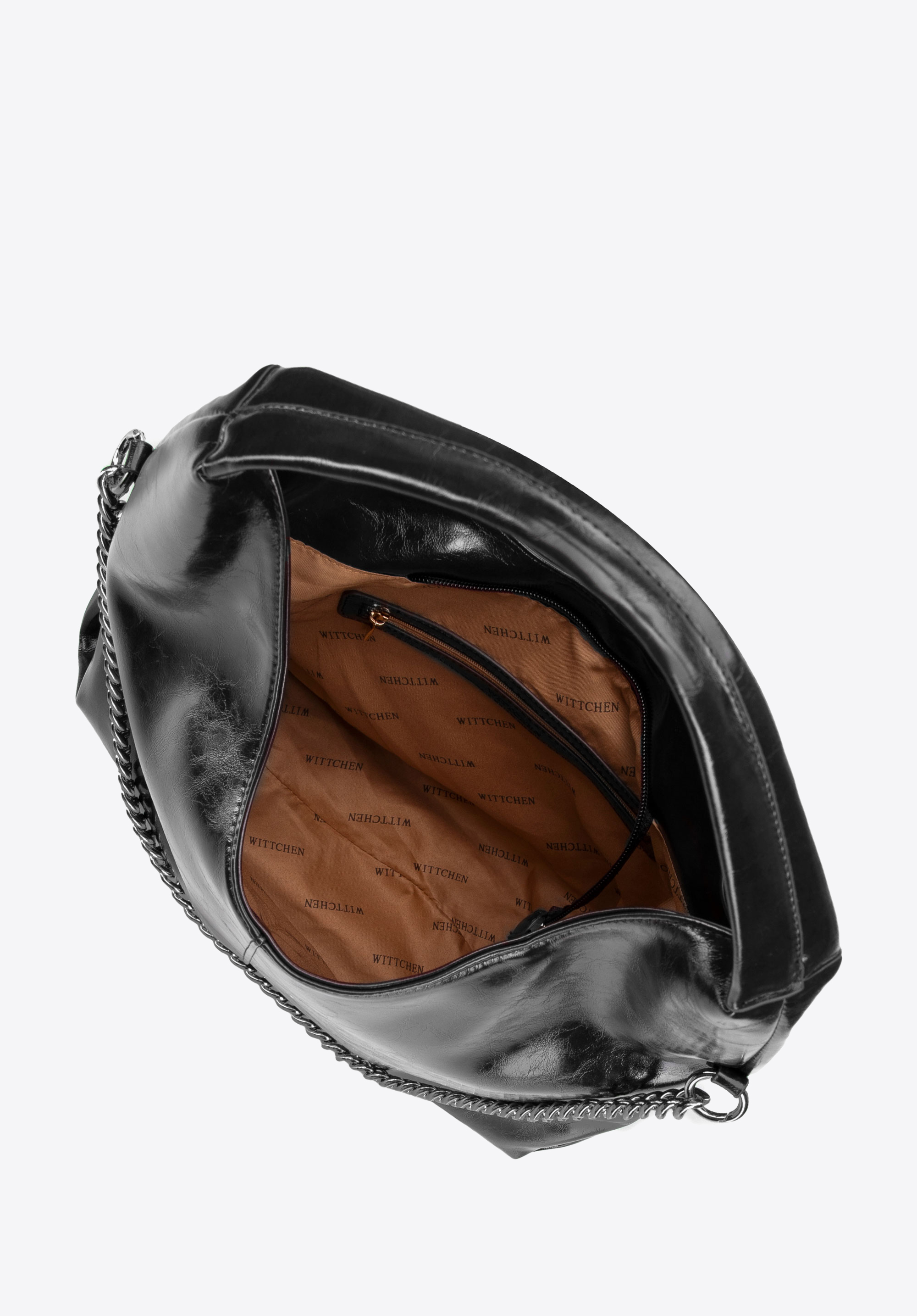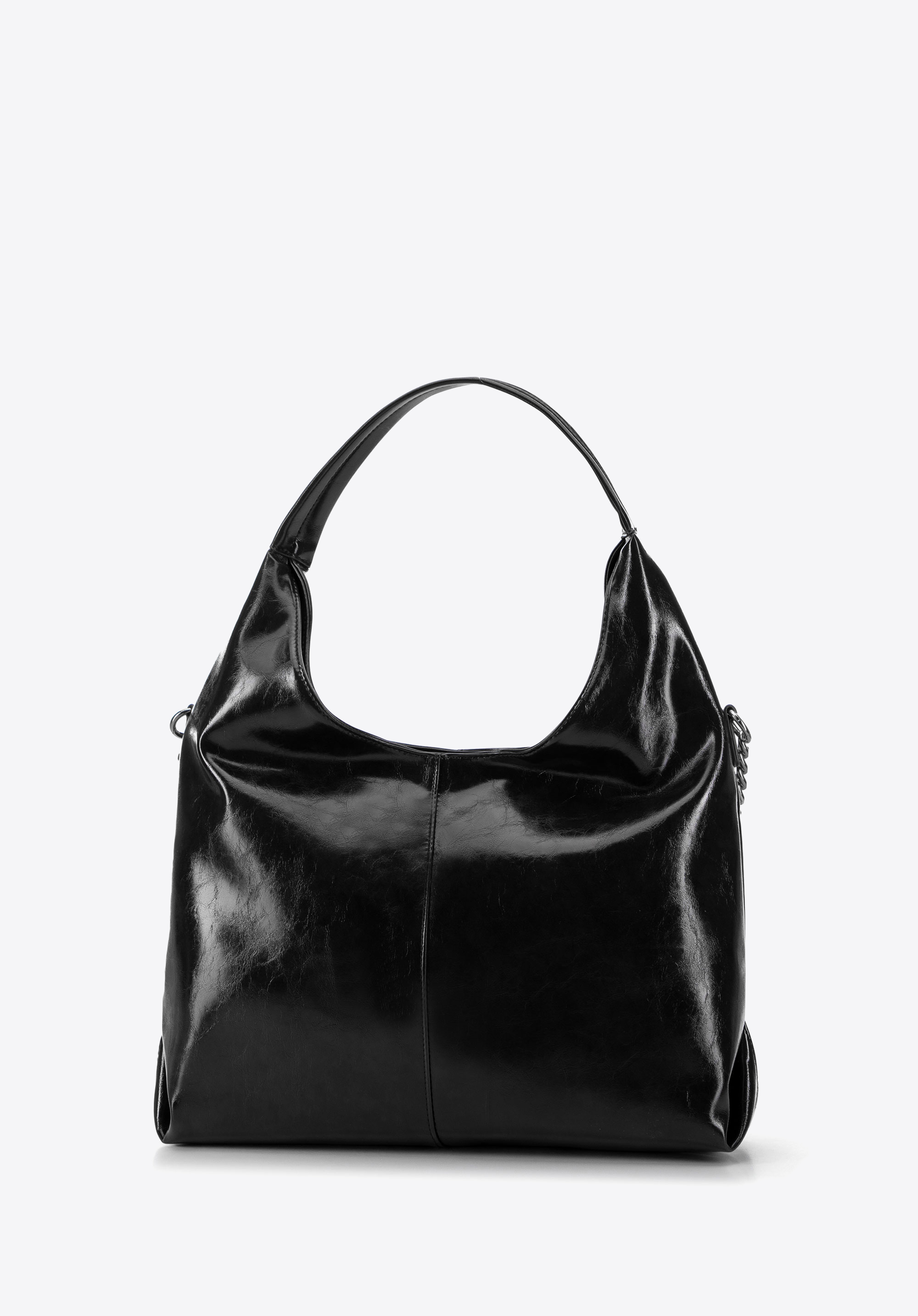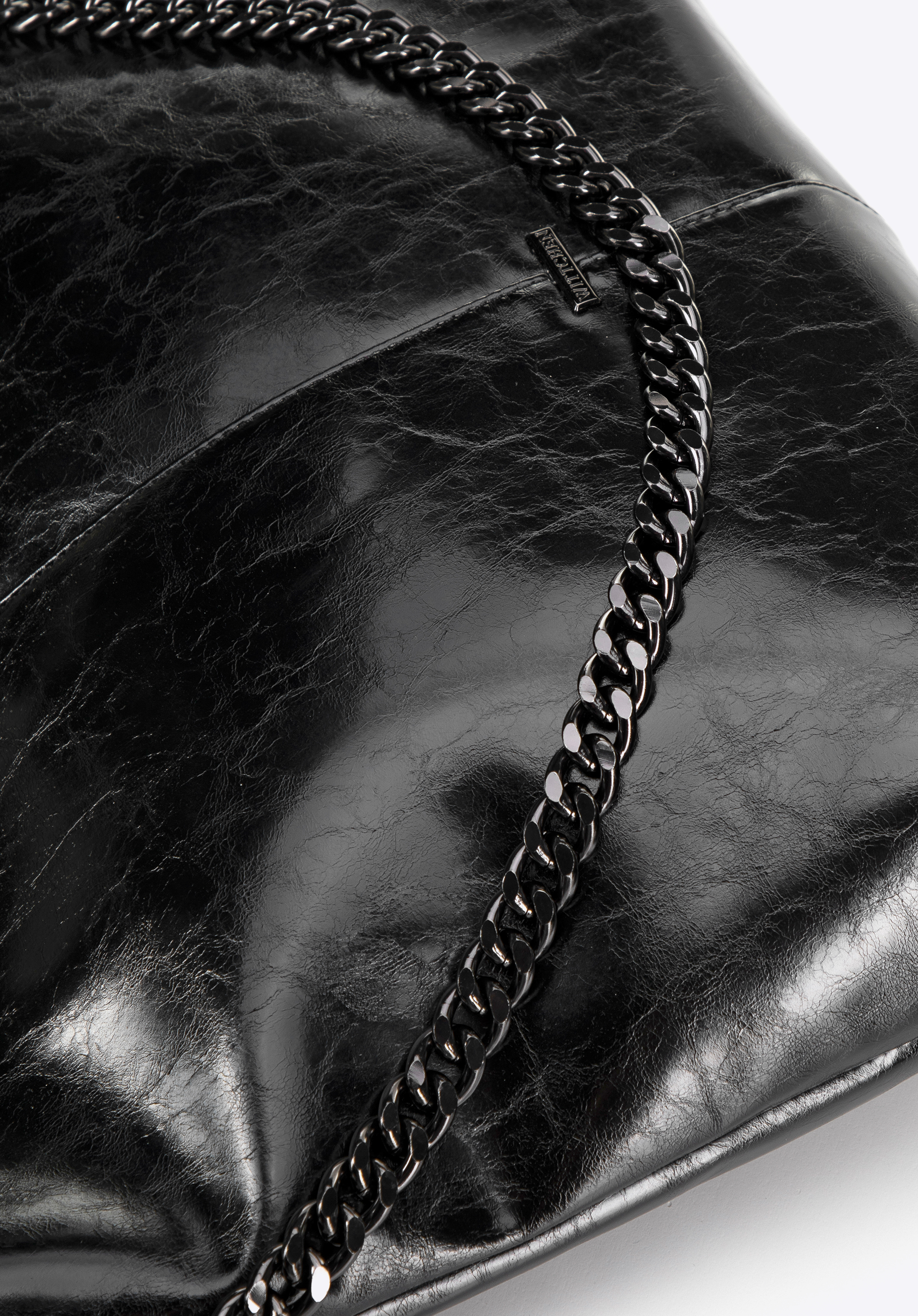 Wir präsentieren unseren einzigartigen Shopper aus Öko-Leder – das perfekte Accessoire für moderne Frauen, die Wert auf Eleganz und Funktionalität legen. Die dekorative Kette auf der Vorderseite der Tasche verleiht ihr einen einzigartigen Charakter, der sie zum Blickfang macht und jedes Styling bereichert.