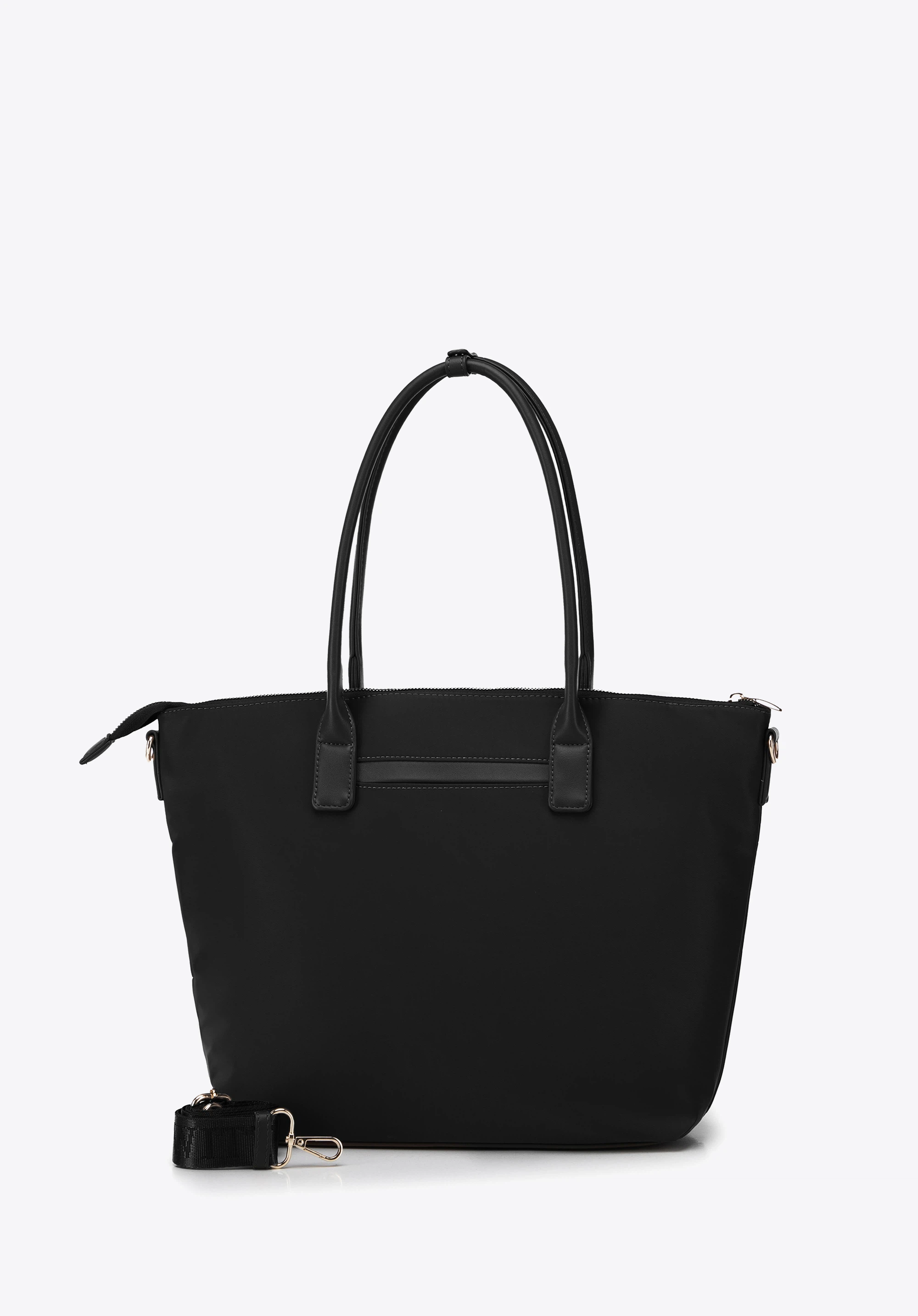 Entdecken Sie unsere einzigartige Damenhandtasche, die Eleganz und Zweckmäßigkeit vereint. Das Modell verfügt über zwei Griffe mit Knopfverschluss, die das Tragen der Tasche erleichtern. Auf der Rückseite der Shopper-Tasche befindet sich ein offenes Fach, das sich perfekt für die kleinen Dinge eignet, die Sie immer griffbereit haben möchten. Dank des gepolsterten Bodens behält die Tasche ihre Form und Stabilität, unabhängig von ihrem Inhalt. Der Innenraum der Shopper-Tasche mit nur einem Fach und Reißverschluss ist eine wahre Symphonie der Organisation. Ein zusätzliches Plus ist der verstellbare und abnehmbare Trageriemen, mit dem Sie die Tasche je nach Bedarf auf unterschiedliche Weise tragen können.