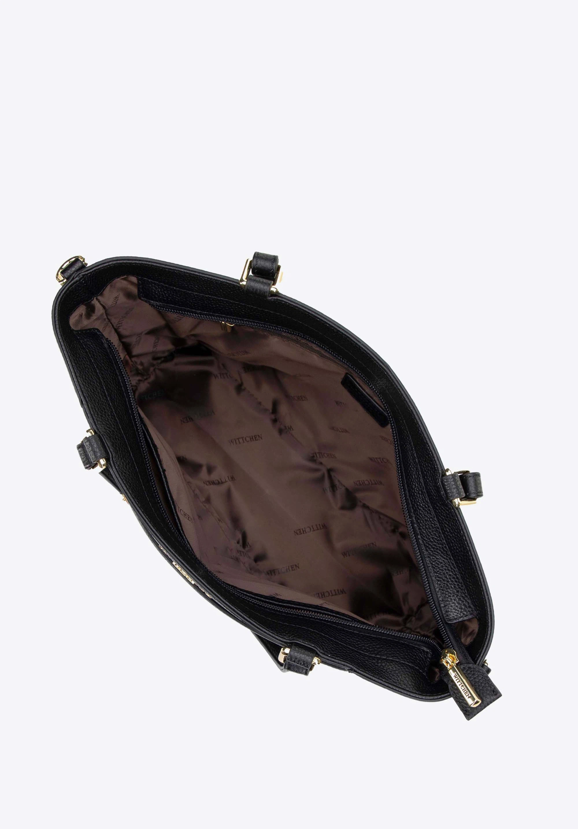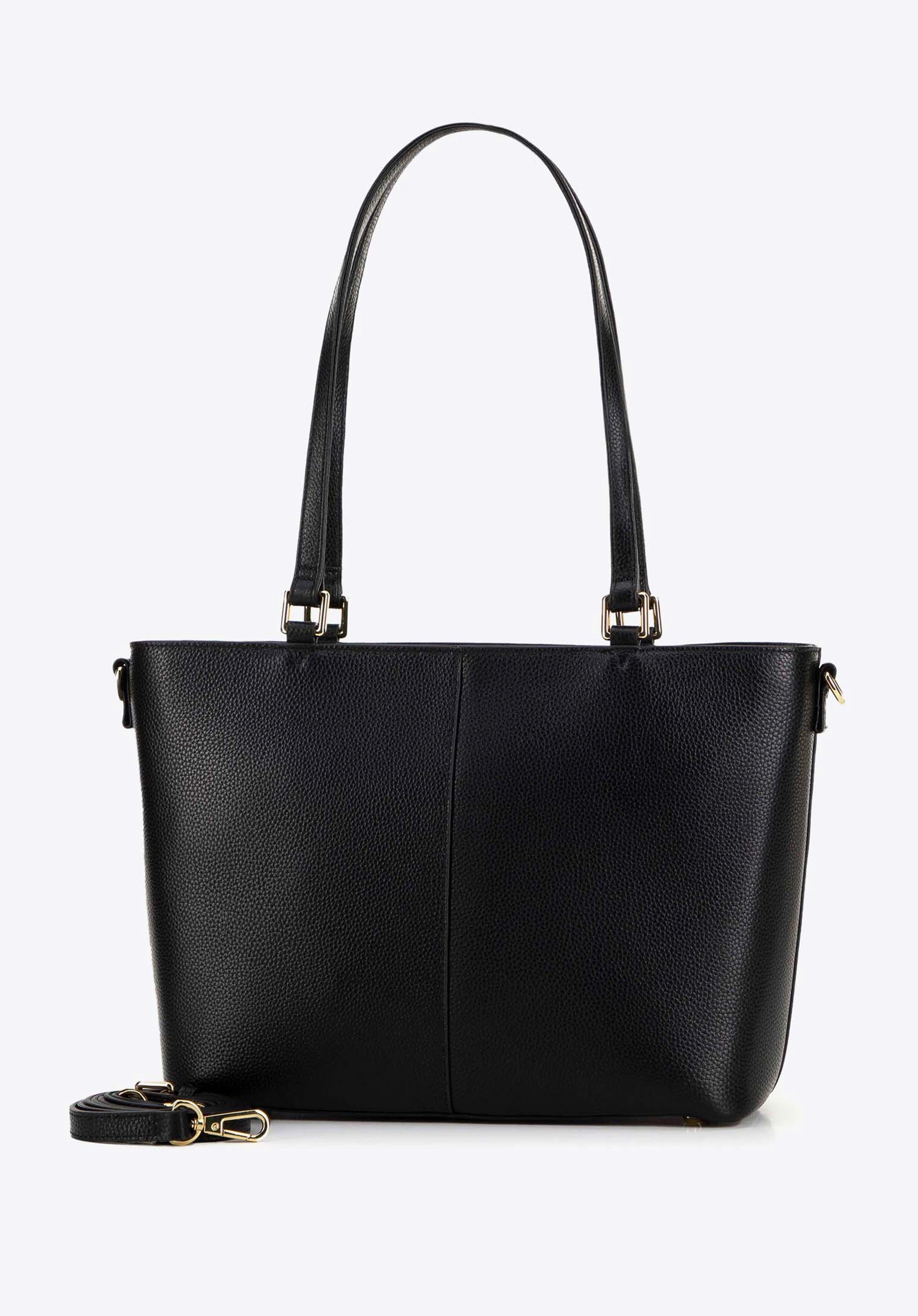Verleihen Sie Ihrer Garderobe Eleganz und Funktionalität mit einer Shopper-Tasche aus Naturleder. Dies ist eine einzigartige Kombination aus klassischem Stil und Funktionalität, die den Erwartungen einer modernen Frau gerecht wird. Dezente Details, wie das auf der Vorderseite platzierte Herstellerlogo, sorgen für Eleganz und machen es zu einem perfekten Akzent in jedem Styling.