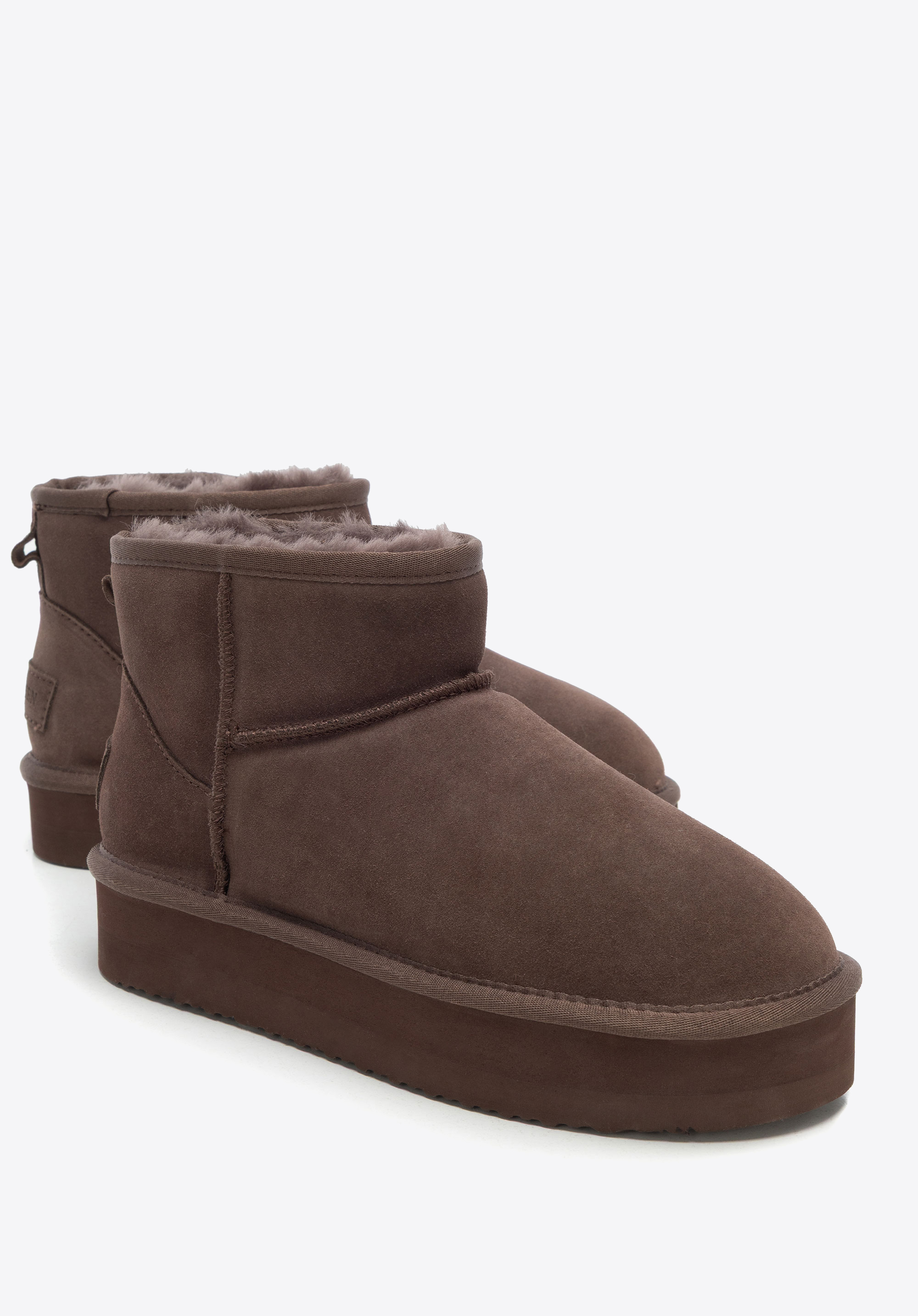 Diese Schneestiefel vereinen Eleganz mit Funktionalität und werden zu einem unverzichtbaren Bestandteil Ihrer Wintergarderobe. Gefertigt aus strapazierfähigem und elegantem Wildleder , passen sie sich perfekt dem Fuß an und sorgen für Komfort bei jedem Schritt. Die Wollinnensohle hüllt Ihre Füße in angenehme Wärme, während das pelzige Futter sie zur perfekten Wahl für kältere Tage macht. Eine leichte Sohle aus anderen Materialien garantiert dank praktischer Rillen Stabilität und Halt. Die klassische , runde Zehenpartie verleiht zeitlosen Charme, während das Slip-On-Design ein schnelles und müheloses Anziehen ermöglicht.
