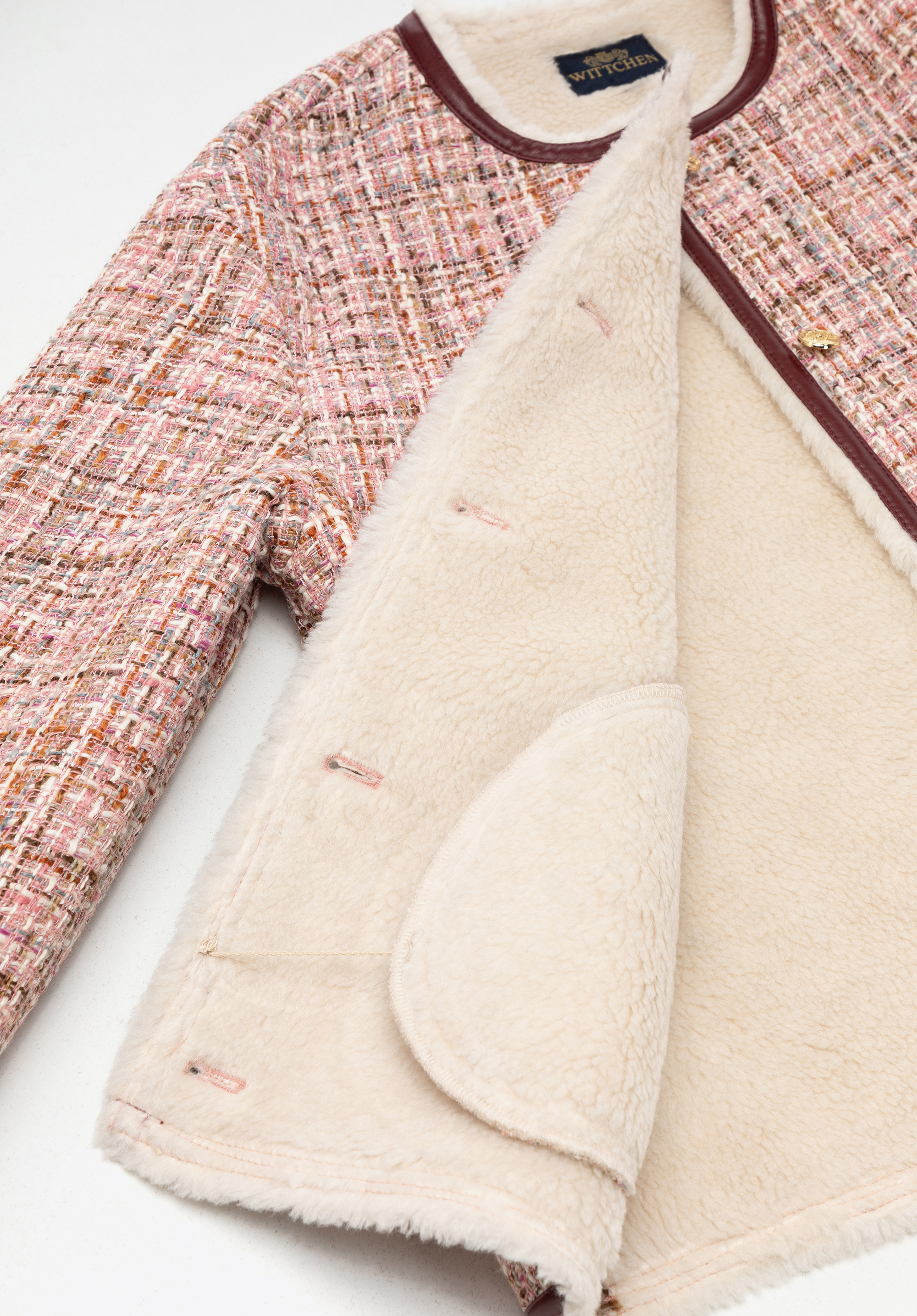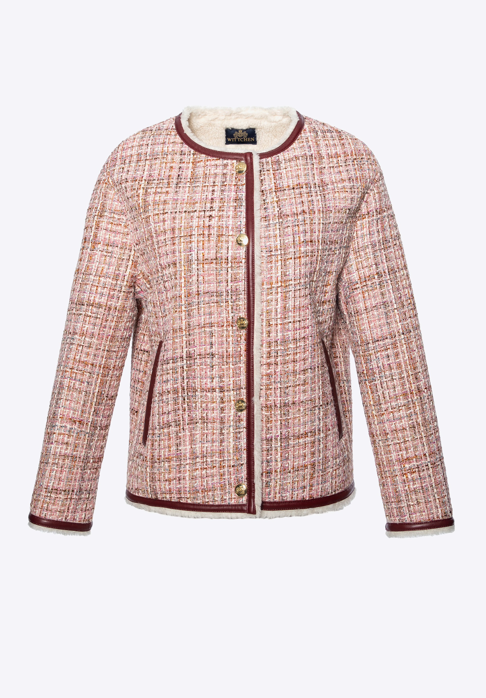 Tauchen Sie ein in klassische Eleganz mit modernem Touch mit dieser einzigartigen Tweedjacke . Gefertigt aus strukturiertem Polyester mit dezenten, mehrfarbigen Garnen besticht sie durch ihren unverwechselbaren Charakter. Die präzise Verarbeitung mit kontrastierenden Besätzen und glänzenden Goldknöpfen unterstreicht den raffinierten Stil dieses Kleidungsstücks. Innen ist die Jacke mit einem warmen, weichen Kunstfellfutter ausgestattet, das auch bei winterlichen Temperaturen für Komfort sorgt. Praktische Taschen erhöhen die Funktionalität, während der gerade Oversize-Schnitt Bewegungsfreiheit und hohen Tragekomfort garantiert.