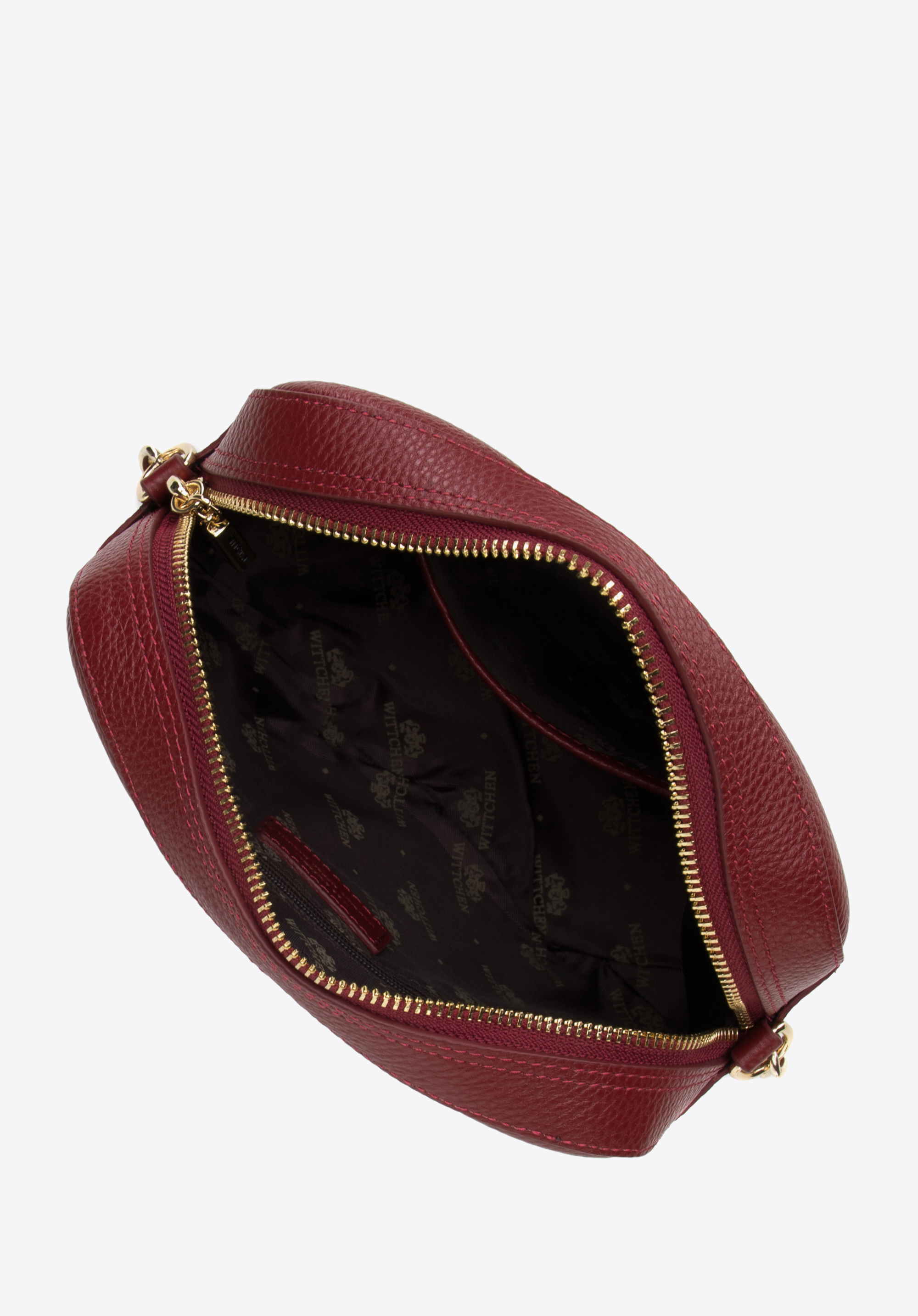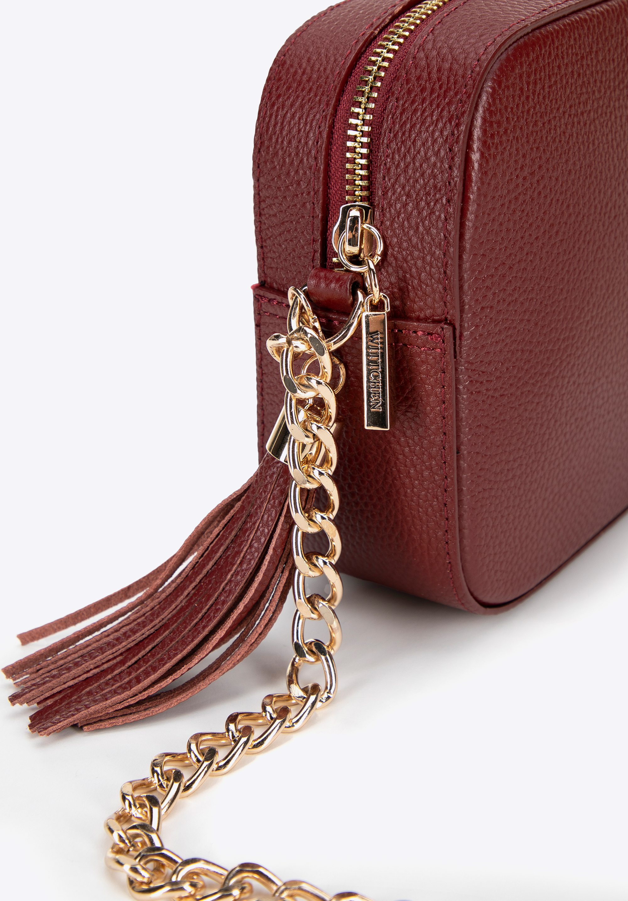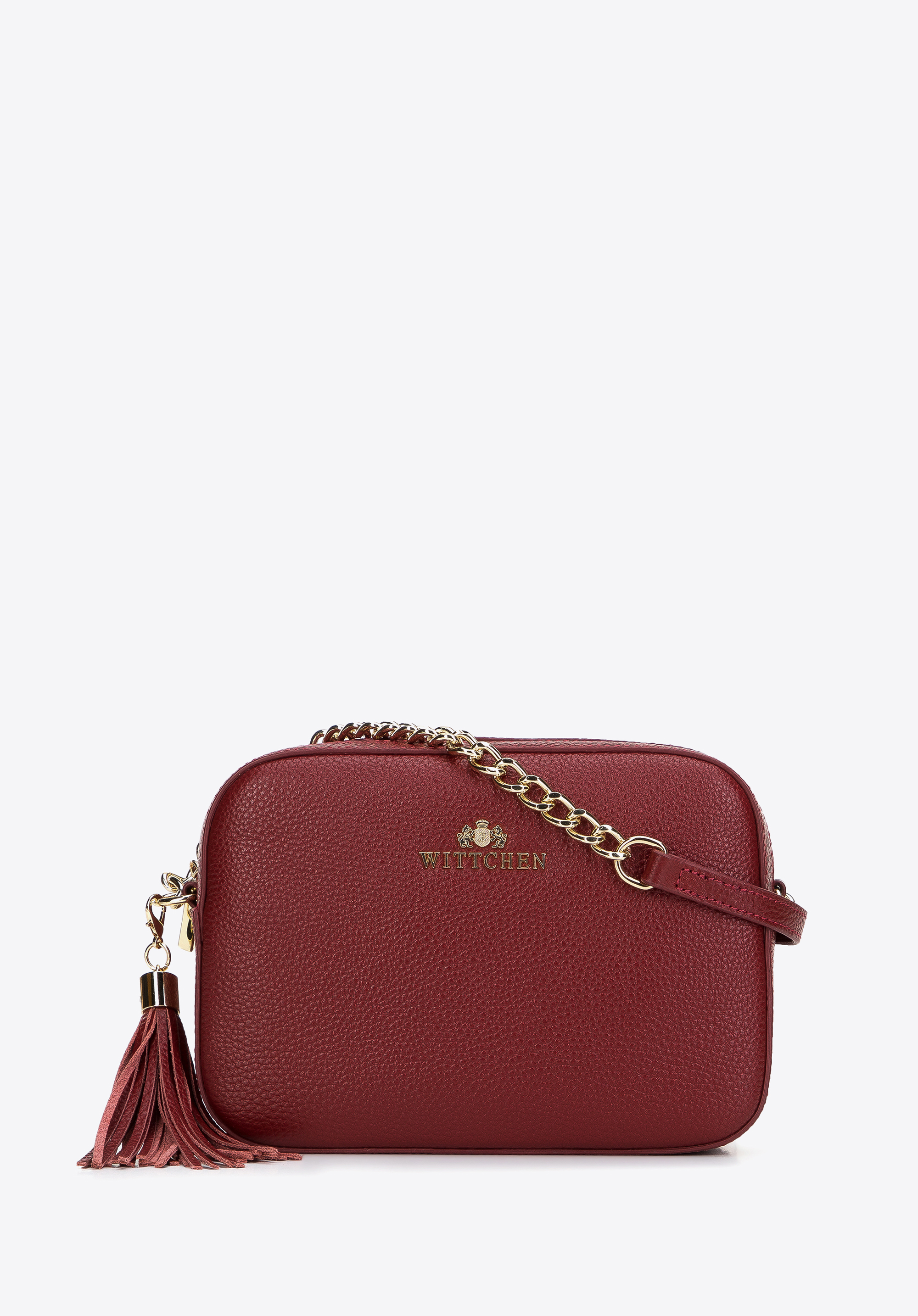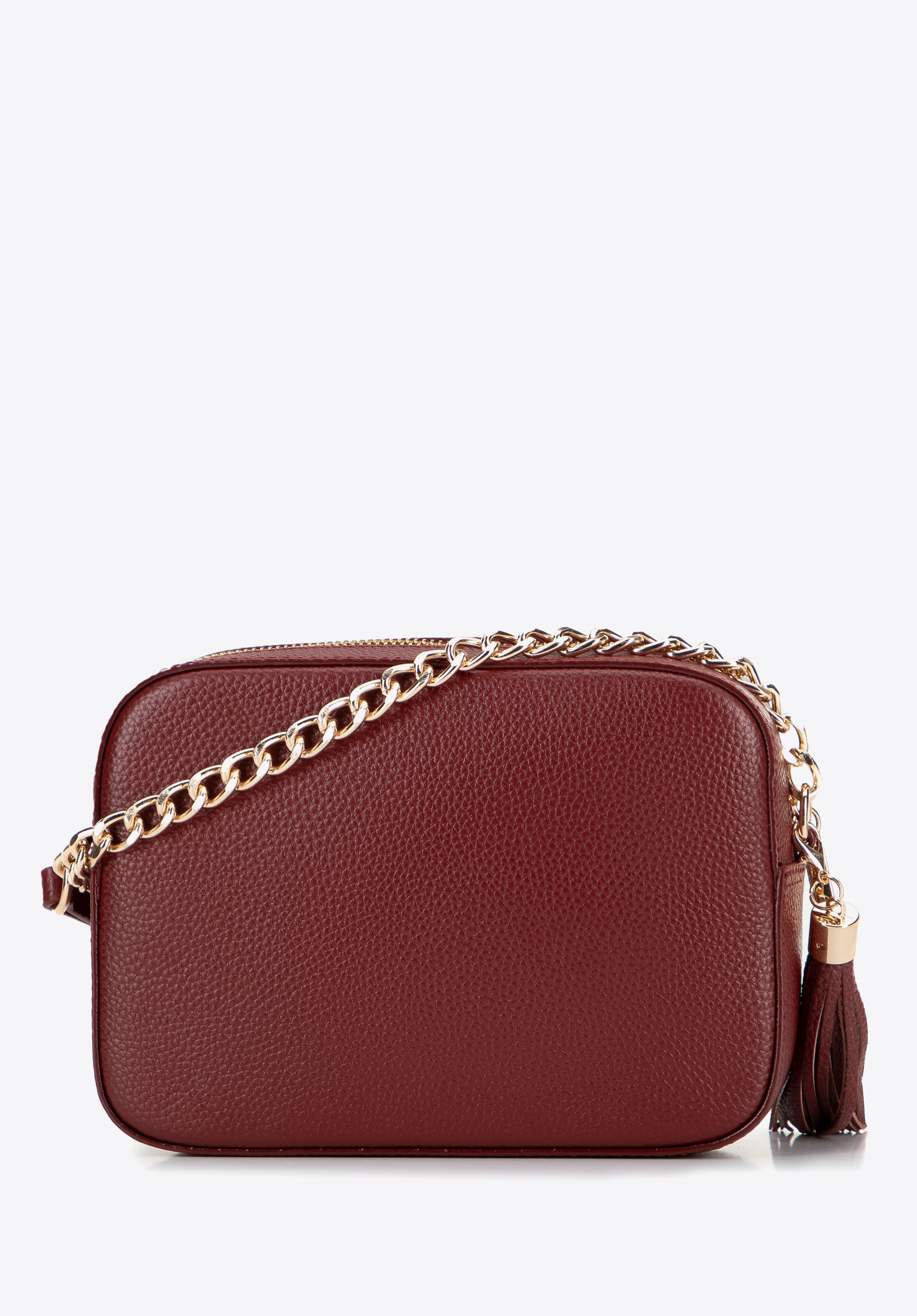 Diese elegante Handtasche an einer glänzenden Kette mit einer kastenförmigen, starren Form ist die perfekte Wahl für besondere Anlässe. Trotz ihrer kompakten Form bietet sie Platz für alle wichtigen Dinge wie Geldbörse, Telefon, Taschentücher oder Handcreme. Sie ist aus hochwertigem Naturleder mit dezentem Erbsenmuster gefertigt und garantiert Eleganz und Langlebigkeit für die nächsten Jahre.