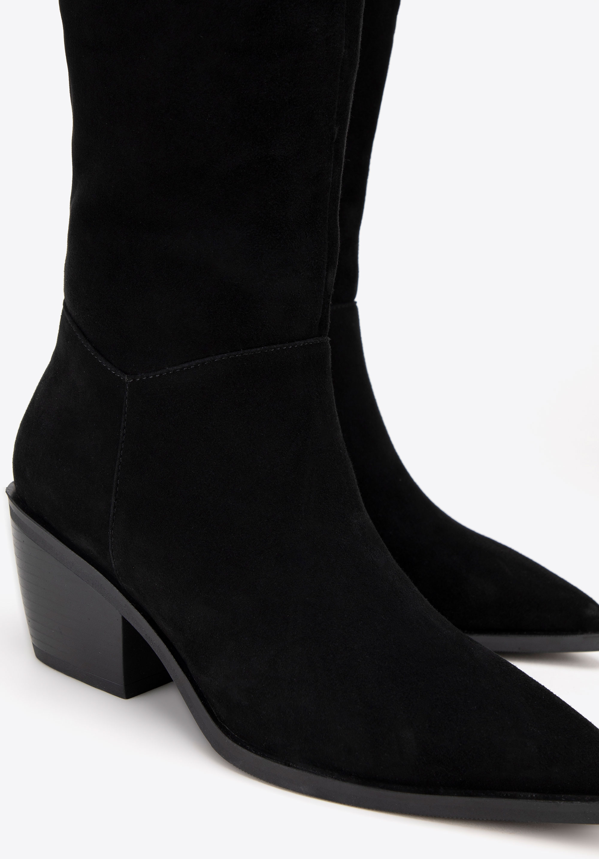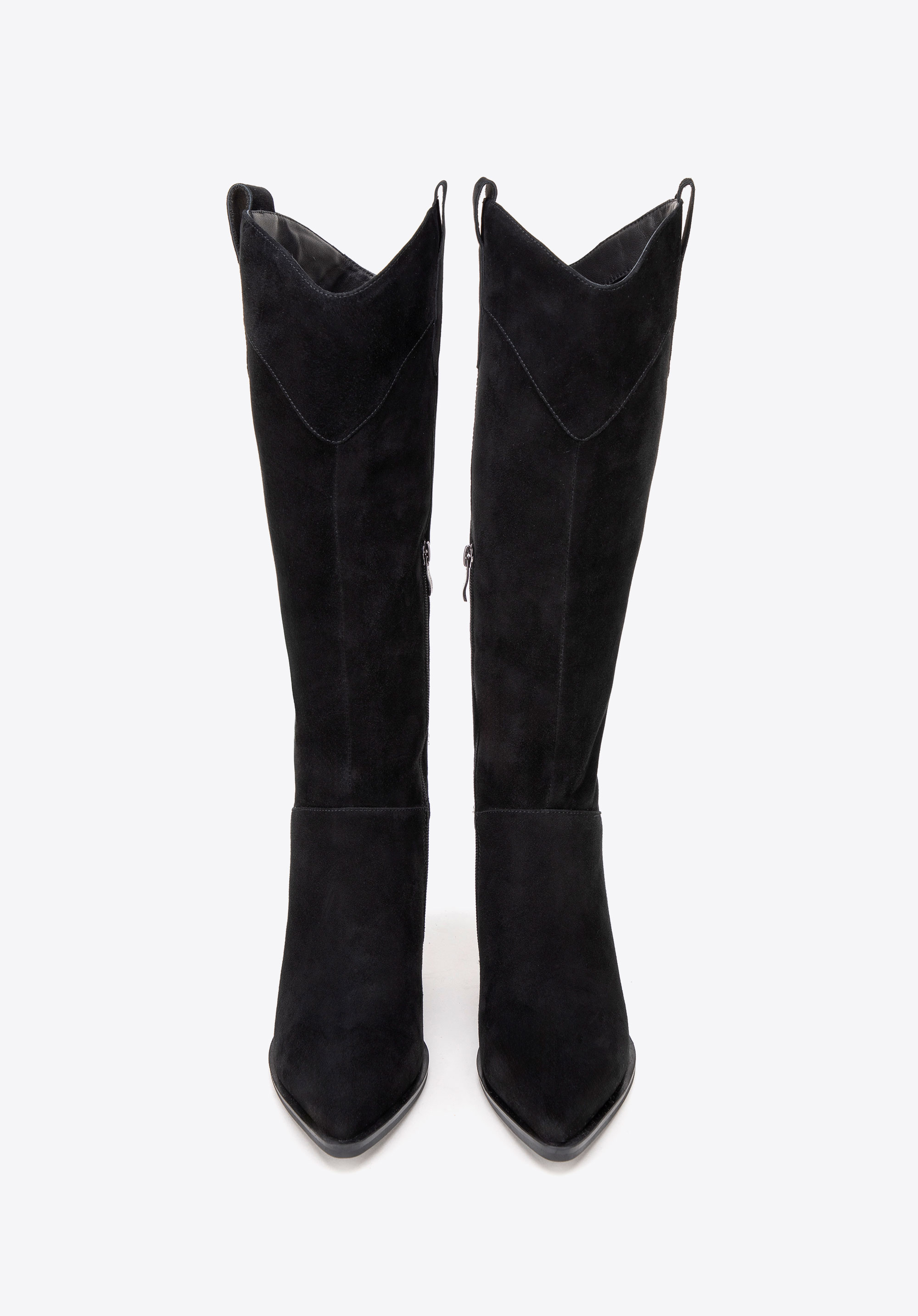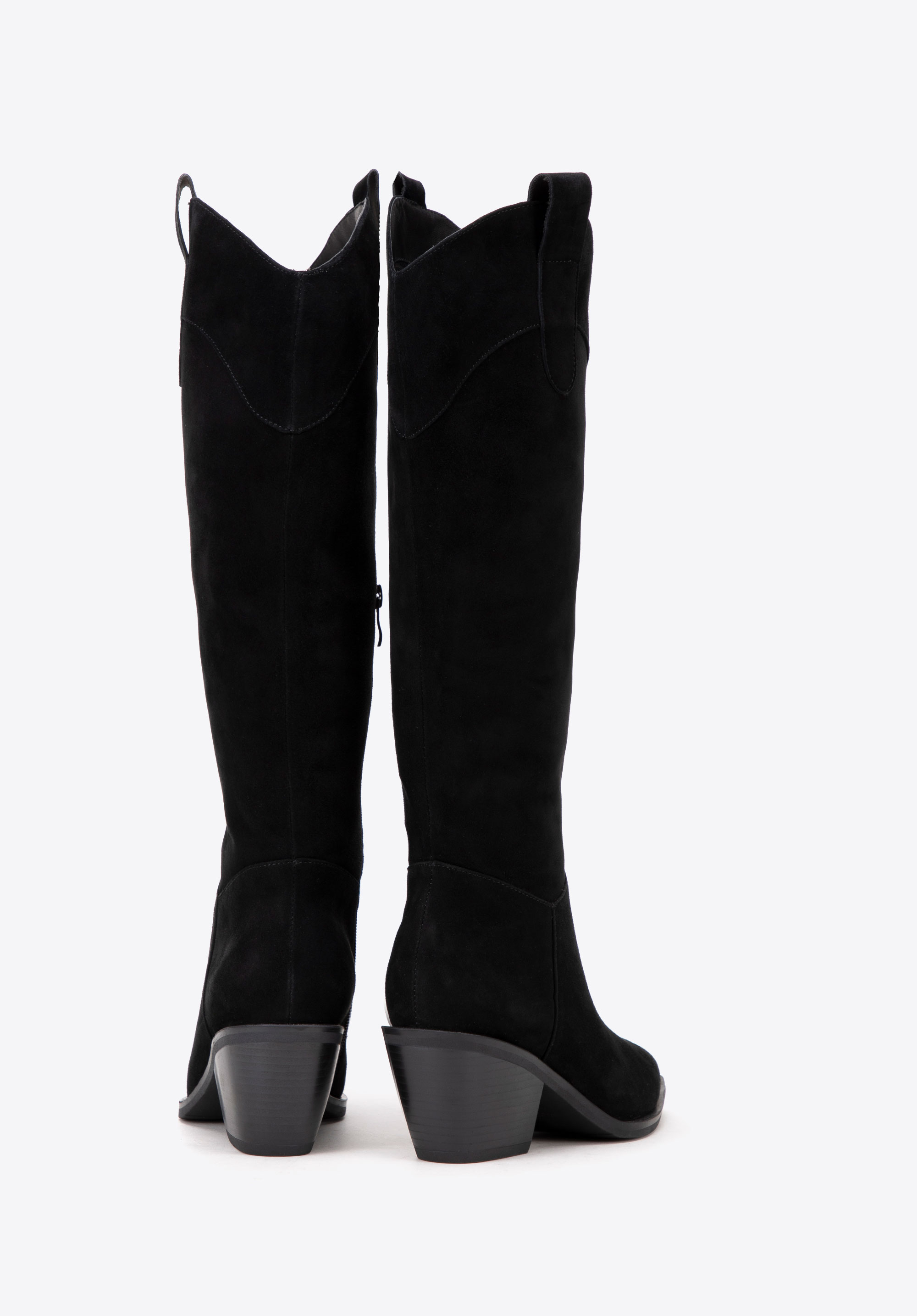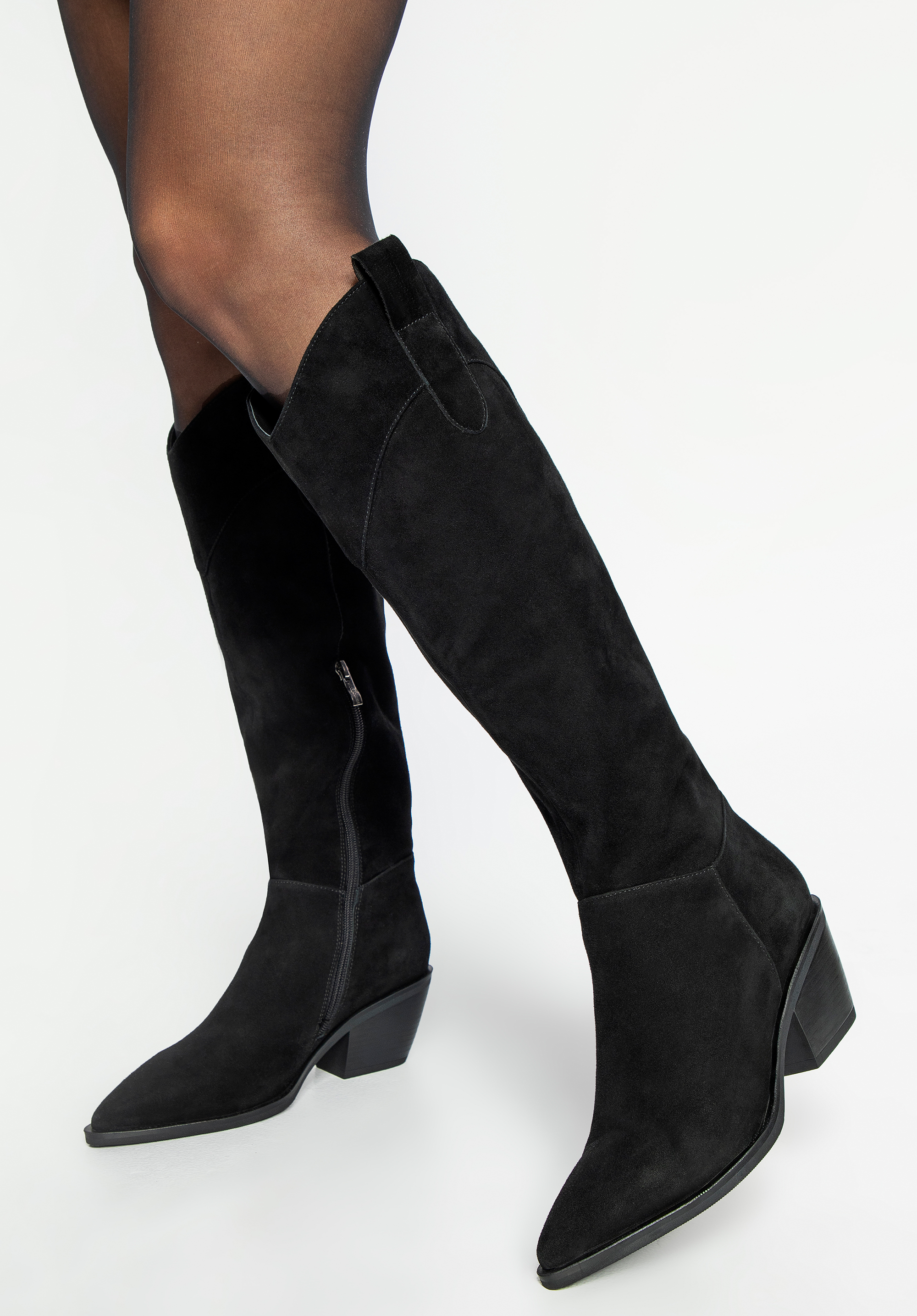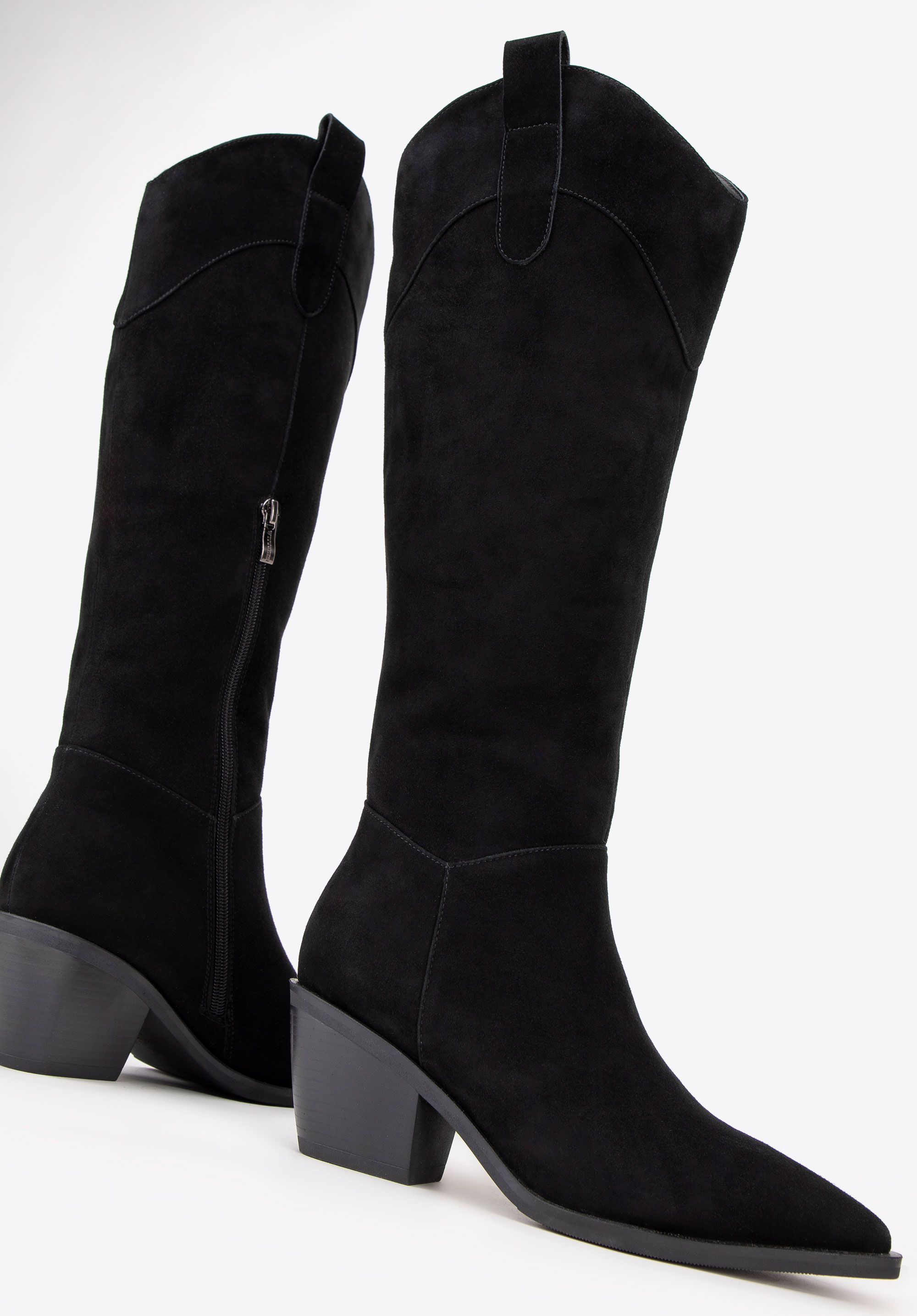 Werten Sie Ihre Garderobe mit diesen Cowboystiefeln für Damen auf, die Eleganz mit außergewöhnlichem Komfort verbinden. Diese Stiefel aus luxuriösem Wildleder sind mit ihrer länglichen Silhouette und den gestickten Verzierungen ein echter Hingucker. Das weiche Futter passt sich der Form Ihres Fußes an und bietet auch bei längerem Tragen Komfort. Diese Stiefel verbinden klassische Eleganz mit modernem Komfort und ergänzen jedes Outfit perfekt.