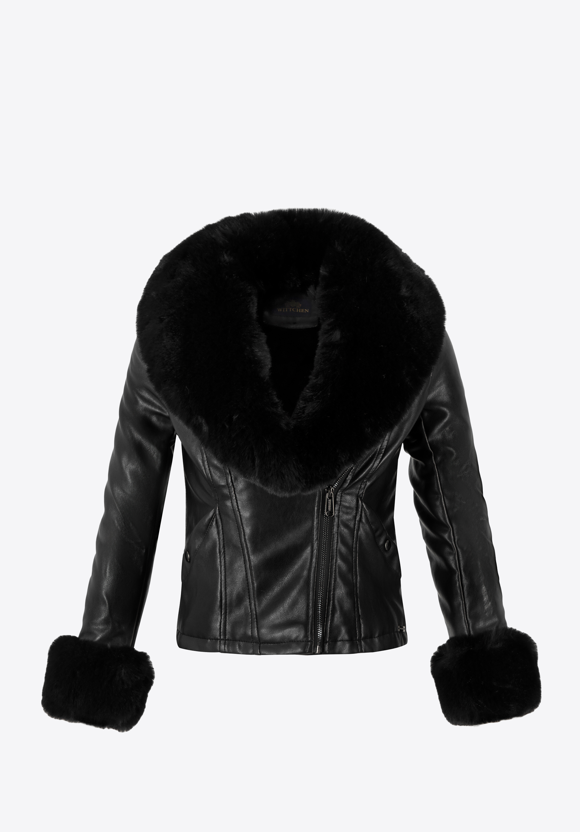 - Material: Die Jacke ist aus Kunstleder gefertigt und verbindet Eleganz mit Umweltverantwortung.