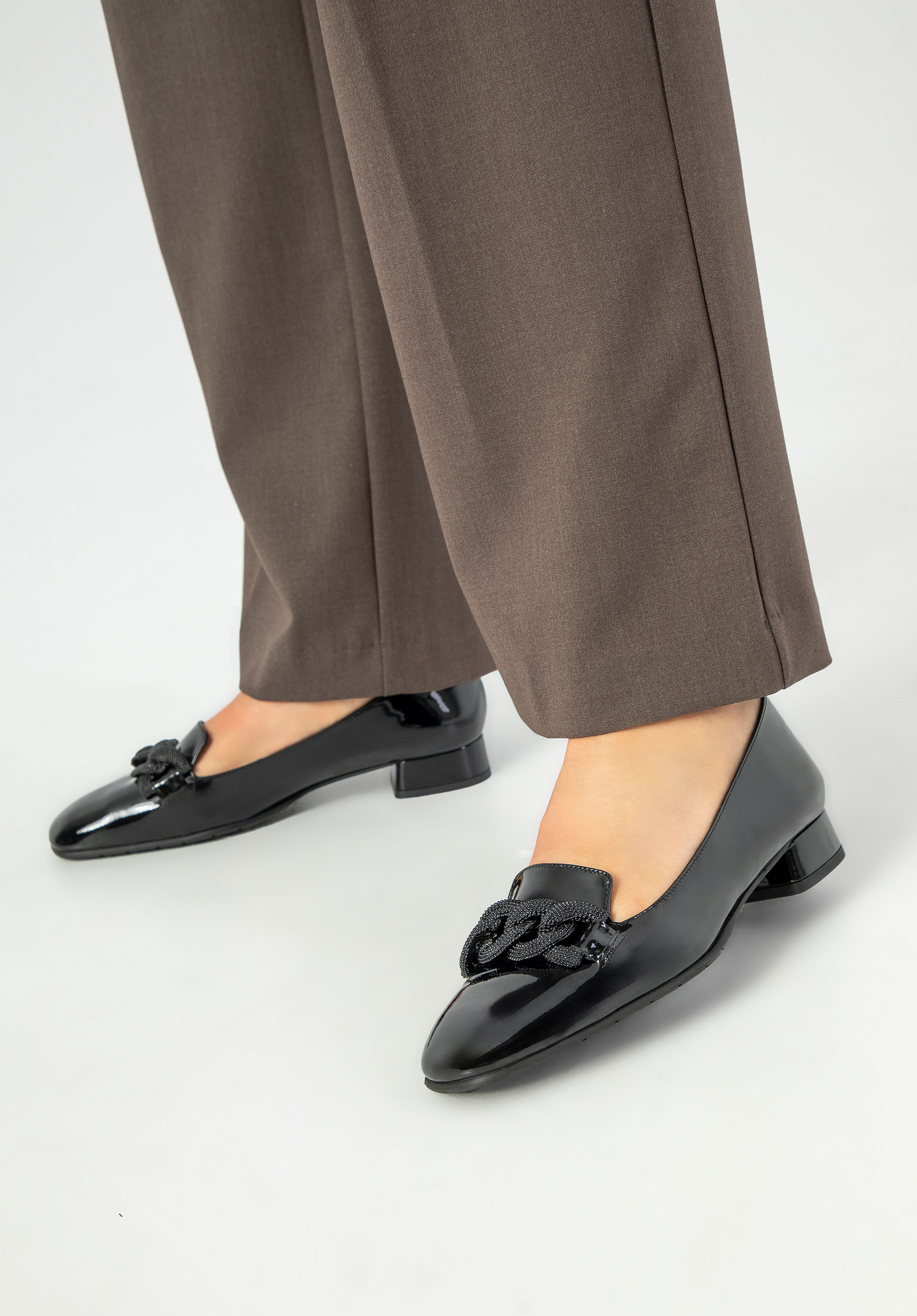 Treten Sie ein in eine Welt zeitloser Eleganz und dauerhaften Komforts, in der traditionelle Handwerkskunst auf modernes Design trifft. Unsere Pumps aus Lackleder stehen nicht nur für tadellosen Stil, sondern auch für außergewöhnlichen ganztägigen Komfort.