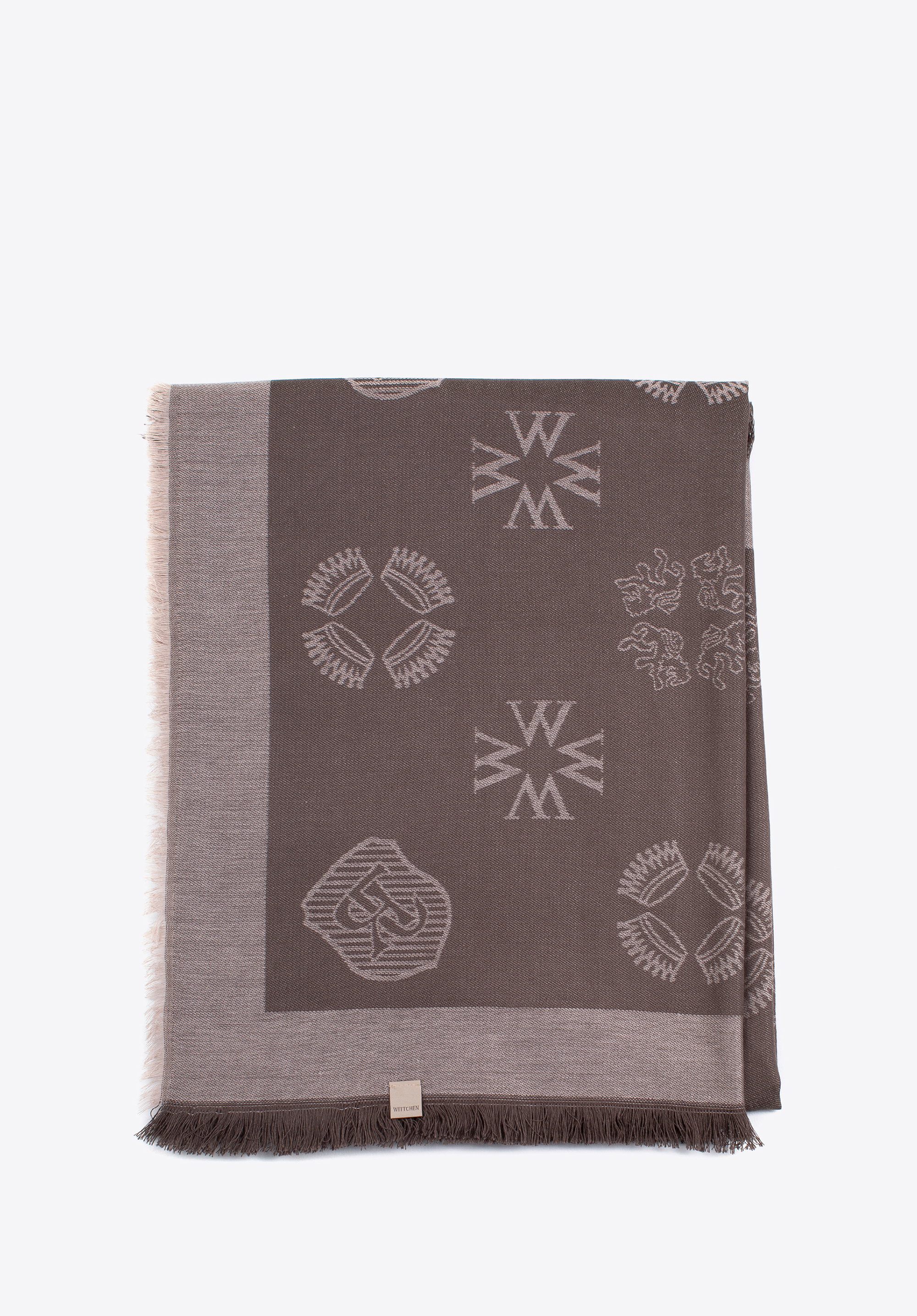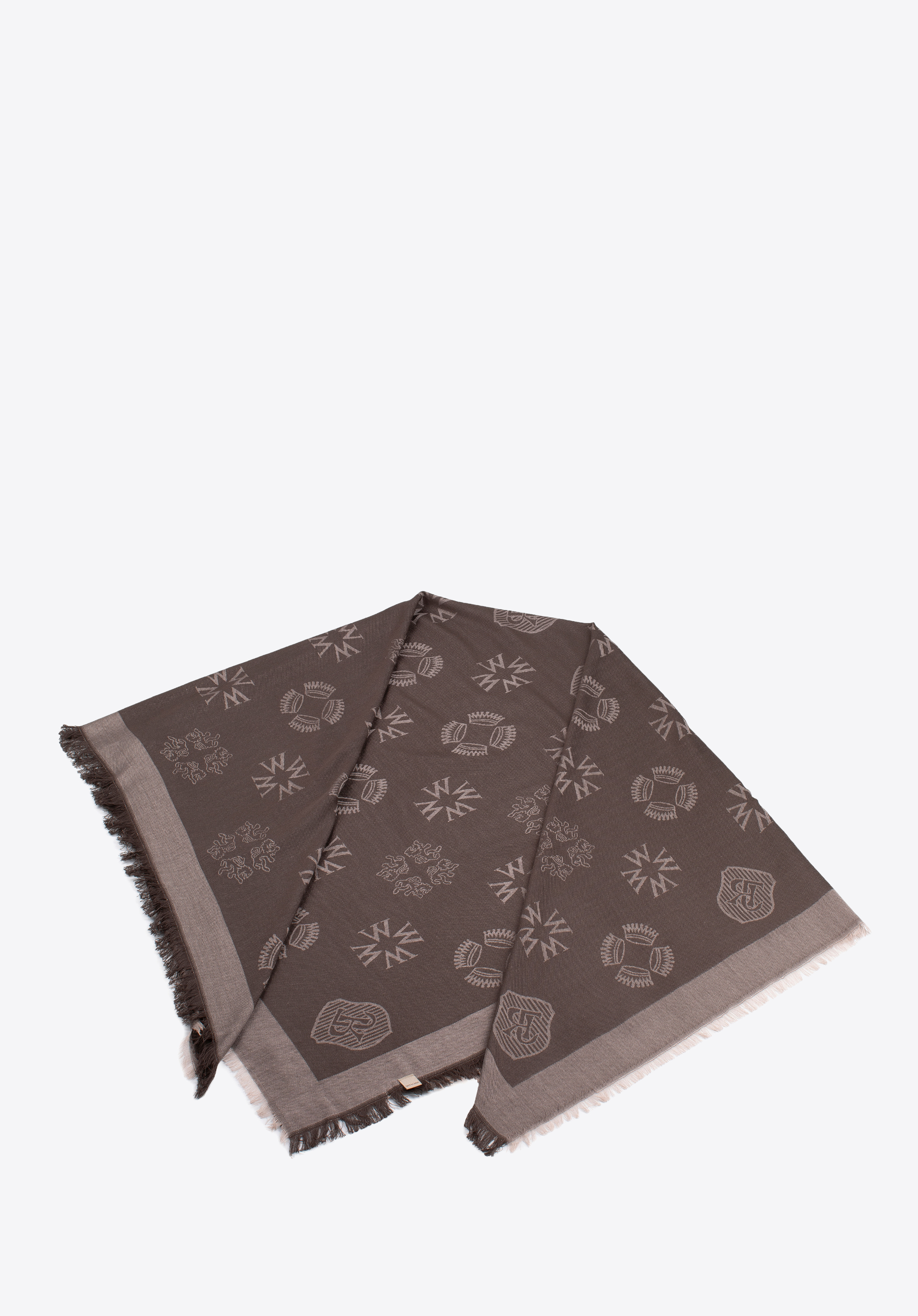 Dieser Schal eignet sich perfekt zum Überziehen lässiger Kleidungsstücke und ist verführerisch elegant und mühelos stilvoll. Die bemerkenswerte Qualität der Bambusfasern macht diesen rechteckigen Schal weicher und lässt sich leichter an verschiedene Modestile anpassen. Perfekt kombinierbar mit der Bürokleidung: Bleistiftrock und weißem Hemd. Es passt gut zum eleganten, warmen Mantel. Dieser zarte Schal ist Ton-in-Ton mit den markanten Löwen, Kronen und den „ W“-Buchstaben bedruckt, die aus der Singature-Handtaschenkollektion bekannt sind. Perfekte Geschenkidee für jeden Anlass.