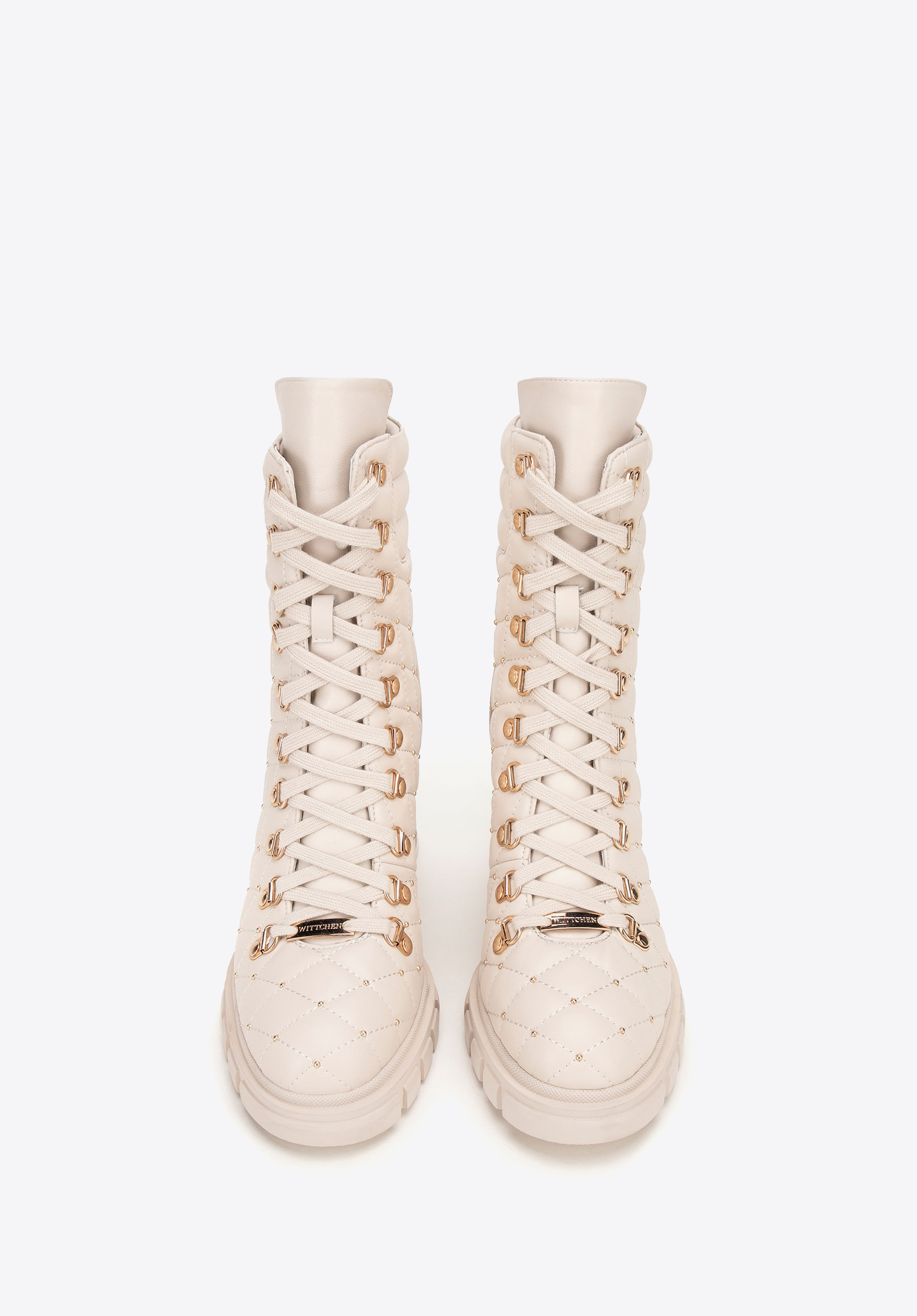 Sorgfältig gefertigte Schnürstiefel verleihen fast jedem Outfit eine raffinierte Note. Sie sind mit einem hohen Blockabsatz gestaltet und passen perfekt zu Ihrer anspruchsvollen Garderobe. Sie sind aus hochwertigem Naturleder gefertigt und mit einem gesteppten Stiefelkragen und einer dicken Profilsohle versehen, die Stil und Funktionalität vereint.