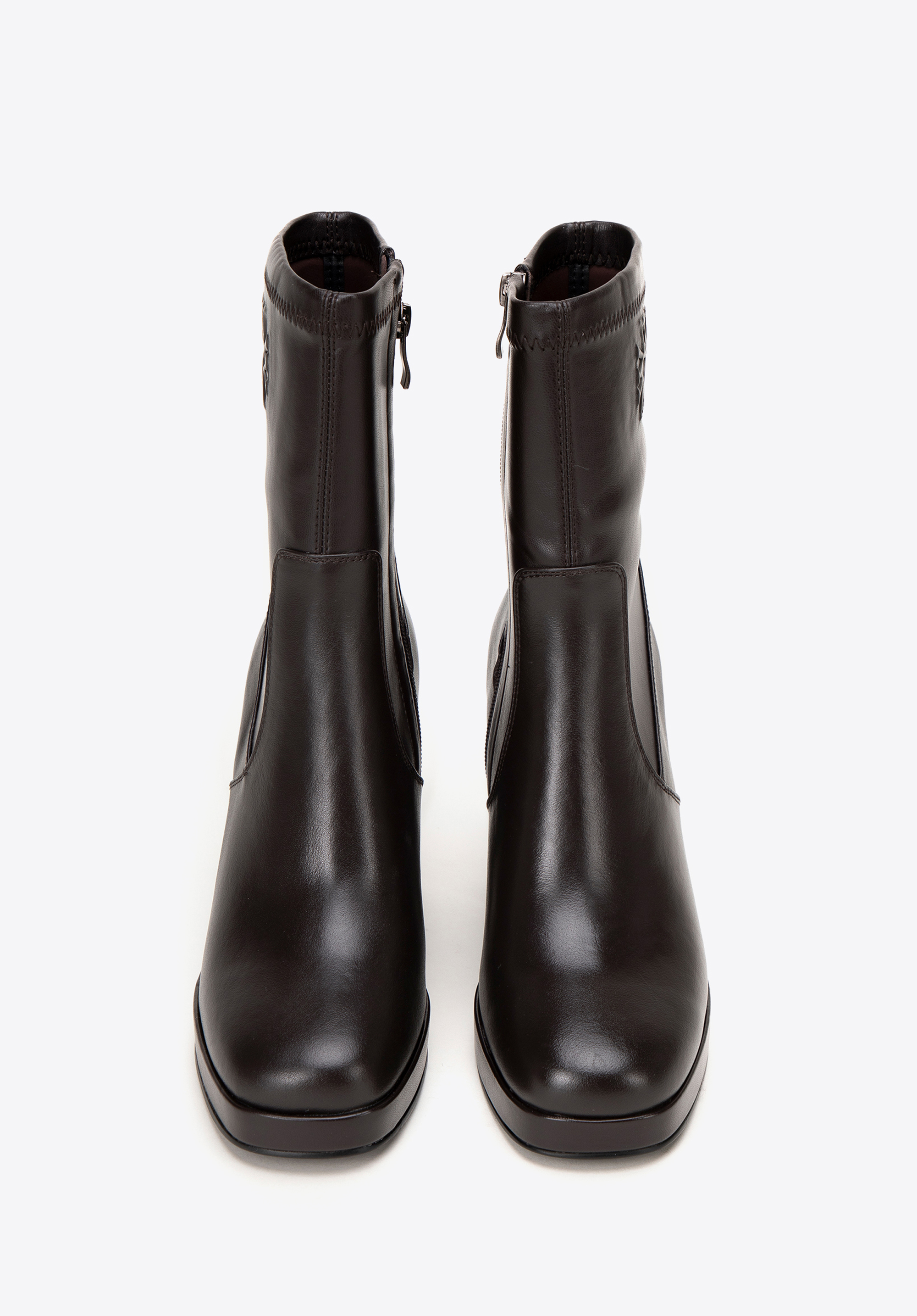 Entdecken Sie Luxus und modernen Stil in einem Schritt mit unseren eleganten Damenstiefeletten aus hochwertigem Naturleder mit dezenten Kunstlederdetails . Diese einzigartigen Schuhe kombinieren klassisches Design mit einem modernen Akzent und bieten nicht nur Stil, sondern auch Komfort. Dieser Schuh ist mit einer quadratischen Zehenpartie ausgestattet, die nicht nur einen einzigartigen Look, sondern auch außergewöhnlichen Tragekomfort garantiert. Ein dezent geprägtes Monogramm am Knöchel sorgt für einen raffinierten Look. Der extra hohe, elegante Blockabsatz verschlankt das Bein optisch und das eingebaute Plateau erhöht den Tragekomfort und einen modischen Look.