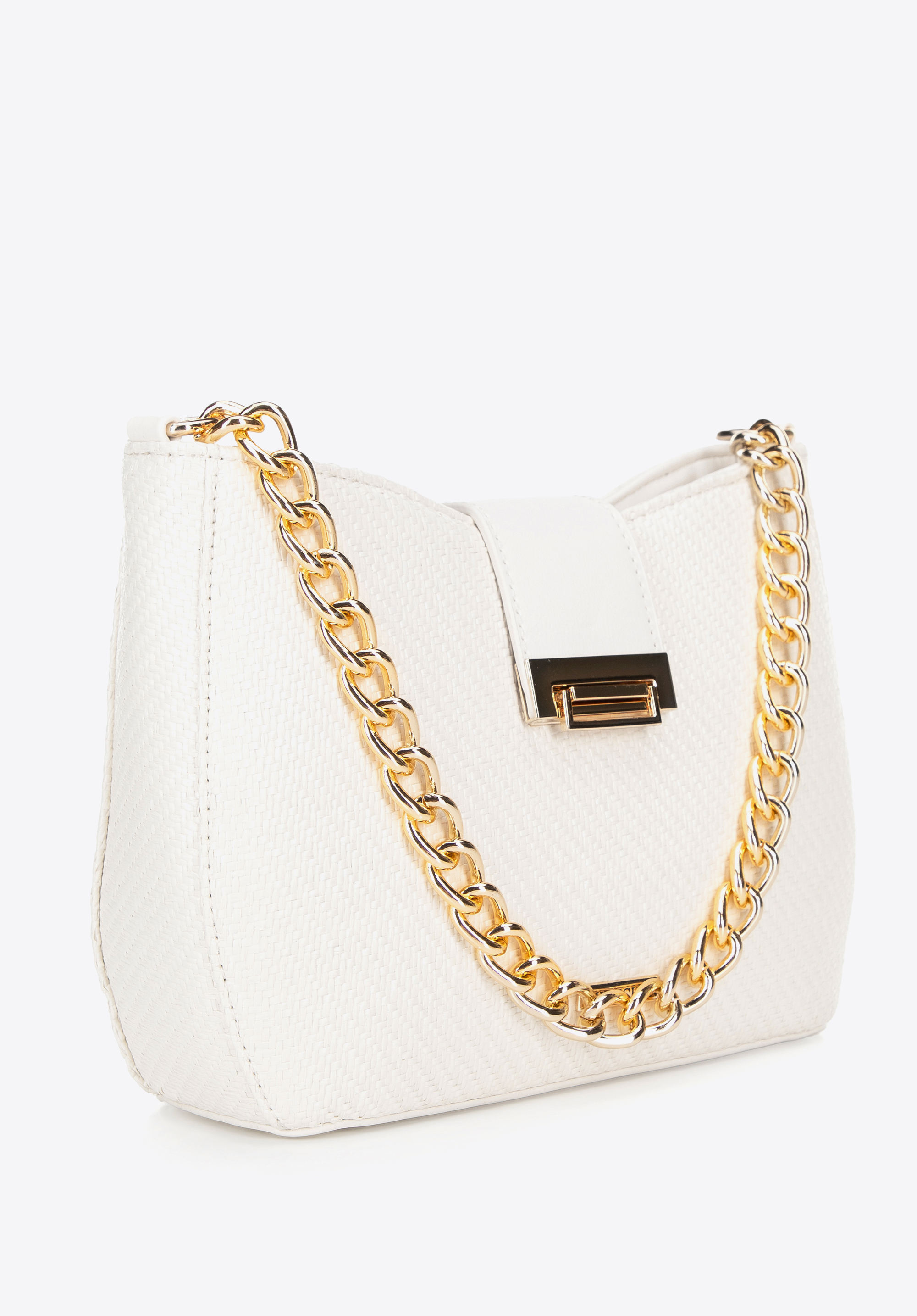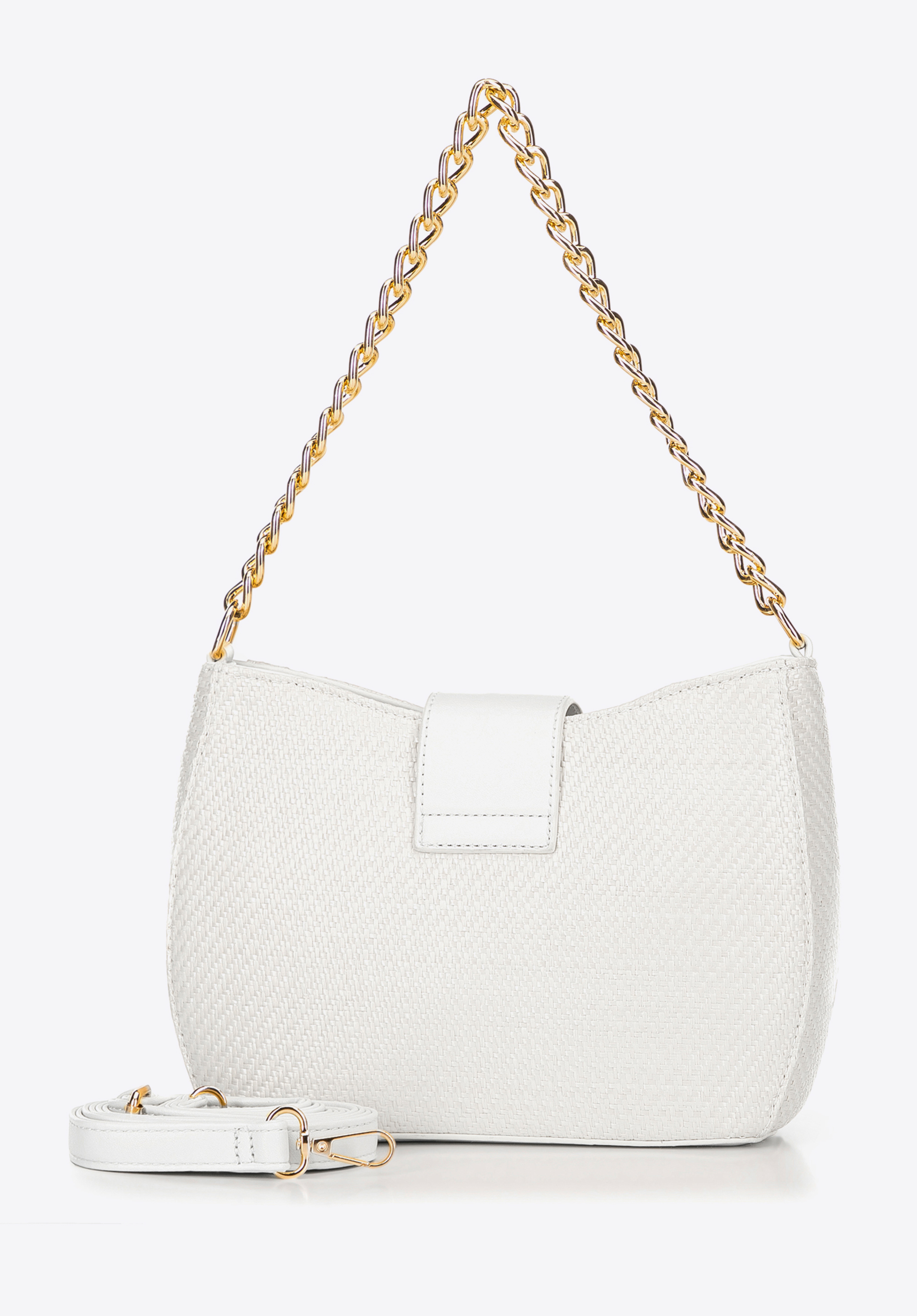 Diese Crossbody-Tasche für Damen verbindet Eleganz mit Alltagstauglichkeit. Sie besteht aus strapazierfähigem Polypropylen und Polyurethan, ist leicht, aber robust, und ihr Reißverschluss gewährleistet die Sicherheit der verstauten Gegenstände. Das Innere der Tasche beherbergt ein geräumiges Fach mit zwei Fächern, von denen eines mit einem Reißverschluss versehen ist. Ein mit Juwelen besetzter Kettenhenkel sorgt für dezente Eleganz, während ein verstellbarer Riemen ein bequemes Tragen ermöglicht.