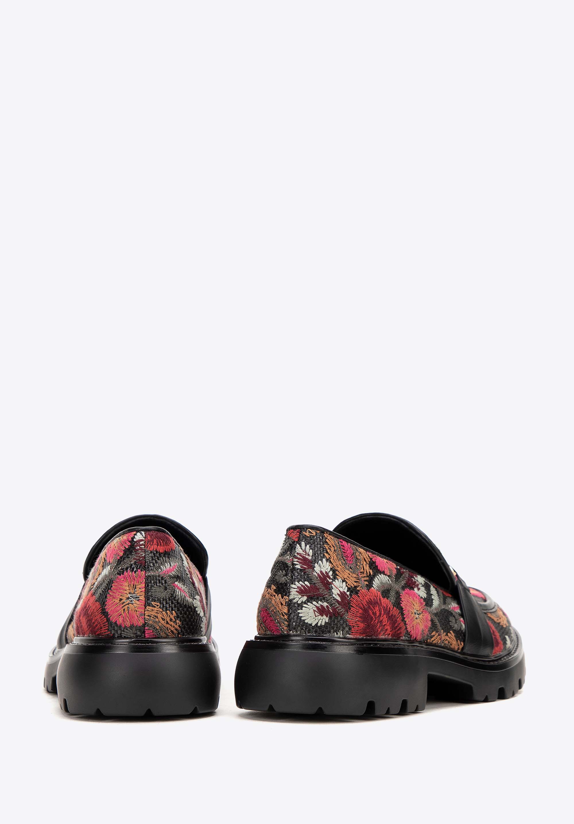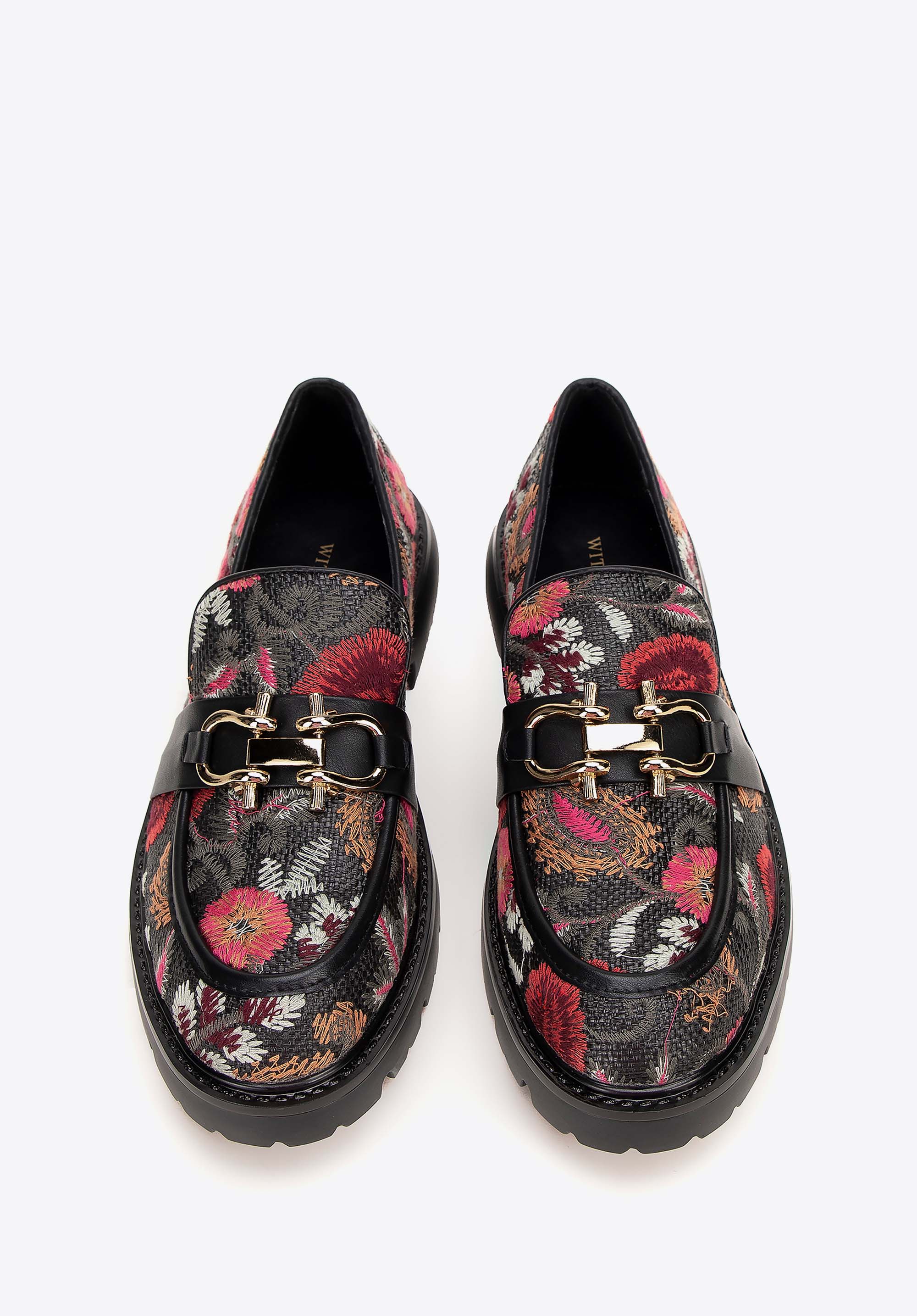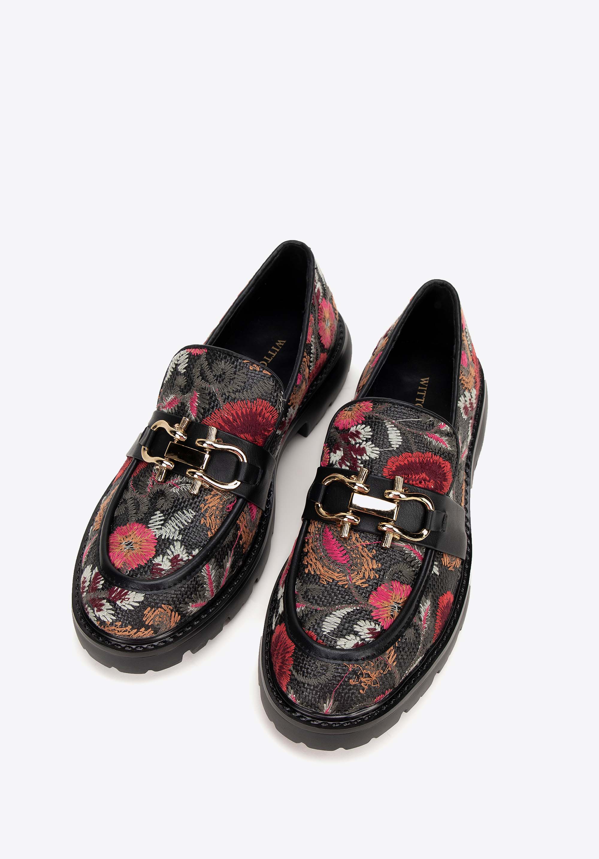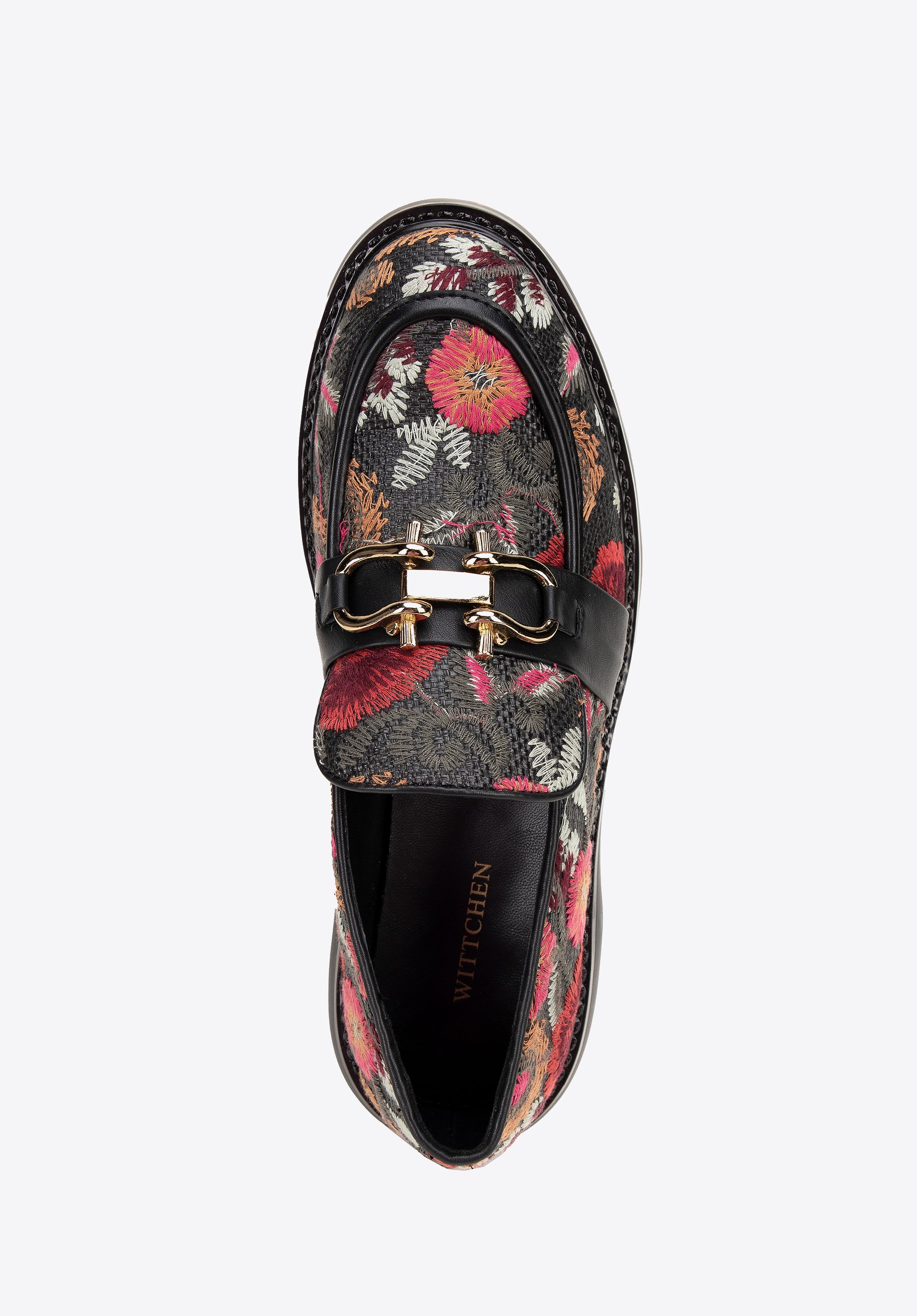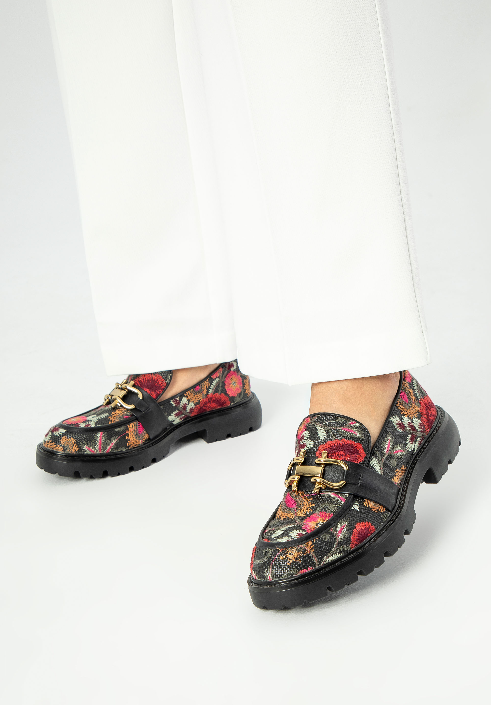 Tauchen Sie ein in Eleganz und Komfort mit unseren Plateau-Loafern für Damen ! Diese Loafer sind aus hochwertigen Materialien gefertigt und vereinen Strapazierfähigkeit mit Komfort. Sie eignen sich perfekt sowohl für den Alltag als auch für elegantere Outfits. Gestickte Muster und goldfarbene Details auf dem Vorderblatt verleihen ihnen einen einzigartigen Charakter.