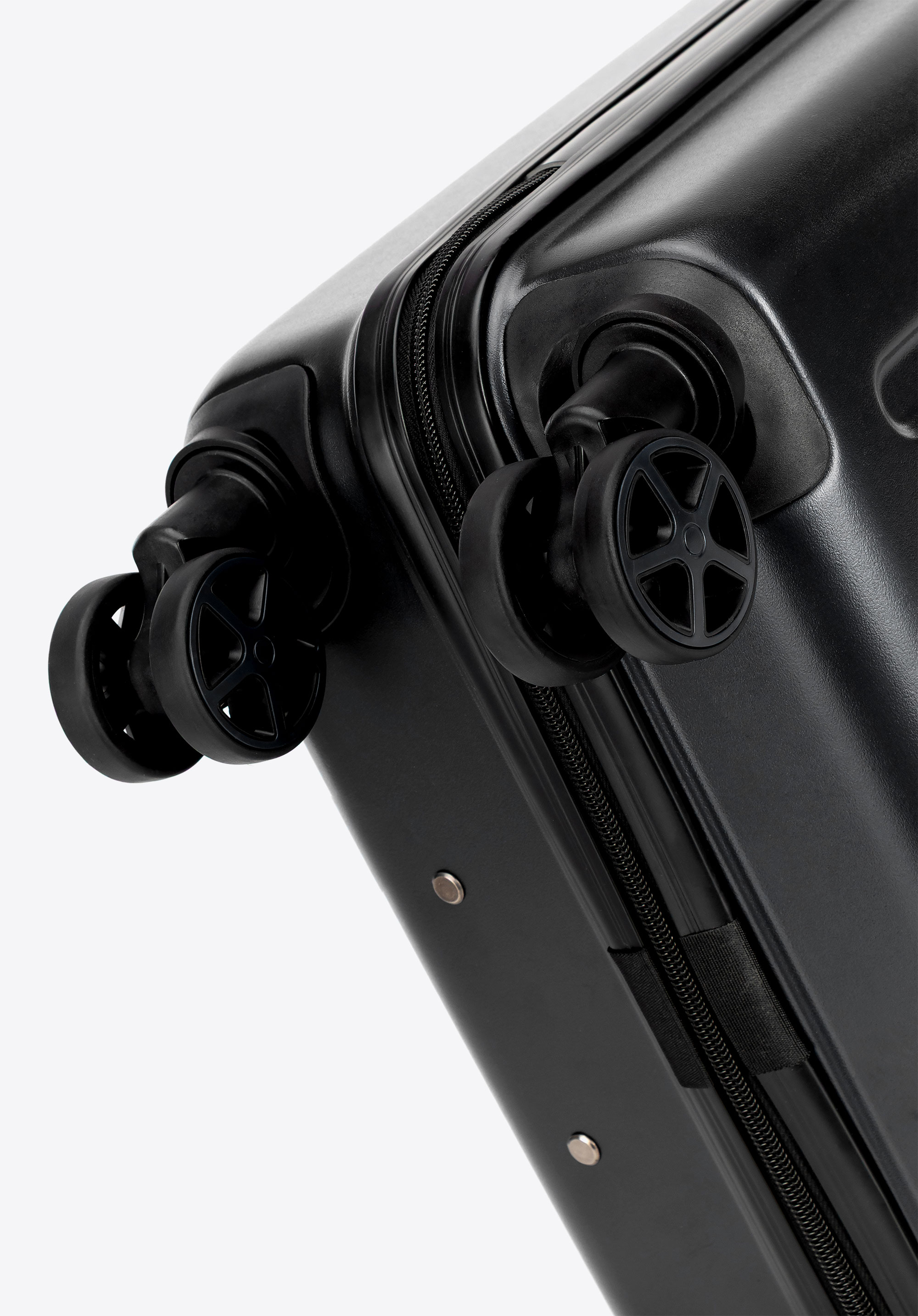 - Vier Doppelrollen mit voller 360°-Drehung sorgen für einfaches und reibungsloses Manövrieren des Koffers.