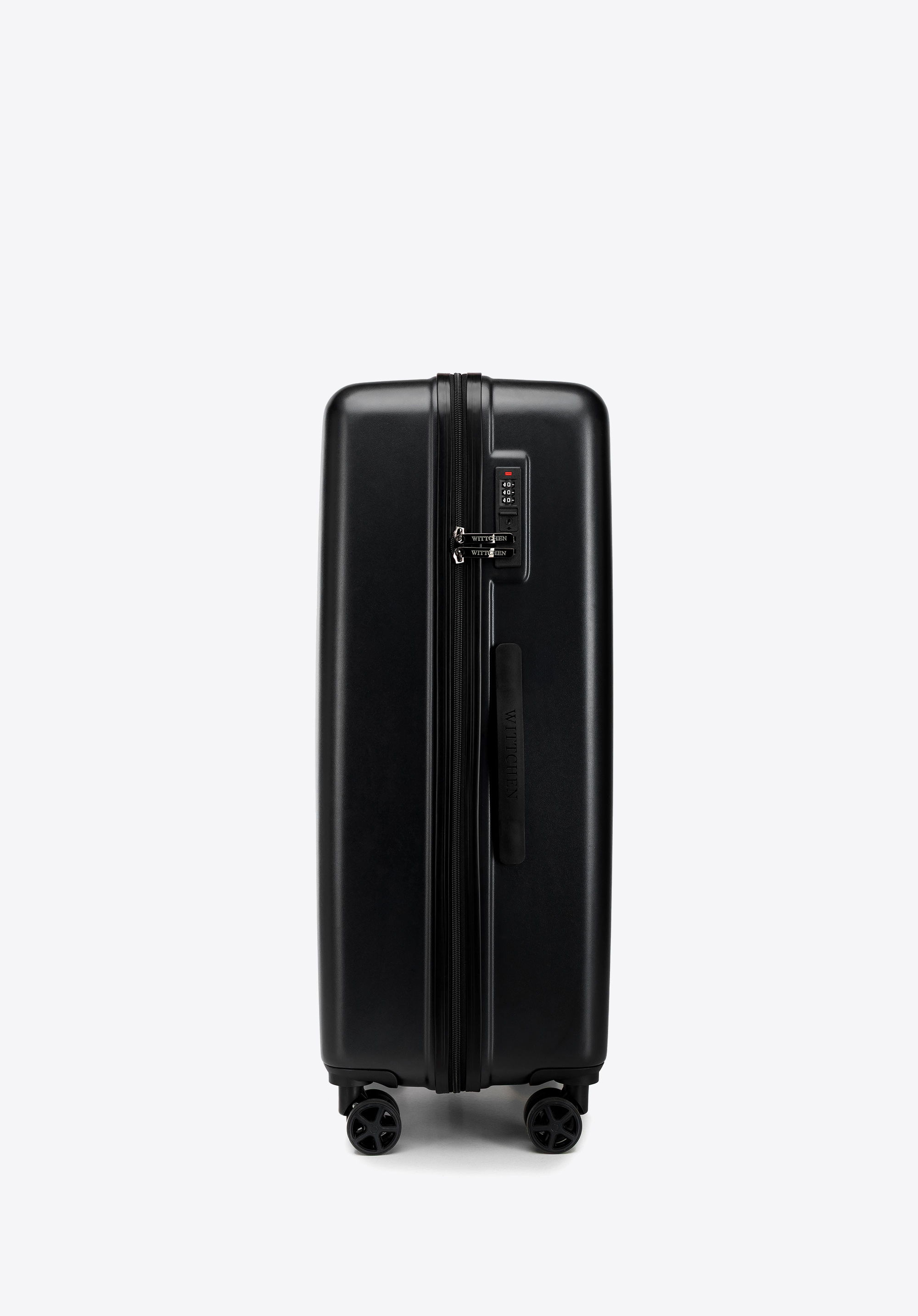 Der elegante Großraumkoffer WITTCHEN vereint Stil, Funktionalität und Zuverlässigkeit und macht jede Reise zum Vergnügen. Er ist aus ABS gefertigt und besticht durch sein geprägtes Logo und die markanten Rillen , die ihm einen einzigartigen Charakter verleihen. Dank der vier Doppelrollen mit 360°-Drehung wird das Reisen noch einfacher und angenehmer.