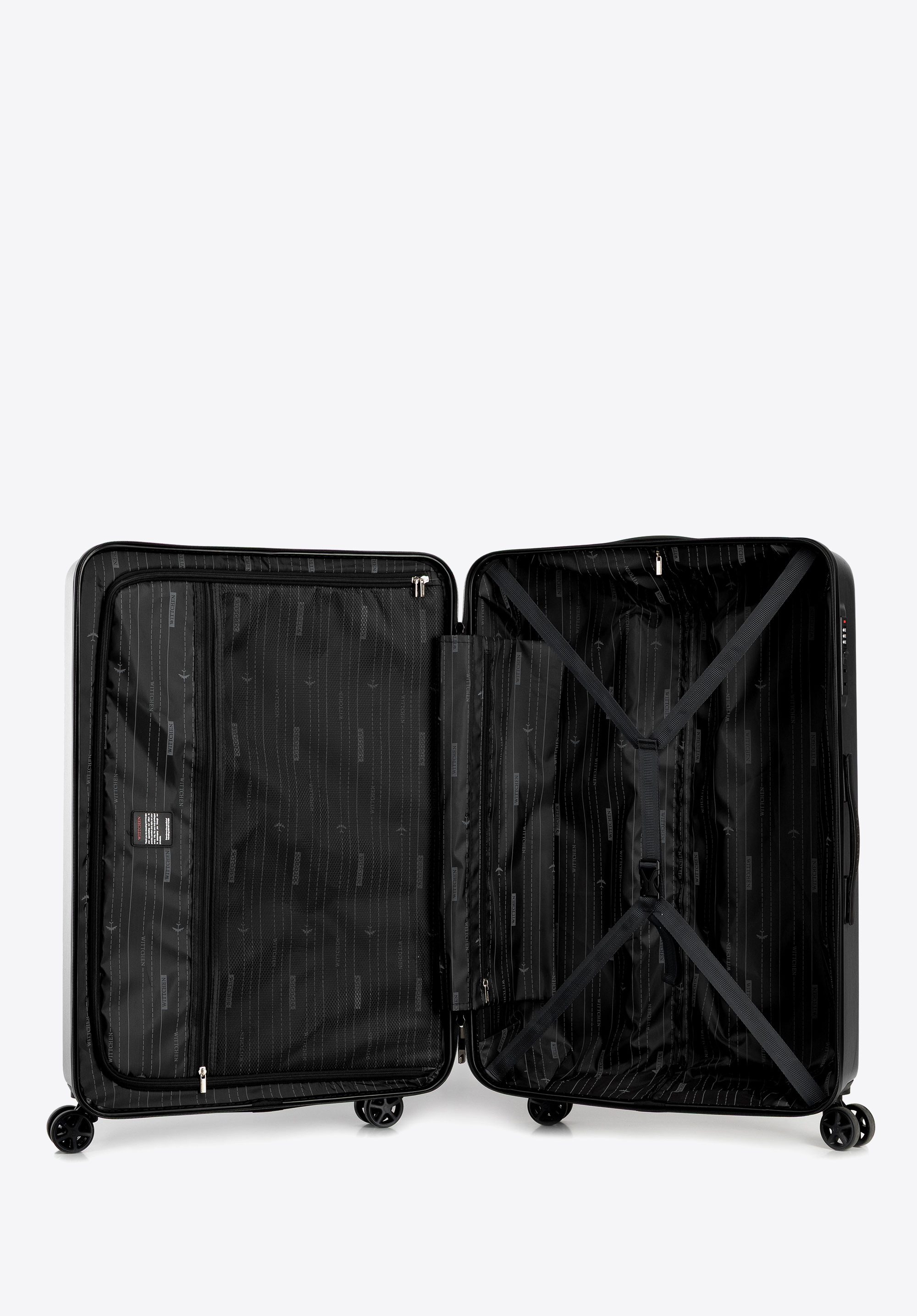 - Innenausstattung : Der geräumige Koffer ist mit zwei Reißverschlusstaschen (darunter eine aus Netzmaterial) ausgestattet und ermöglicht die bequeme Aufbewahrung kleiner Gegenstände.