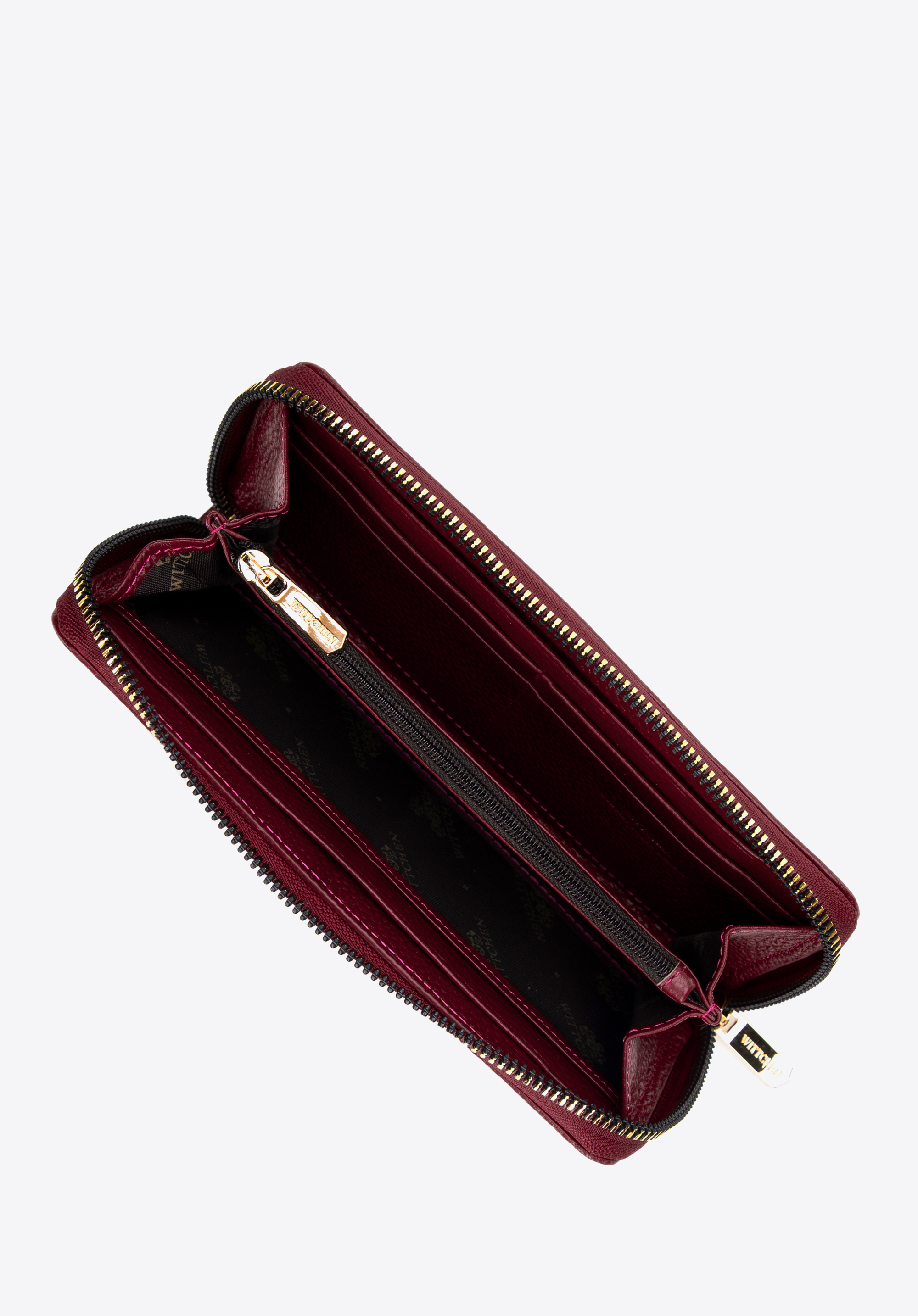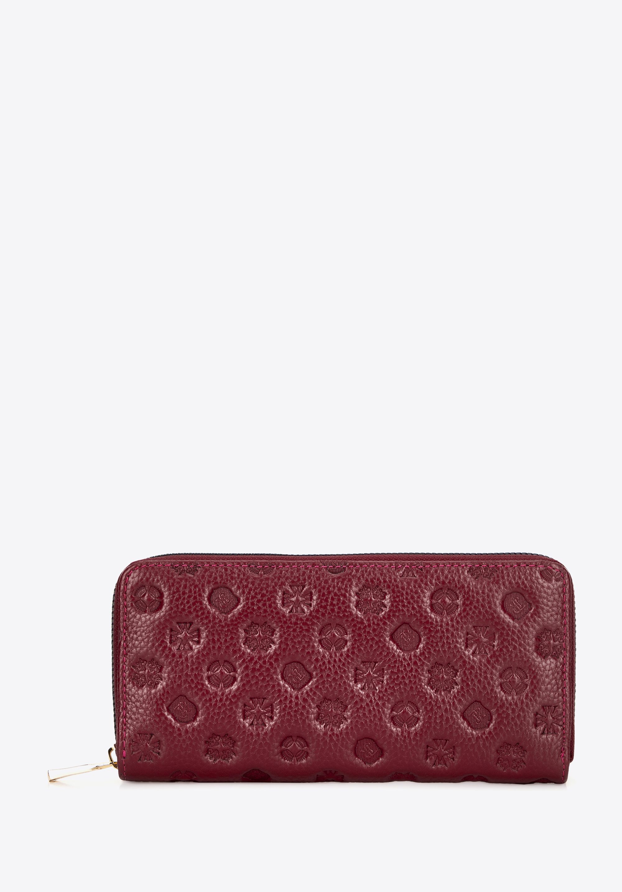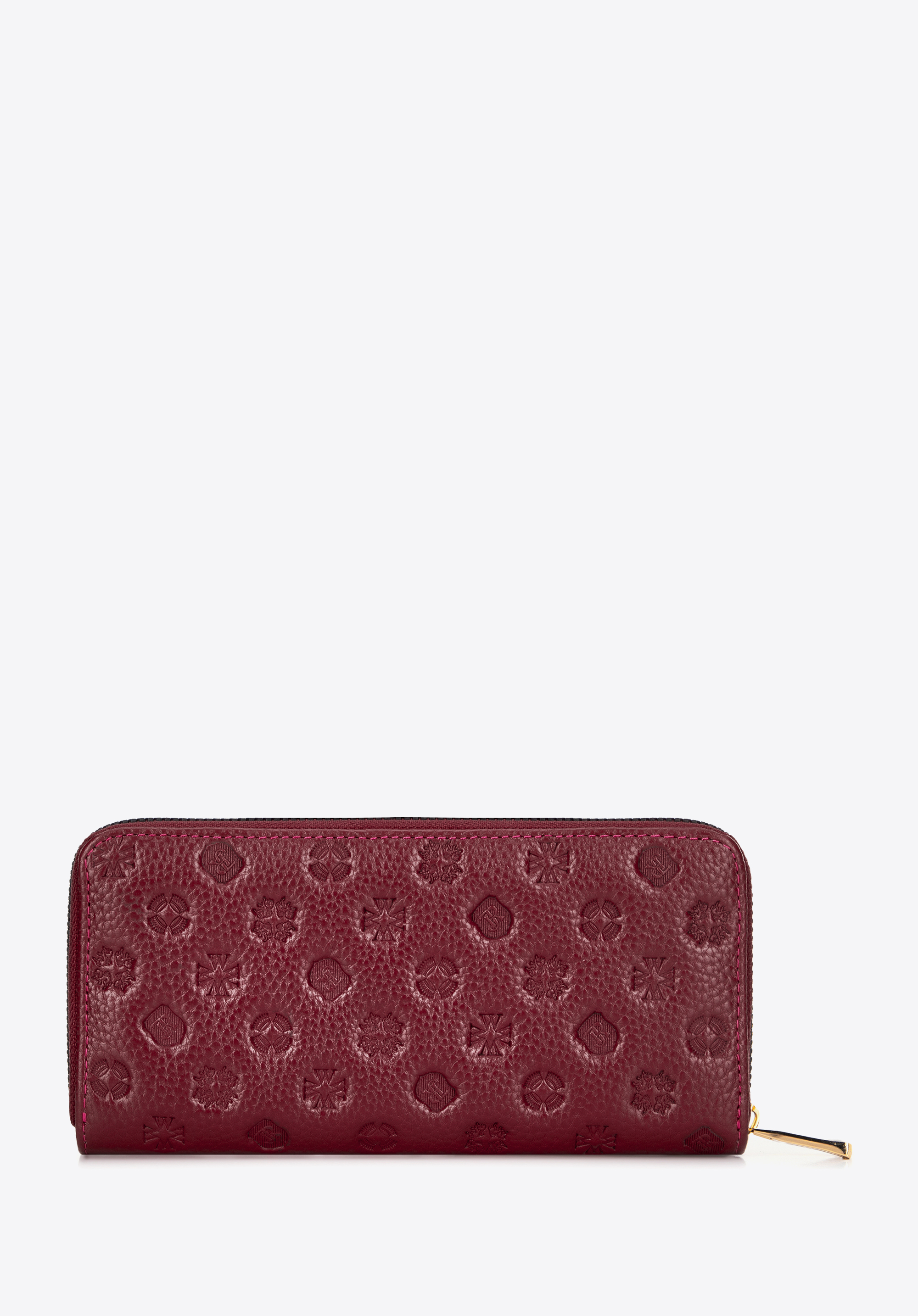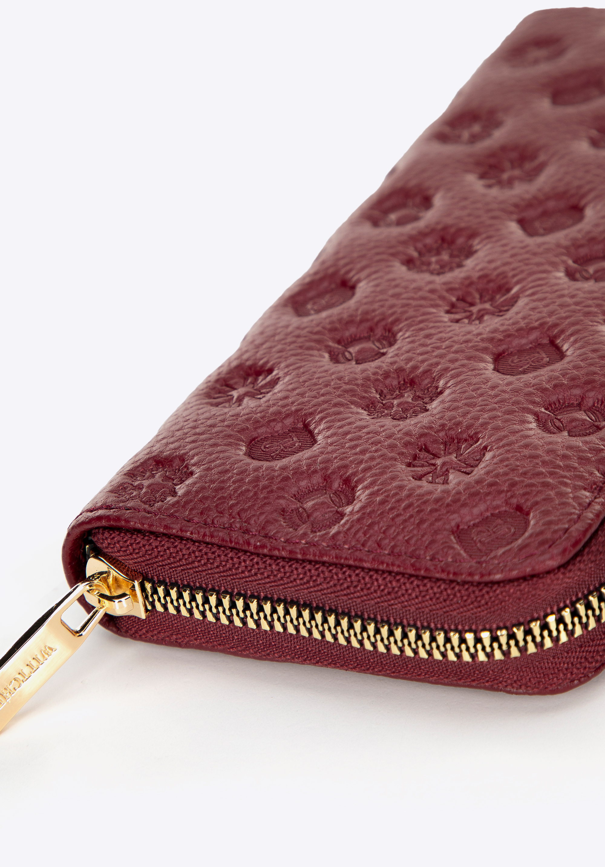 Großes Ledergeldbörse für Damen mit Prägung Farbe: dunkelrot