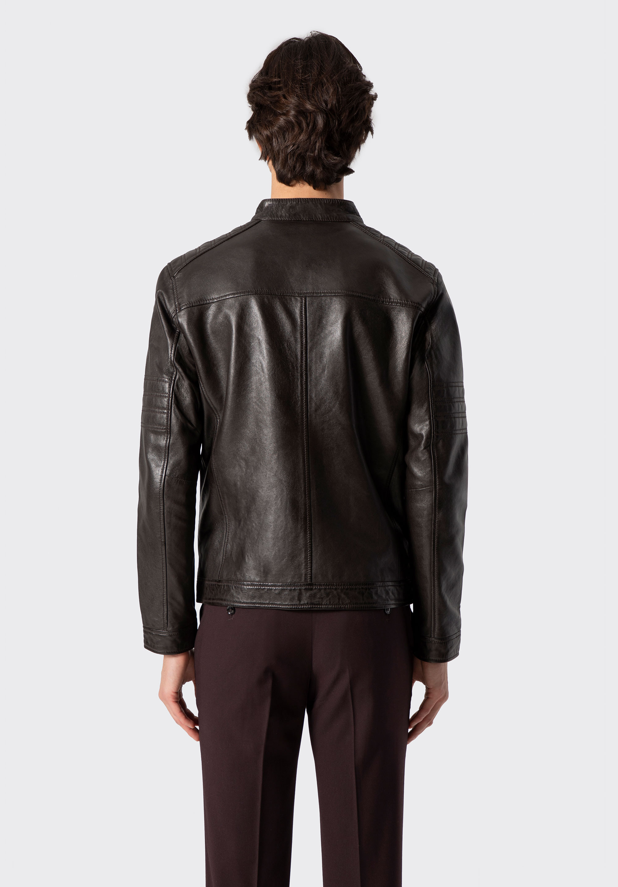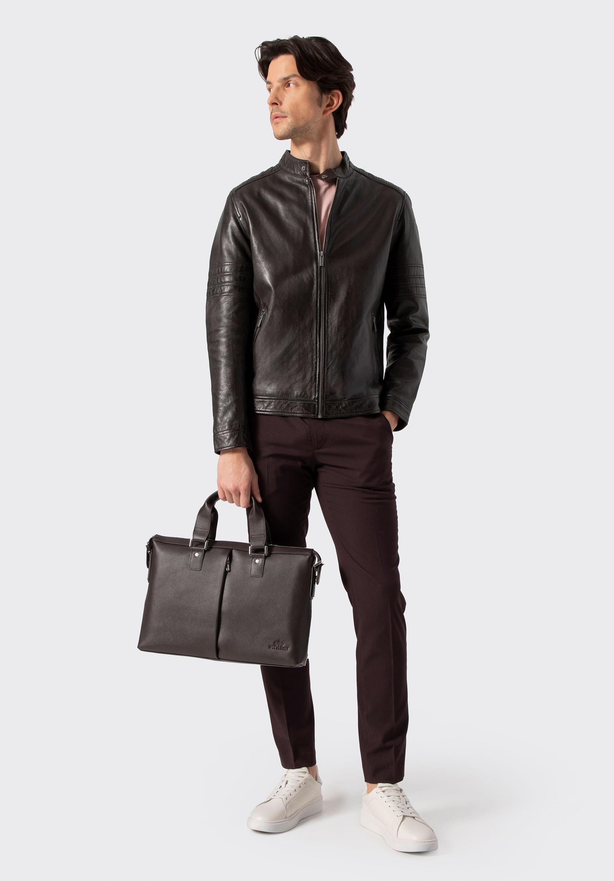 Machen Sie sich bereit, Ihre Garderobe aufzuwerten! Diese Herrenjacke aus natürlichem Schafsleder kombiniert zeitloses Design mit modernen Details, die Ihren Stil unterstreichen. Metallakzente, darunter das Logo der Marke, verleihen ihr einen unverwechselbaren Charakter. Dekorative Steppeinsätze an Schultern und Ärmeln verleihen einen robusten, maskulinen Touch, während die verstellbaren Bündchen mit Reißverschluss für eine perfekte Passform sorgen.