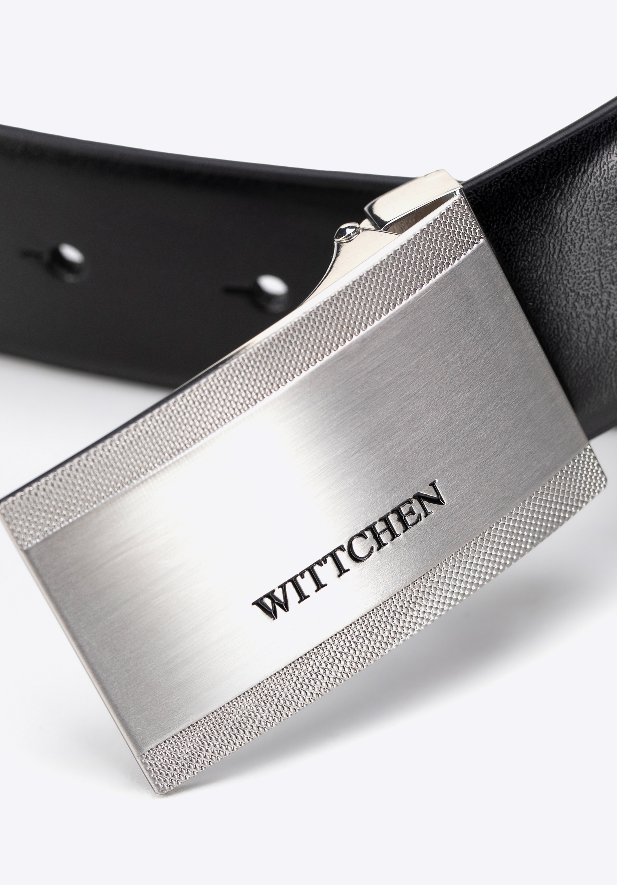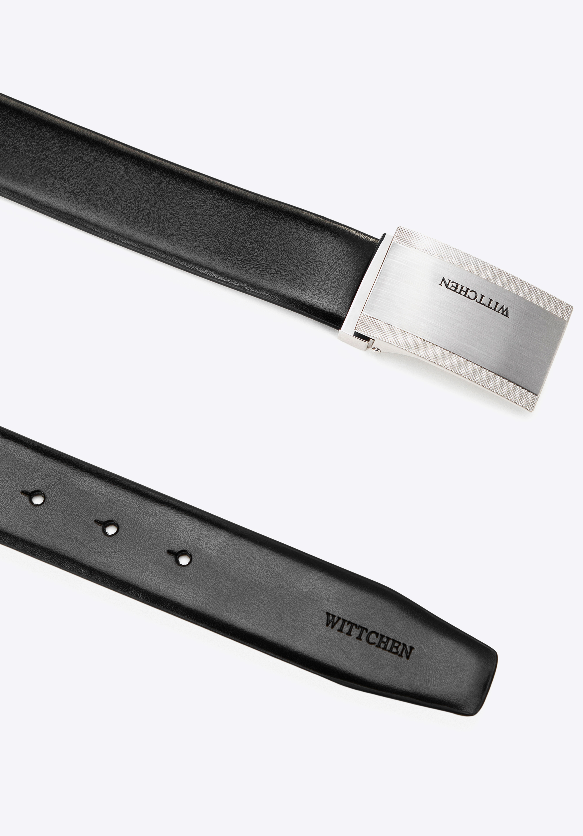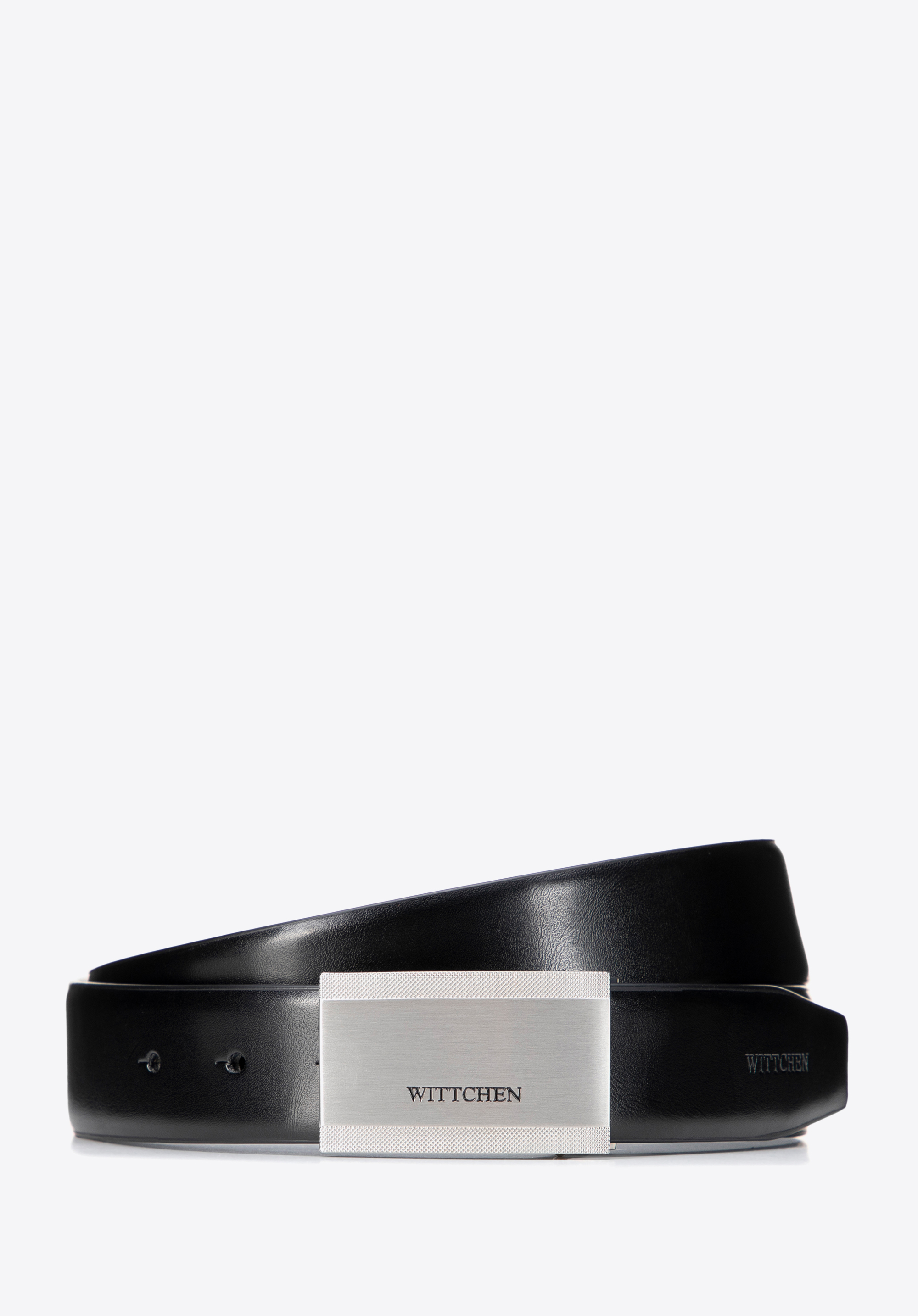 Moderne Eleganz – Herren-Ledergürtel mit Plattenschnalle und Markenlogo