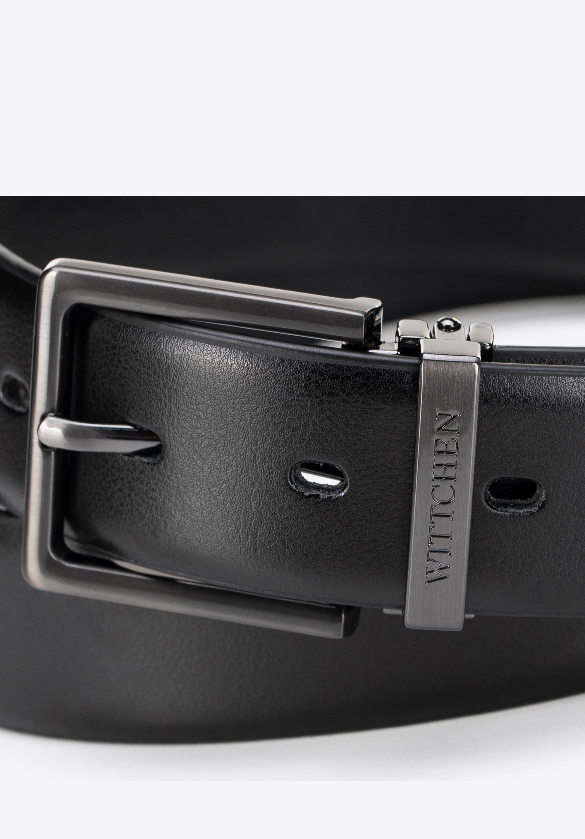 - Geprägtes Herstellerlogo am Ende des Gürtels: Ein dezentes Detail, das Eleganz ausstrahlt.