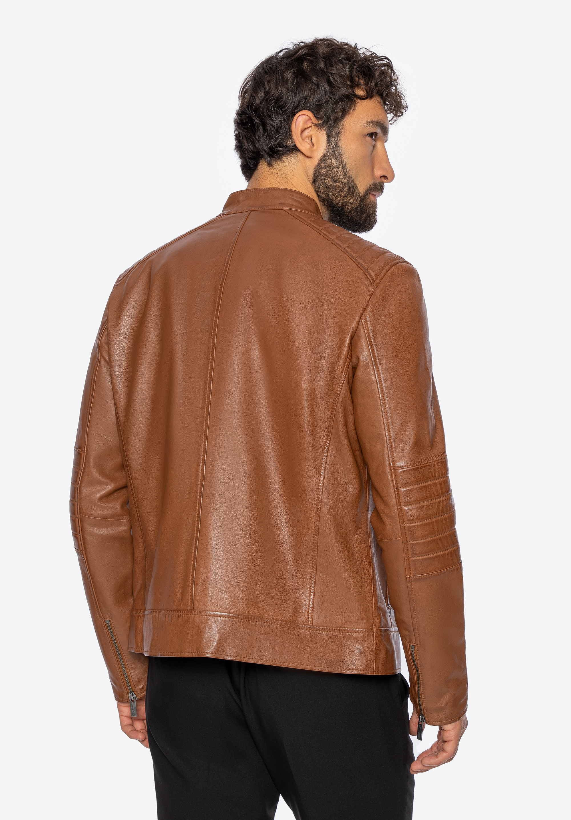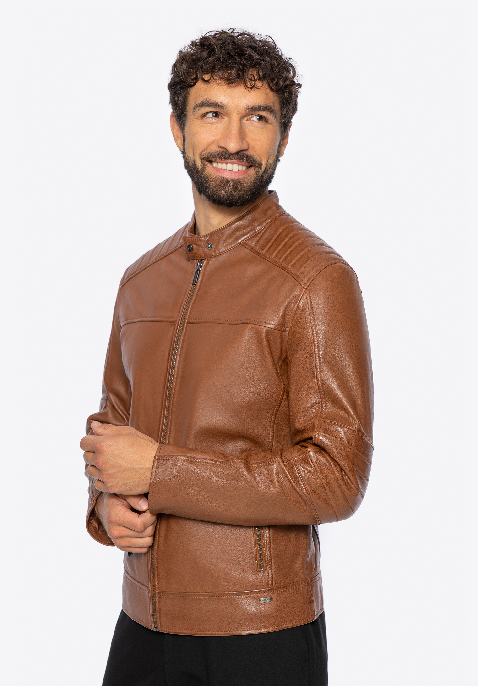 Wählen Sie eine Jacke , die Luxus und zeitloses Design perfekt vereint. Sie ist aus Schafsleder gefertigt und überzeugt durch Weichheit, Strapazierfähigkeit und eine makellose Passform. Der klassische Schnitt wird durch Nähte an Schultern und Ärmeln aufgewertet, die Charakter verleihen und einen ausgesprochen maskulinen Stil betonen. Ein dezentes Metalllogo an der Seite und die charakteristischen Reißverschlüsse unterstreichen subtil die Liebe zum Detail. Praktische Features – zwei Außentaschen mit Reißverschluss und zwei Innentaschen (eine mit Reißverschluss, eine offen) – machen diese Jacke ebenso funktional wie stilvoll.
