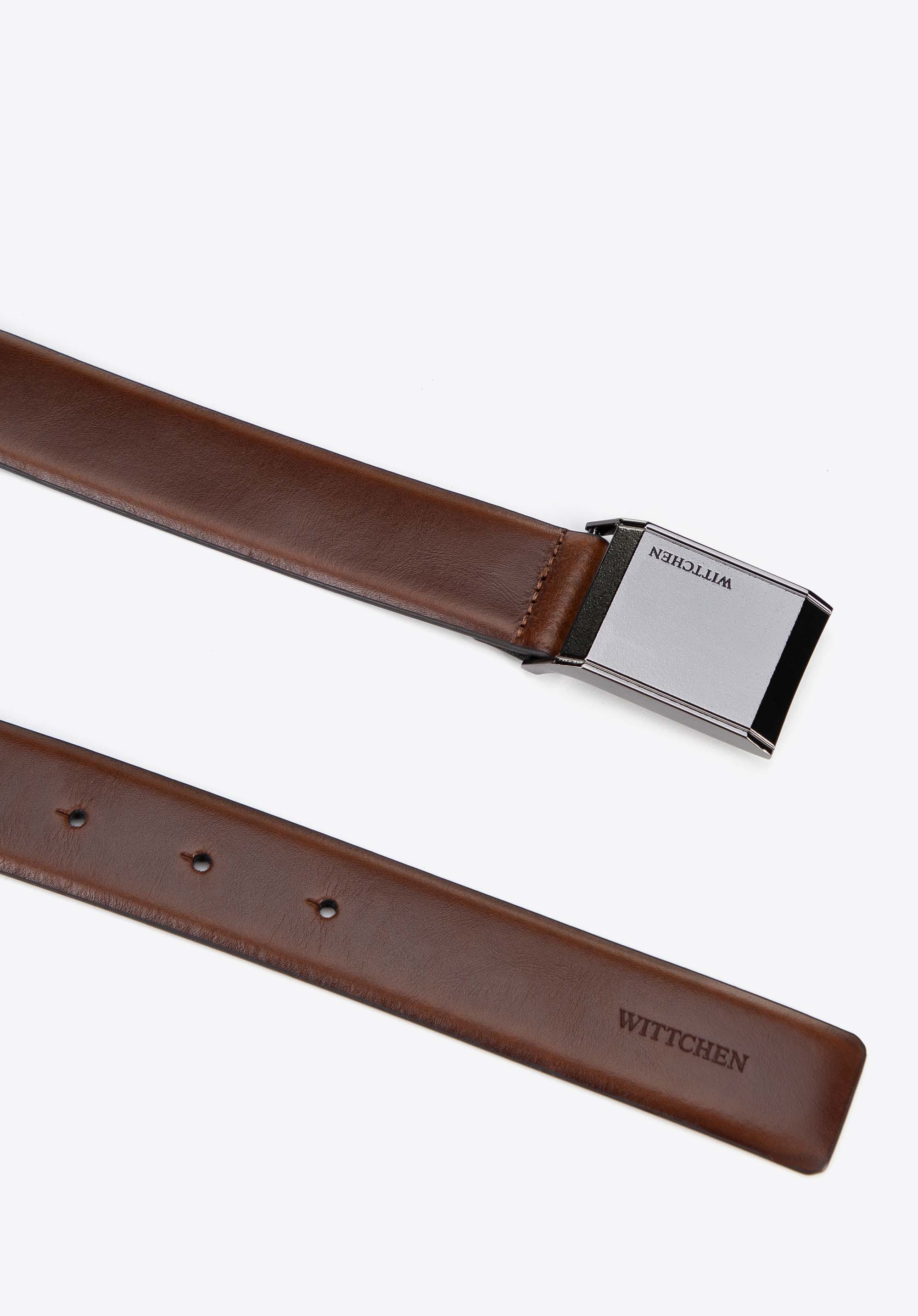 Schlicht und dennoch elegant – unser Herrenledergürtel ist die Essenz zeitloser Klassik, die niemals aus der Mode kommt. Gefertigt aus hochwertigem Naturleder, besticht der Gürtel durch seine glatte Oberfläche, die ihm einen edlen Charakter verleiht. Die Schnalle ist ein echtes Detail und zieht die Aufmerksamkeit auf sich – ihre glänzende Metalloberfläche verleiht dem gesamten Produkt auf subtile Weise Eleganz.
