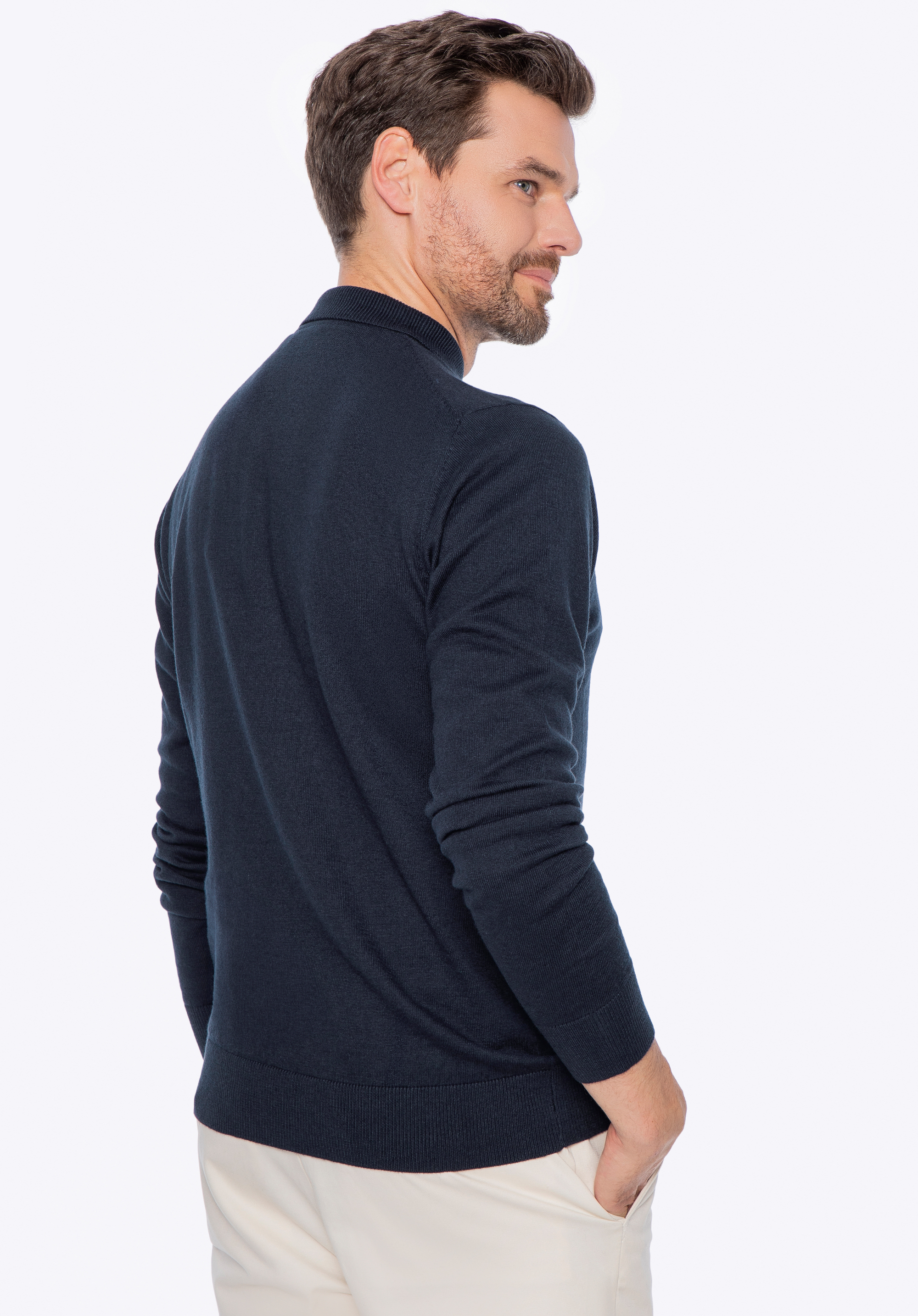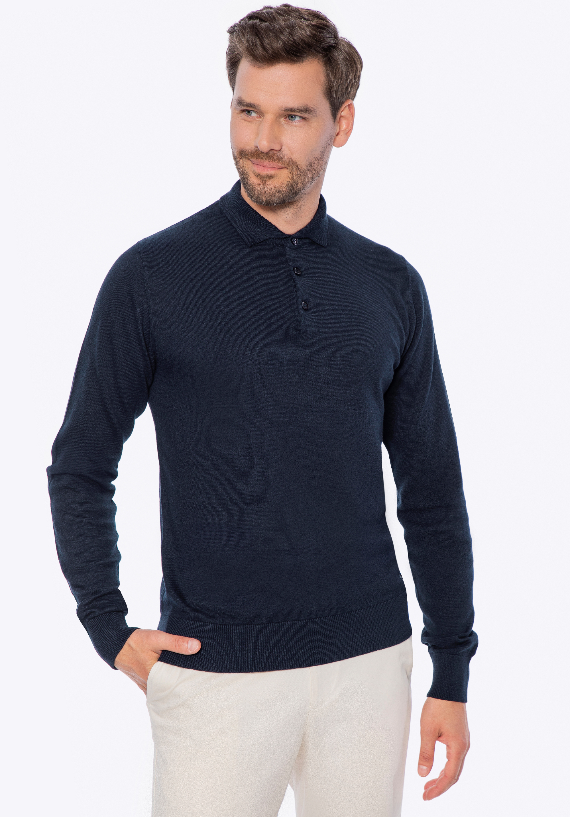 Dezenter Luxus für jeden Tag – dieser langärmelige Herrenpullover ist eine Hommage an zeitlose Klassiker und wird von jedem Mann geschätzt, der Wert auf Komfort und Qualität legt. Aus weicher Baumwolle mit Kaschmir-Mischung gefertigt, hüllt er Sie in Wärme und bietet gleichzeitig natürliche Atmungsaktivität – perfekt für kühlere Tage. Das Highlight ist der elegante Kragen mit Knopfleiste – mit einer einfachen Geste verwandeln Sie Ihren Look von lässig in einen eleganten, lässig-eleganten Stil. Ein dezentes Metalllogo am unteren Saum rundet das Design ab – ein kleines Detail, das für Qualität spricht.