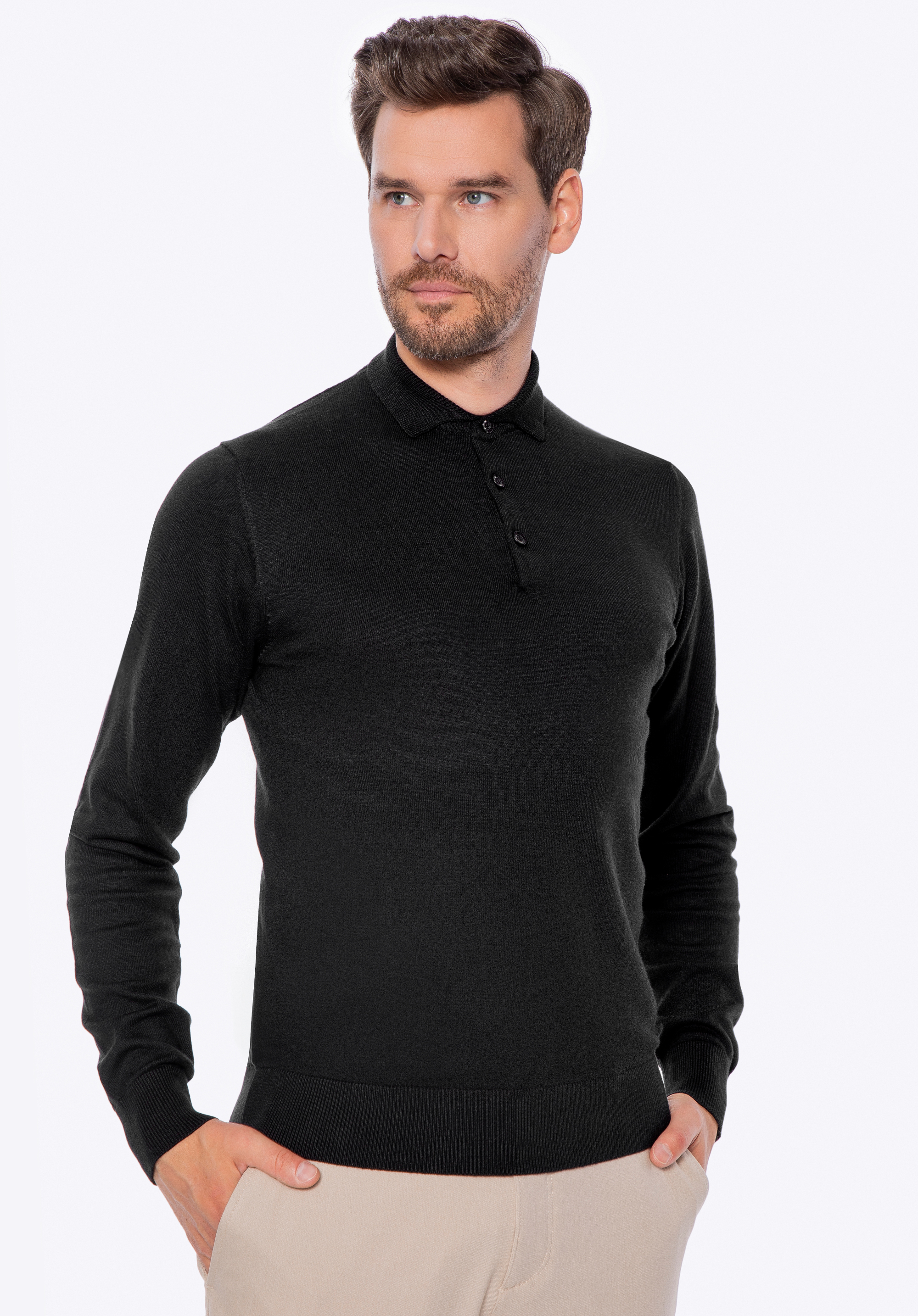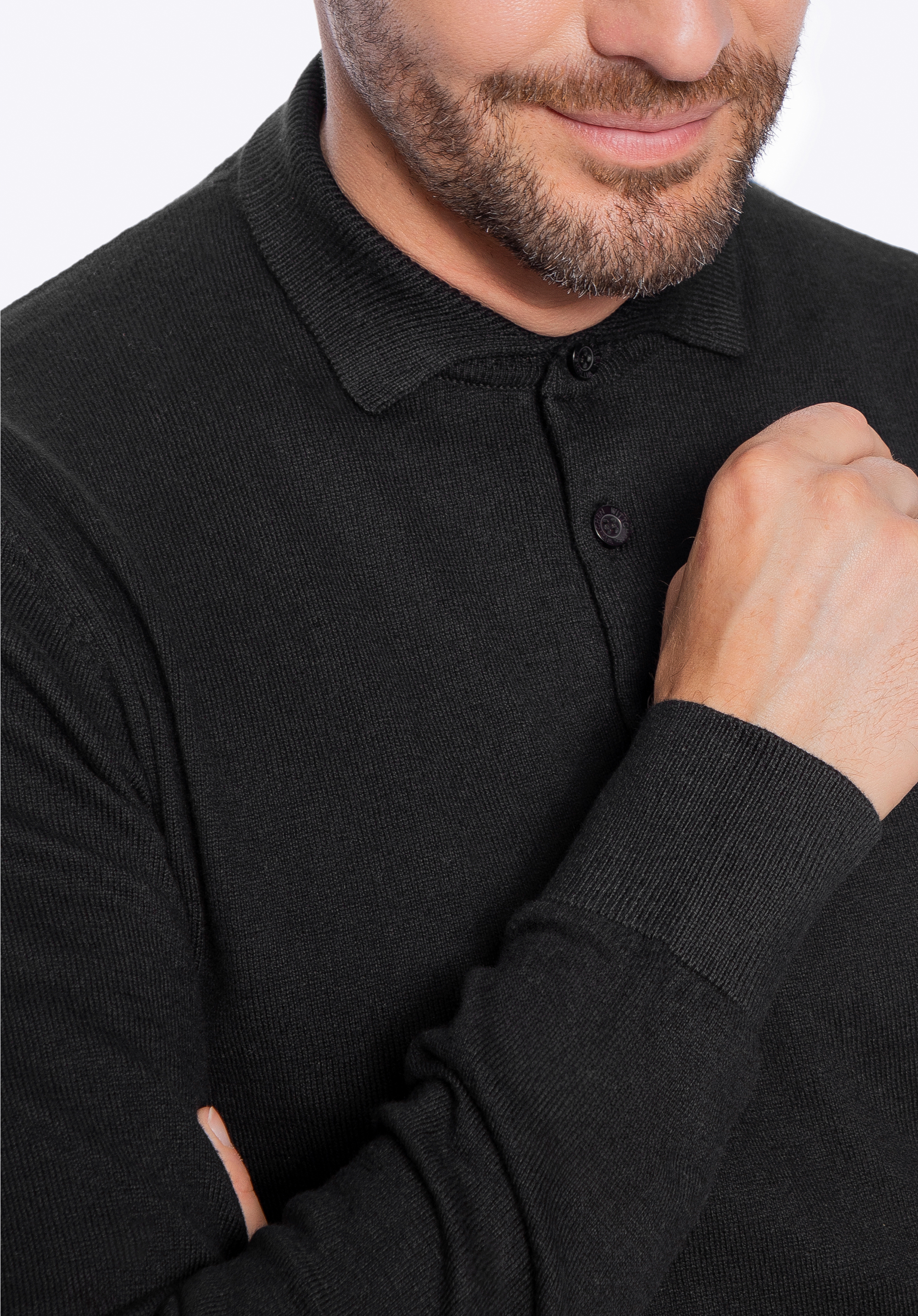 Dezenter Luxus für jeden Tag – dieser langärmelige Herrenpullover ist eine Hommage an zeitlose Klassiker und wird von jedem Mann geschätzt, der Wert auf Komfort und Qualität legt. Aus weicher Baumwolle mit Kaschmir-Mischung gefertigt, hüllt er Sie in Wärme und bietet gleichzeitig natürliche Atmungsaktivität – perfekt für kühlere Tage. Das Highlight ist der elegante Kragen mit Knopfleiste – mit einer einfachen Geste verwandeln Sie Ihren Look von lässig in einen eleganten, lässig-eleganten Stil. Ein dezentes Metalllogo am unteren Saum rundet das Design ab – ein kleines Detail, das für Qualität spricht.