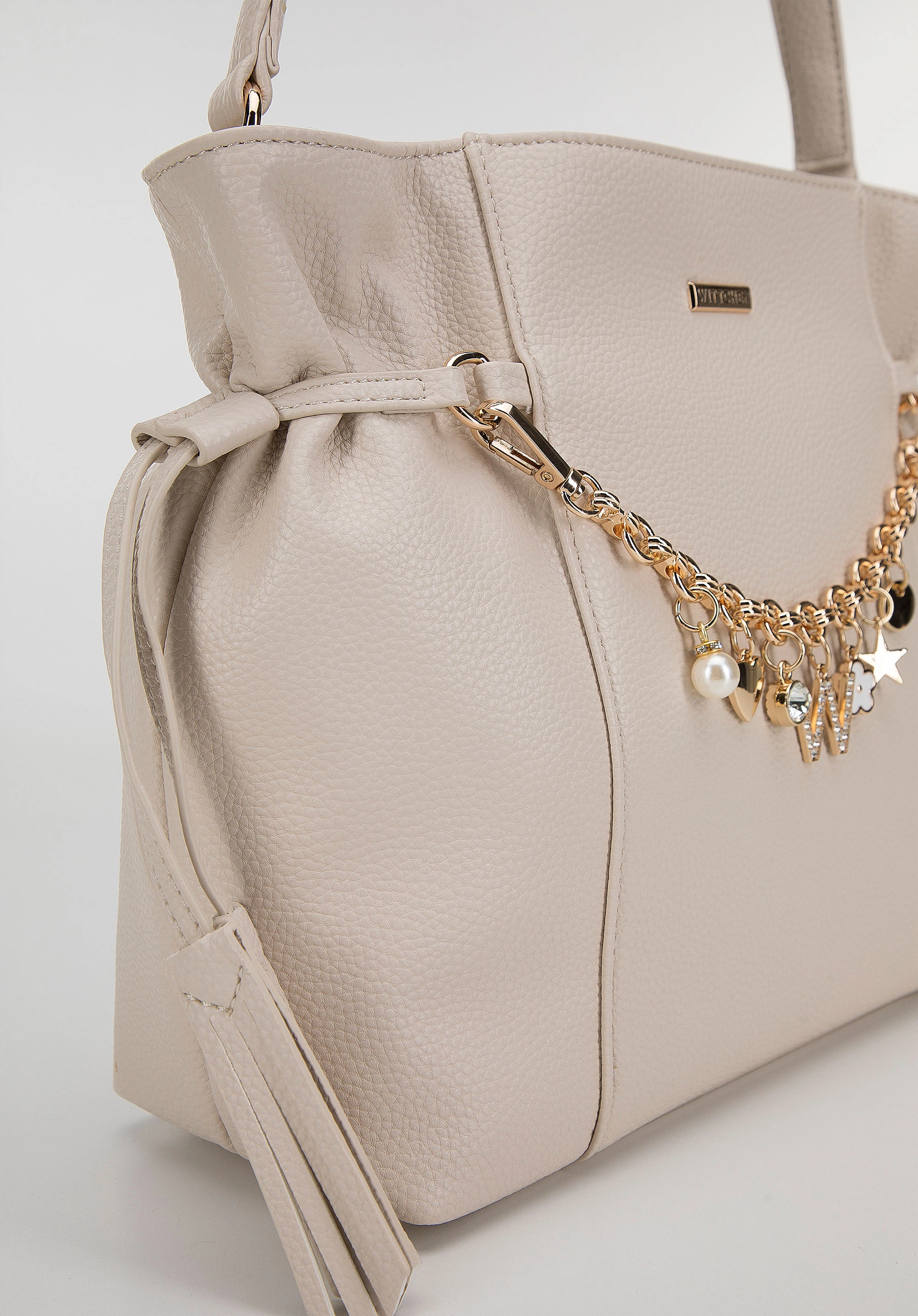Diese Hobo-Tasche eignet sich perfekt für elegante und lässige Outfits. Sie passt gut zu einem klassischen Trenchcoat, Jeans und Stiefeletten, ergänzt aber auch formellere Kleidung wie Bleistiftröcke oder Anzüge. Verziert mit einer stilvollen und charmanten Schmuckkette ist sie perfekt für Abendausflüge und macht die Tasche zum Blickfang Ihres Ensembles.