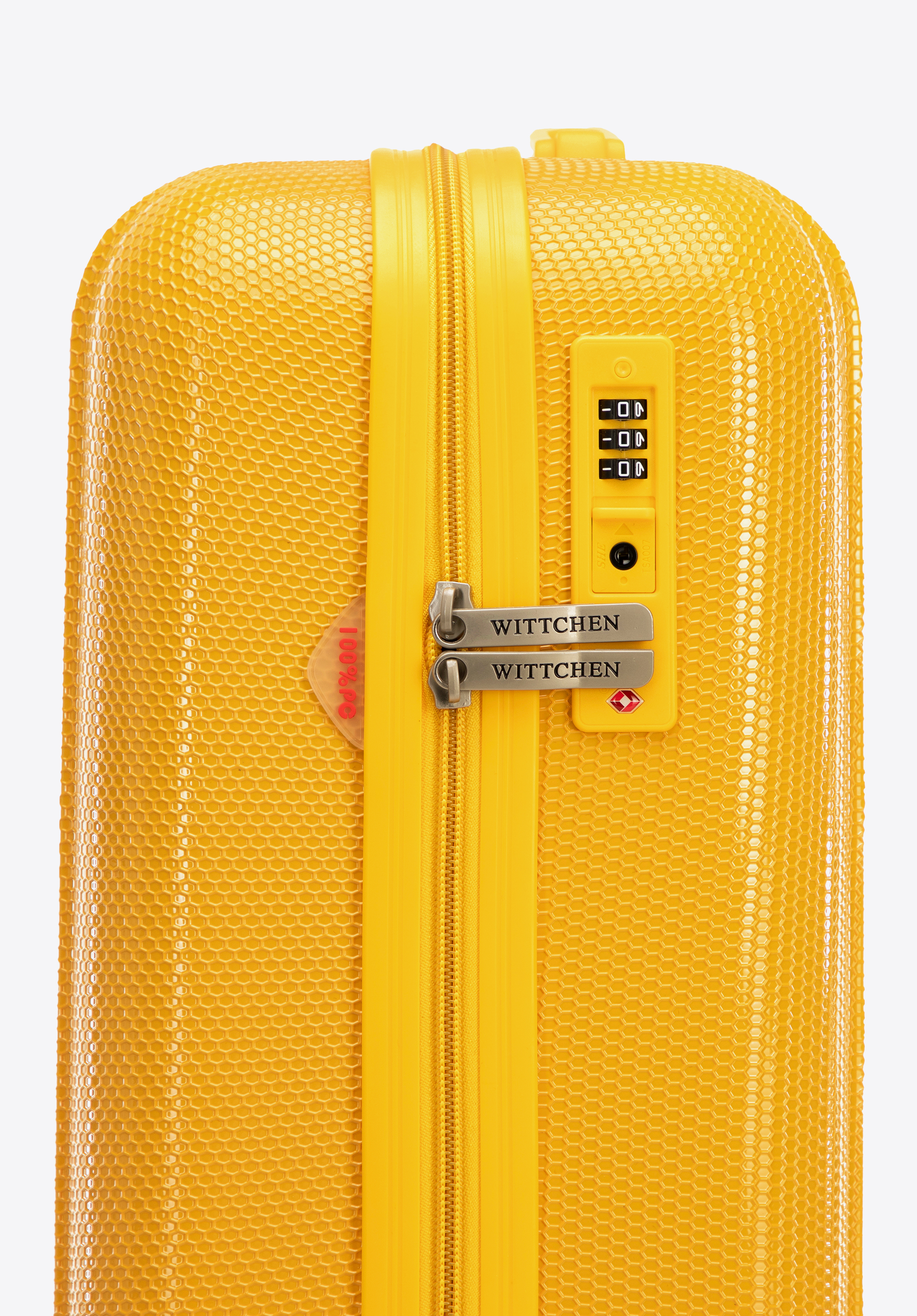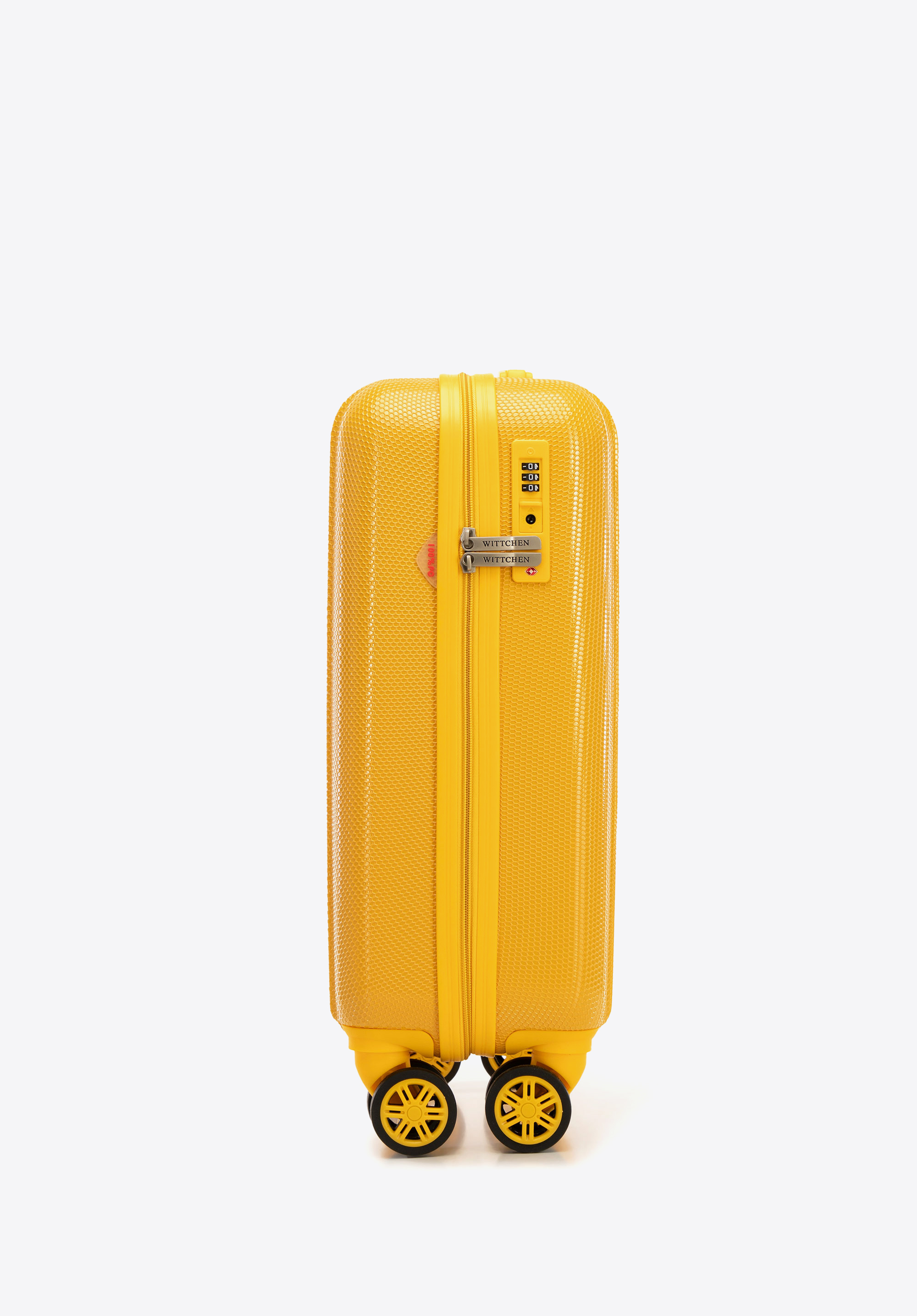 Ästhetik: Die vertikale Prägung und Textur machen den Koffer einzigartig. Der Reißverschlussriemen ist farblich auf die Kofferschale abgestimmt.