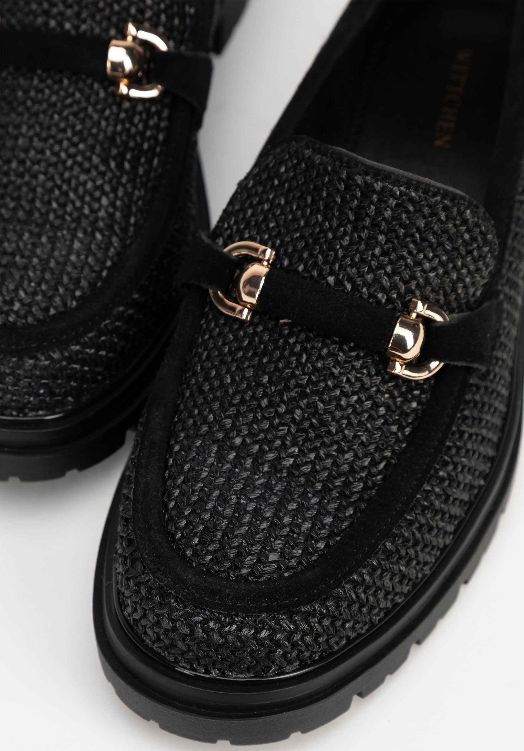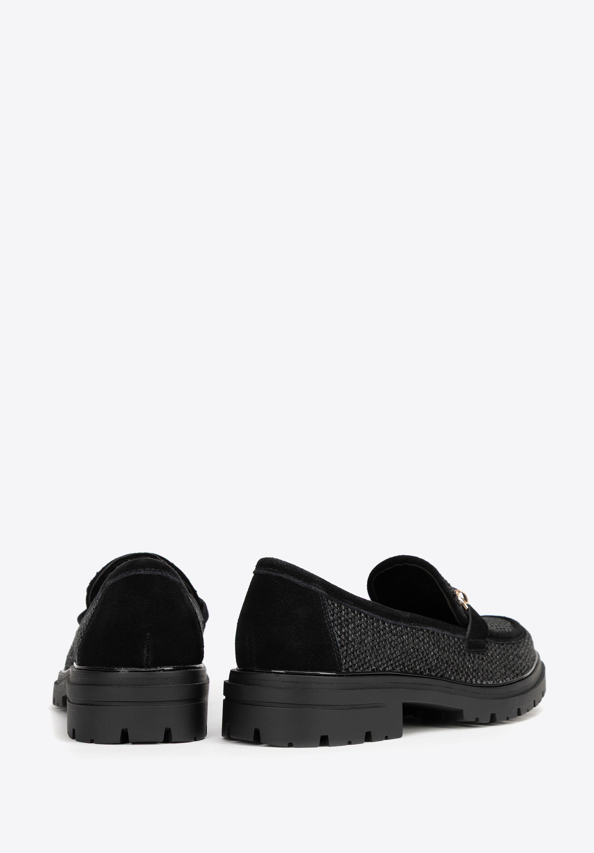 Veredeln Sie Ihren Stil mit Loafern , die natürliche Eleganz mit modernem Design verbinden. Dieses Modell aus auffälligem Kunstbast und weichem Wildleder besticht durch seine einzigartige Webstruktur und die dekorative Schnalle und verleiht ihm einen Hauch von Raffinesse. Die Slip-On-Konstruktion sorgt für Komfort, während die Plateausohle die Silhouette dezent streckt und so Stabilität und Tragekomfort bietet.