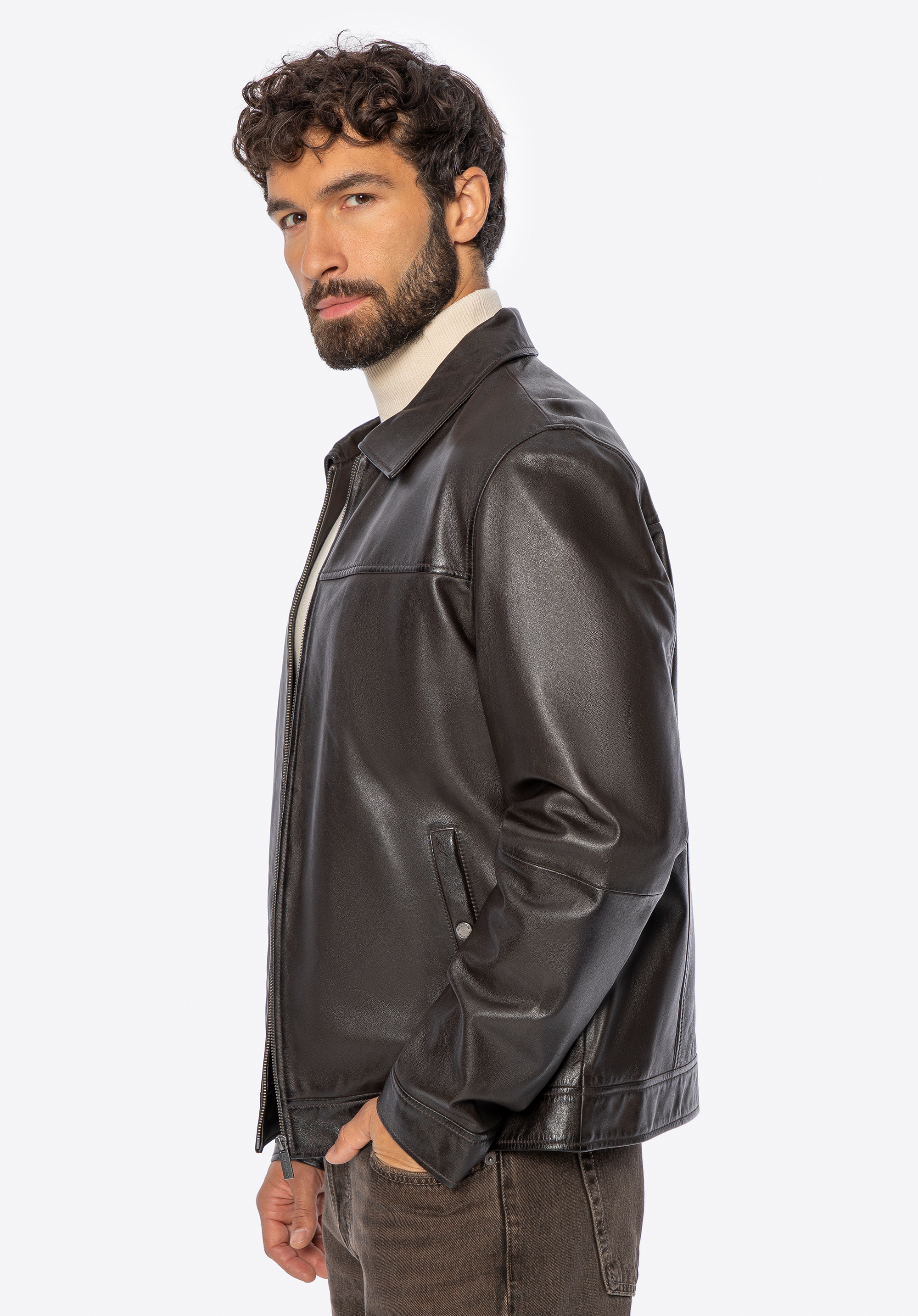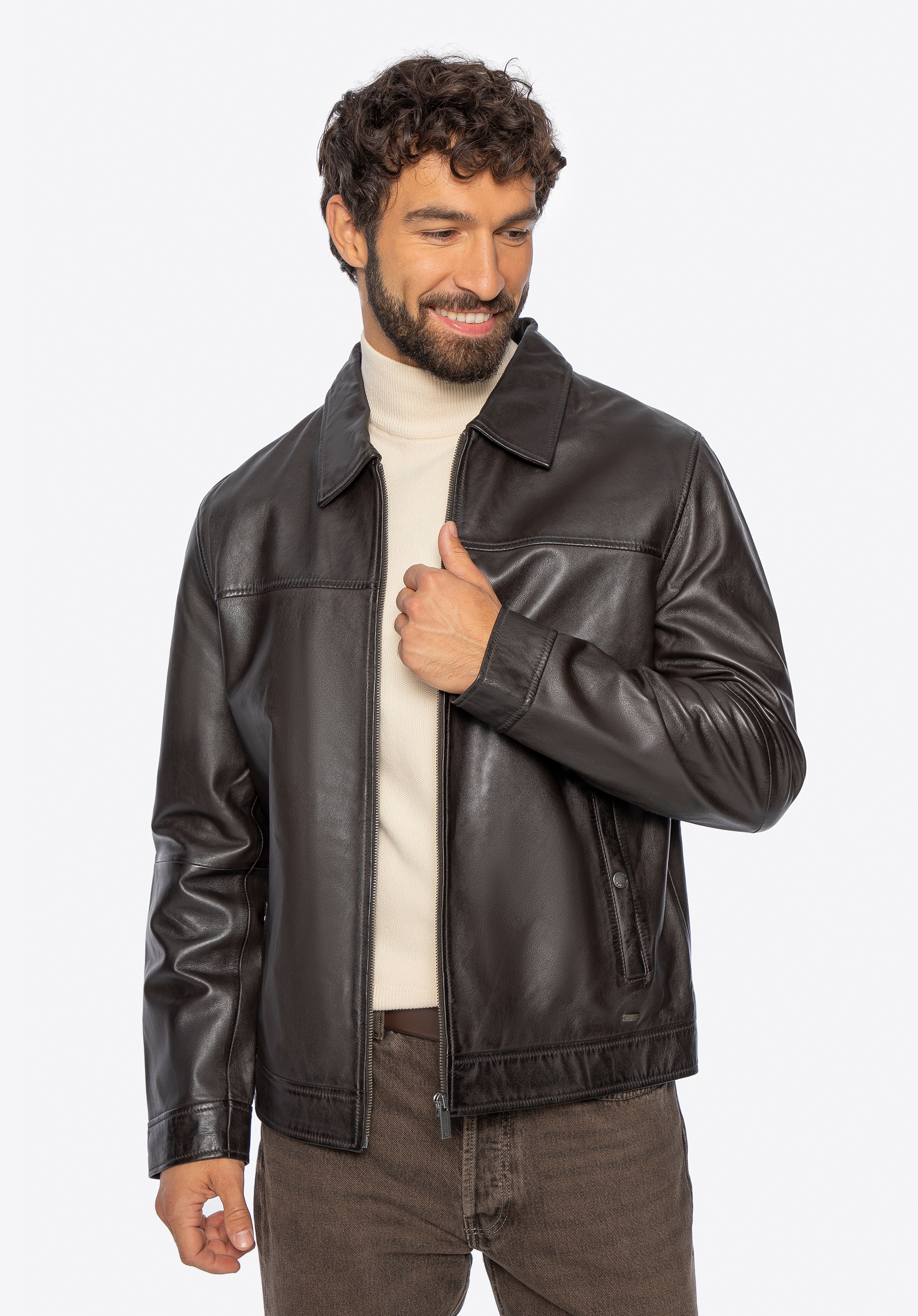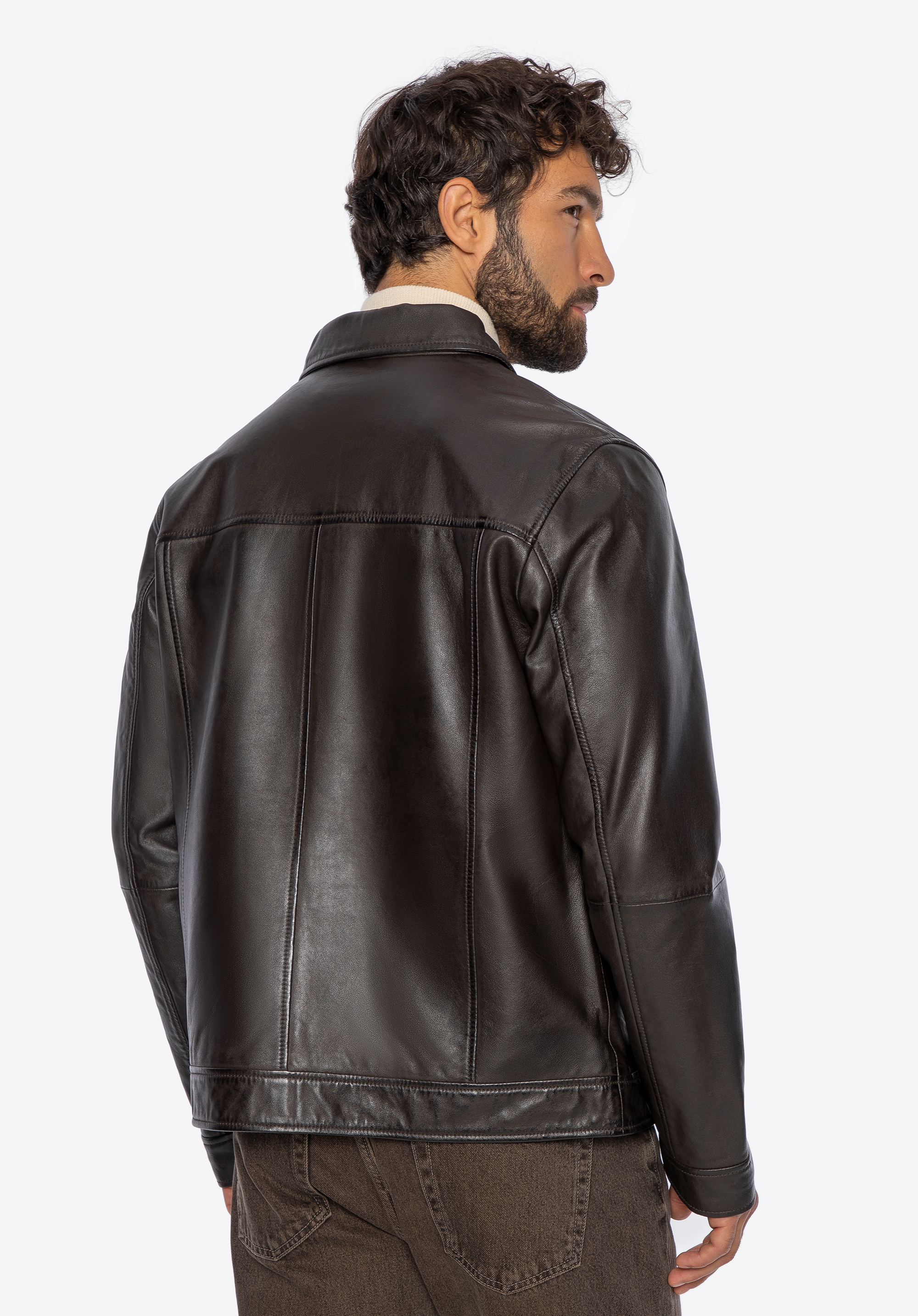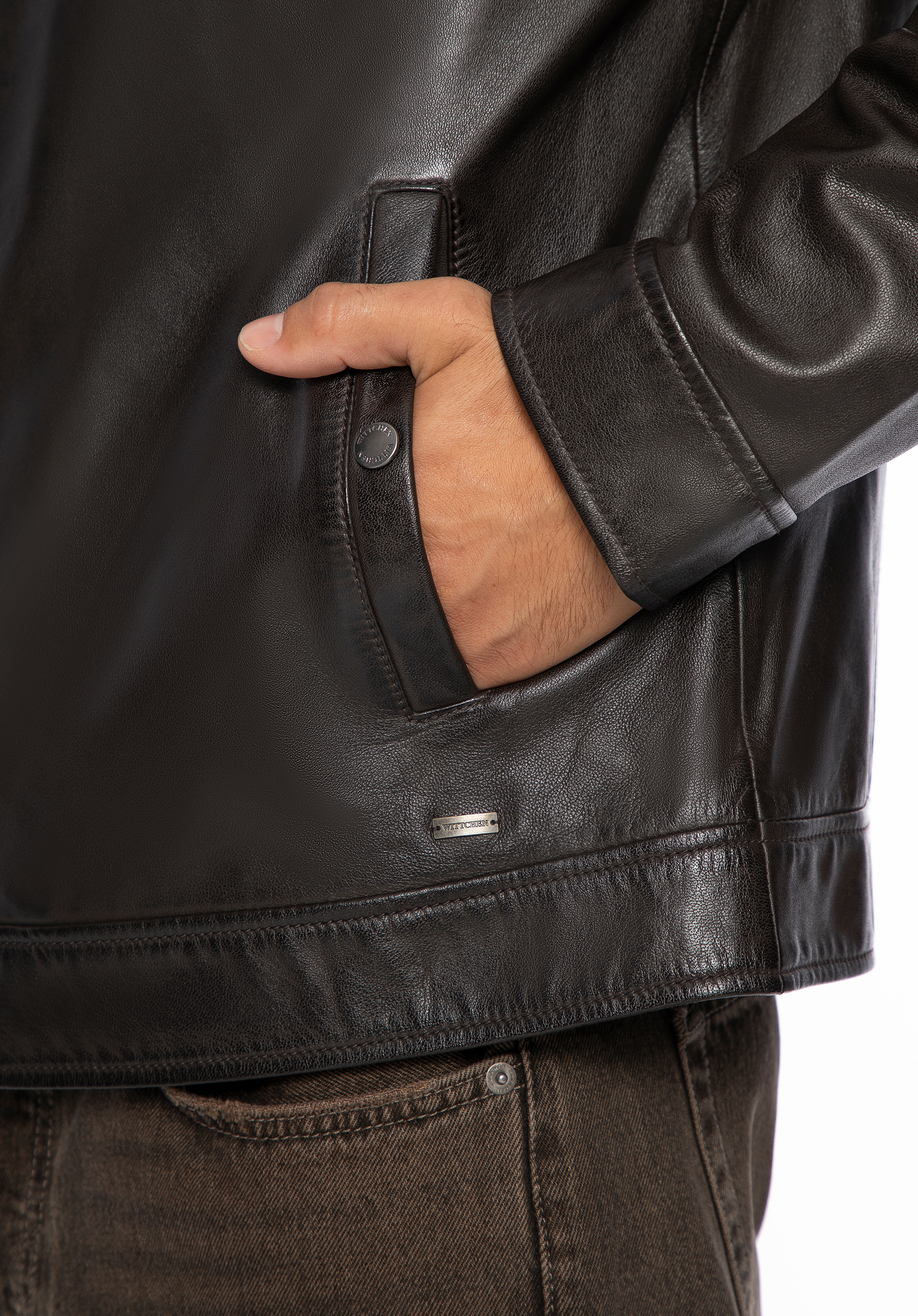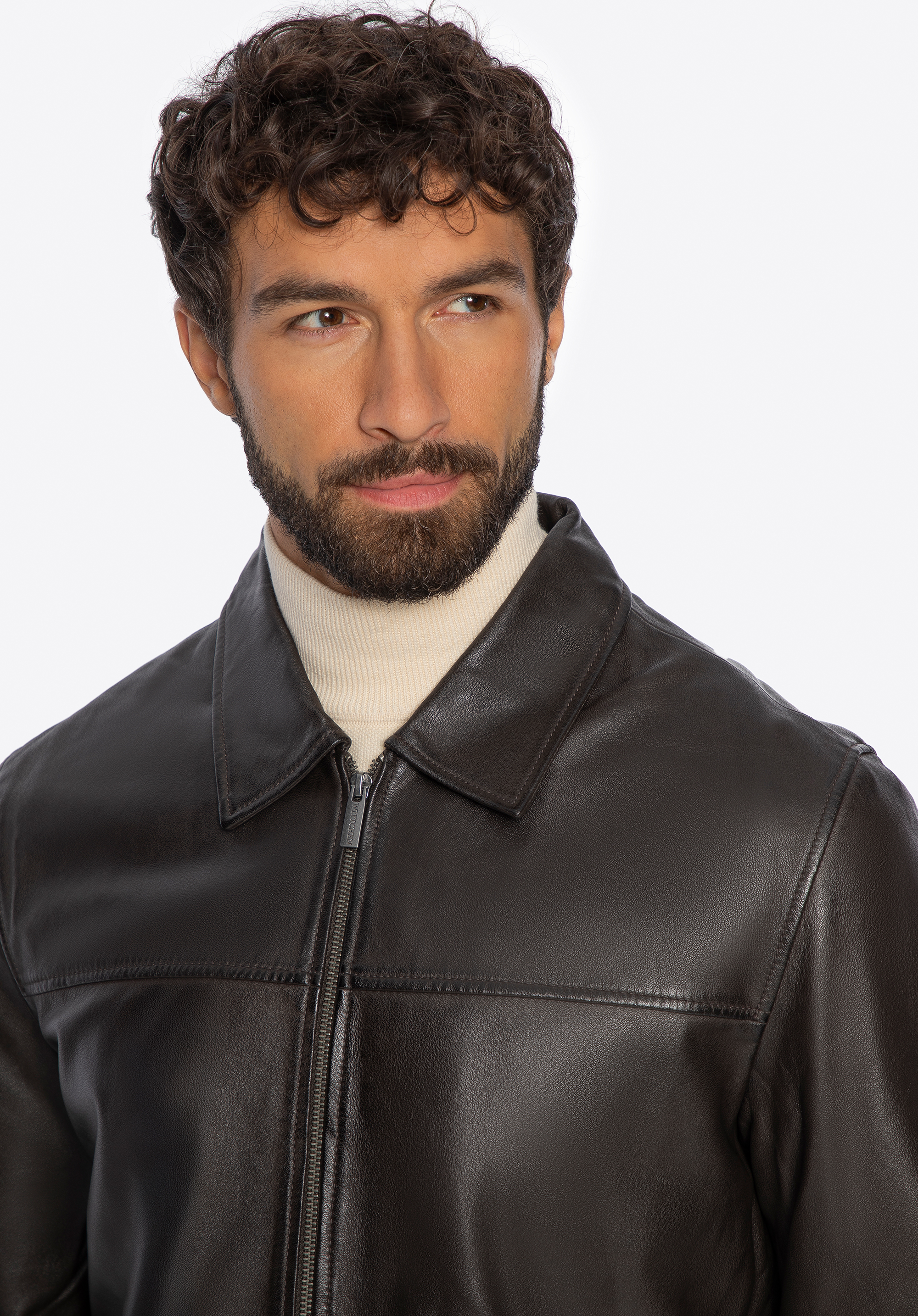 Wählen Sie eine Jacke , die Eleganz und Funktionalität perfekt vereint. Gefertigt aus natürlichem Schafsleder , besticht sie durch Weichheit, Strapazierfähigkeit und klassischen Charme. Der stylische Kragen verleiht der Jacke einen edlen Touch, während der praktische Reißverschluss für Tragekomfort und müheloses Tragen sorgt. Ein seitliches Markenlogo aus Metall und die charakteristischen Reißverschlüsse unterstreichen den exklusiven Charakter der Jacke. Das Design ist auf Funktionalität ausgelegt und verfügt über zwei Seitentaschen mit Druckknopfverschluss für kleine Utensilien sowie zwei Innentaschen – eine davon mit Reißverschluss –, in denen Sie Ihr Telefon, Ihre Brieftasche oder Ihre Dokumente sicher und griffbereit aufbewahren können.