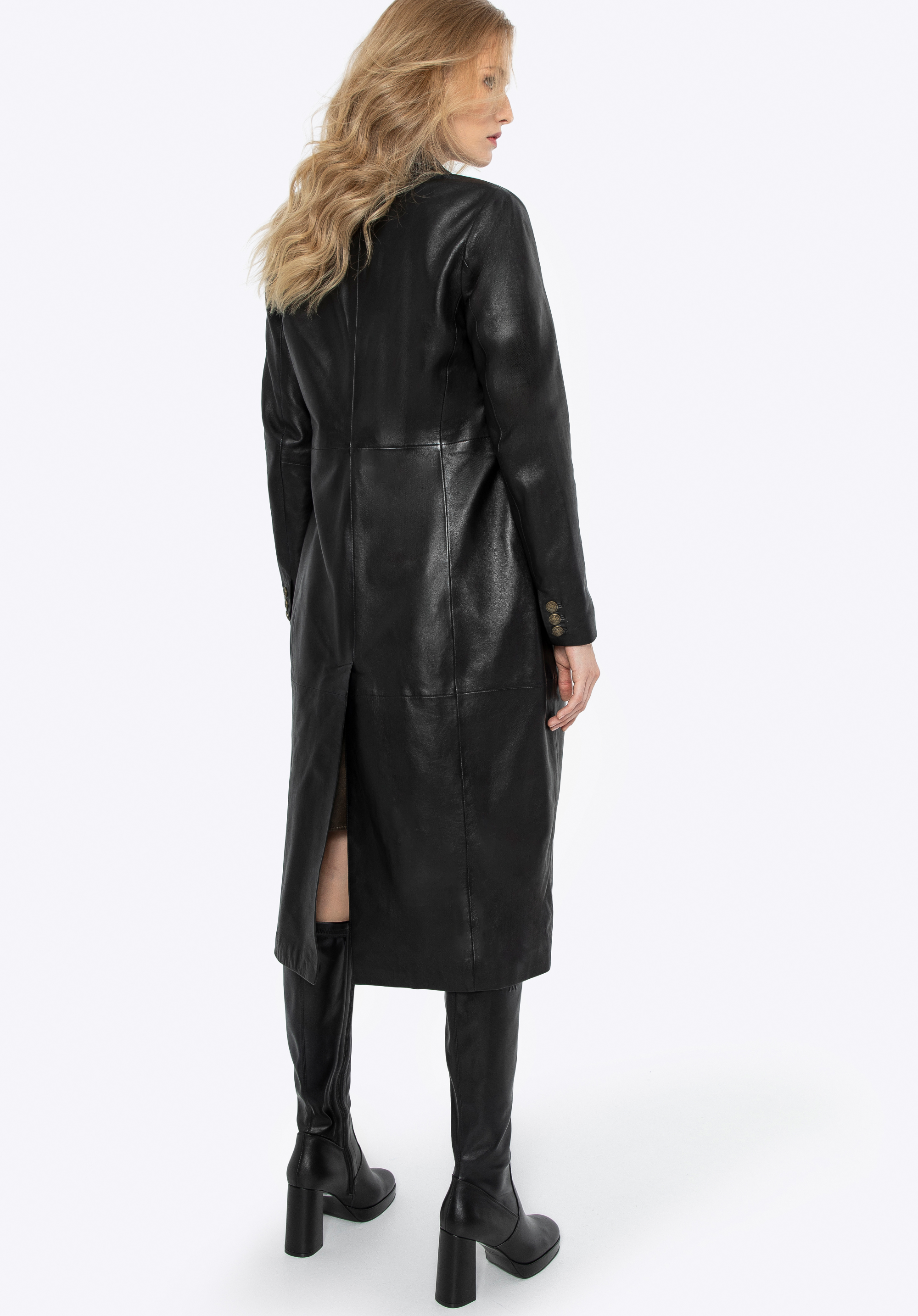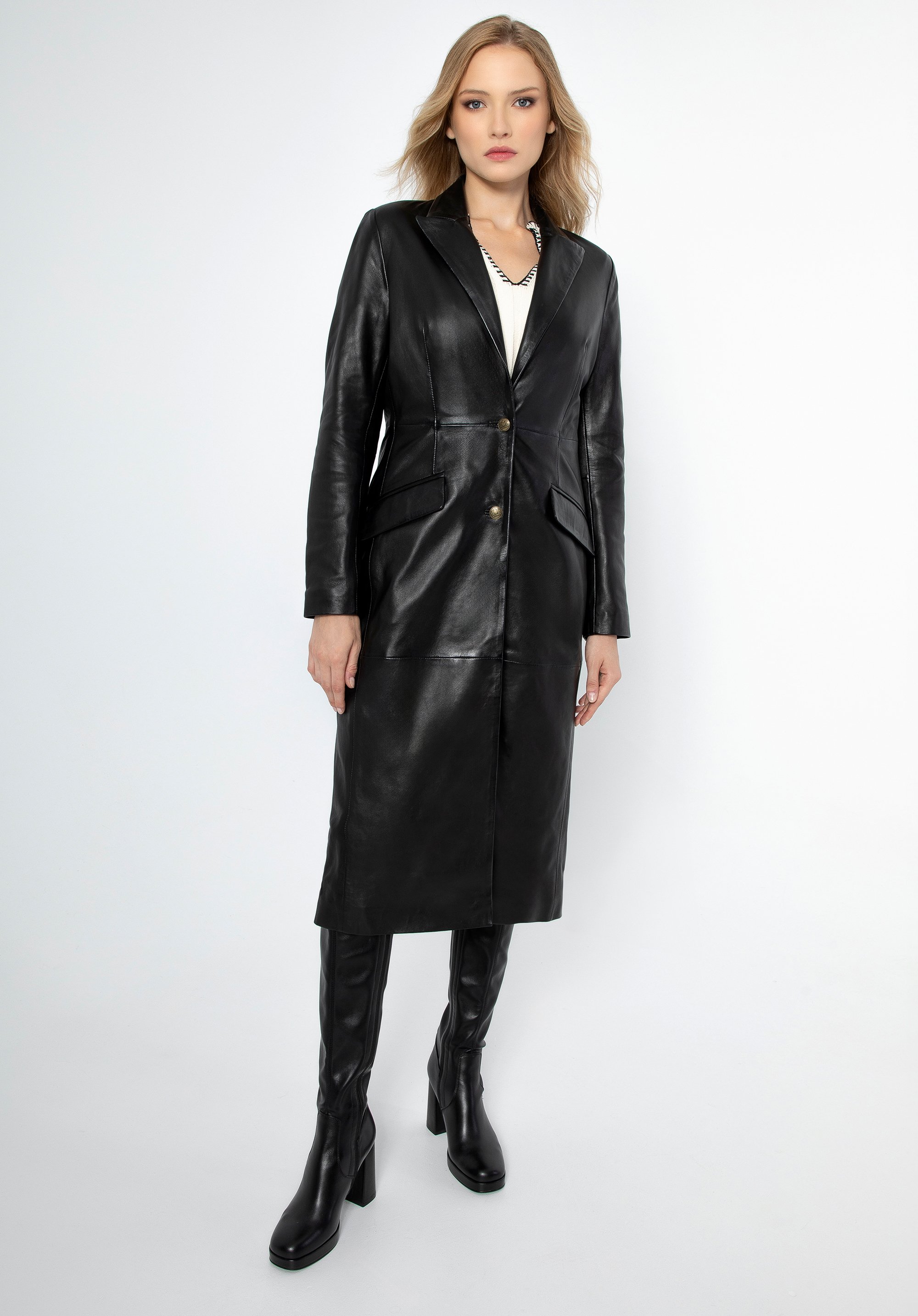 Der klassische Mantel ist zu einem Modeklassiker geworden. Führende Designer nehmen ihn regelmäßig in ihre Kollektionen auf und bestätigen damit seine anhaltende Eleganz und seinen Stil. Wenn Sie nach einem klaren Design suchen, das nie aus der Mode kommt , ist dieser Mantel die perfekte Wahl. Mit Präzision und Liebe zum Detail gefertigt, ist er ein Synonym für Luxus und erlesenen Geschmack und gewährleistet nicht nur ein hervorragendes Aussehen, sondern auch jahrelangen Komfort. Er ist aus weichem Schafsleder höchster Qualität gefertigt und sieht nicht nur umwerfend aus, sondern bietet auch außergewöhnlichen Tragekomfort. Sein klassischer, klarer Schnitt macht ihn zur idealen Wahl für jede Frau, die Eleganz und zeitlosen Stil schätzt.