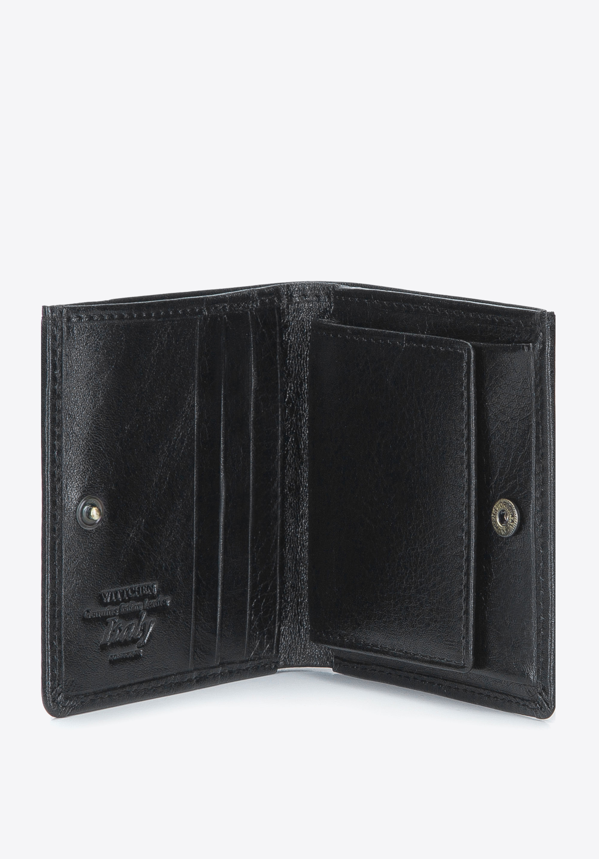 Ein Lederportemonnaie mit klassischem Schnitt, sehr praktisch und elegant. Ein großer Vorteil des Modells ist seine geringe Größe, wodurch die Brieftasche handlich und großartig für seine Funktionen ist.