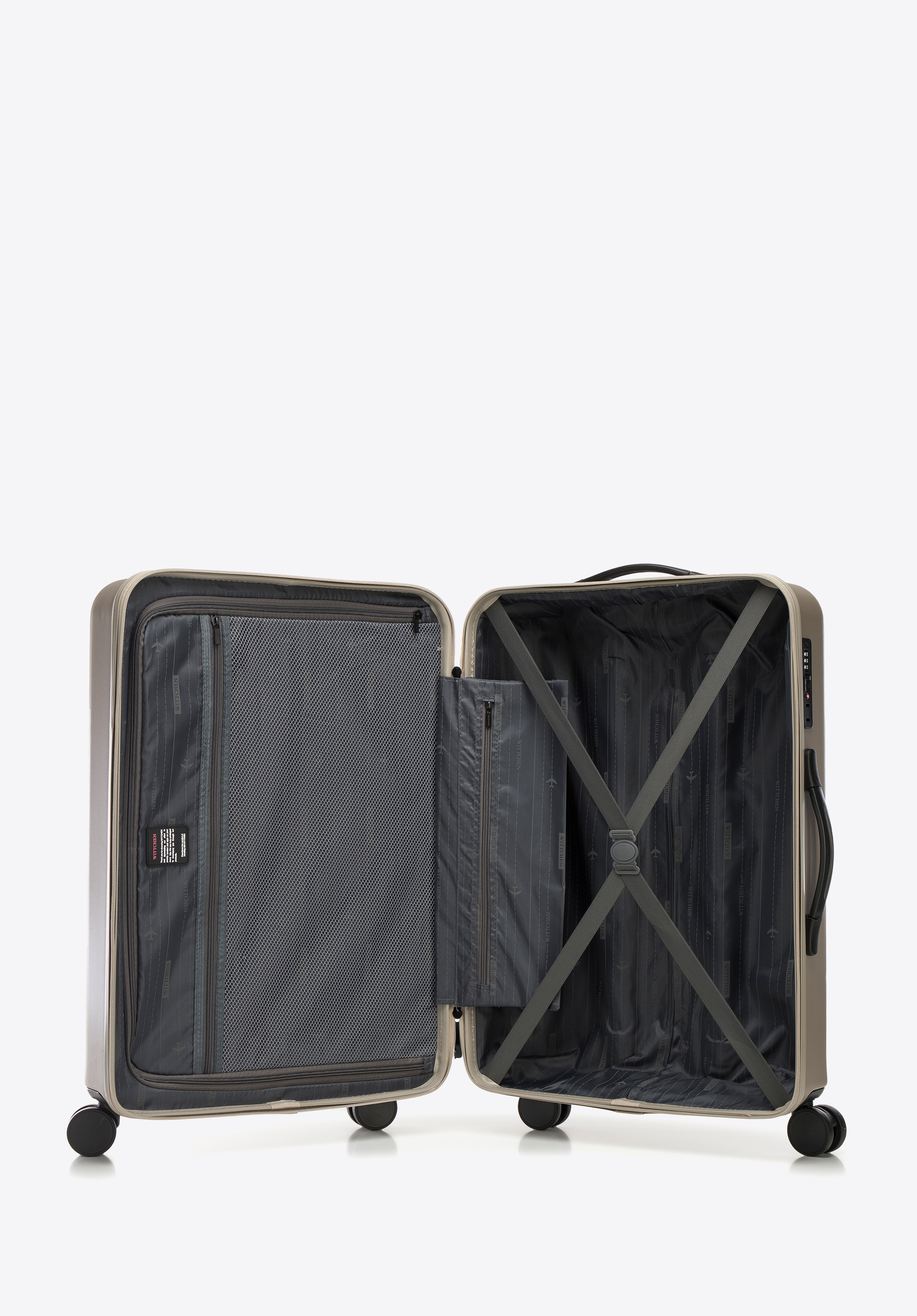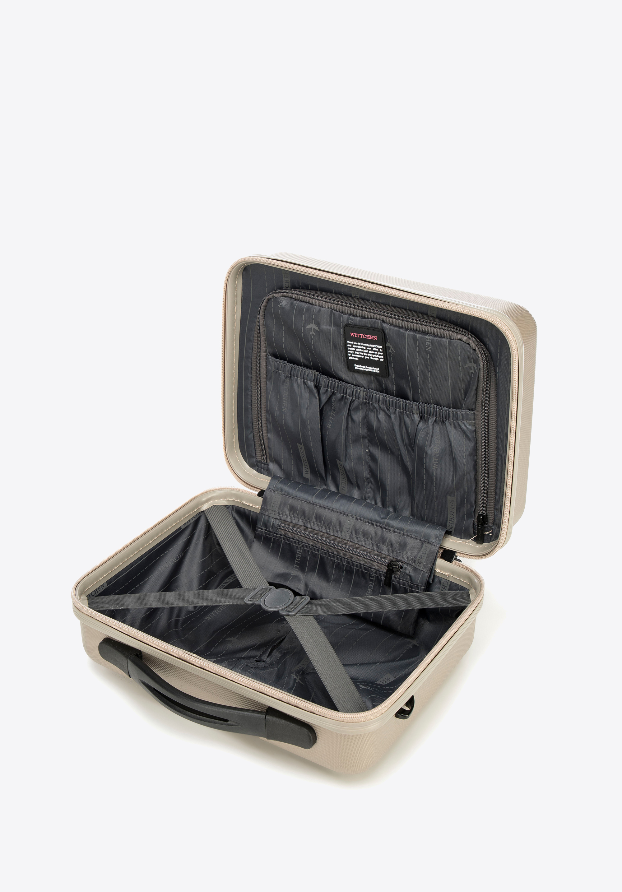 - Riemen auf der Rückseite zur Befestigung am Koffergriff ;