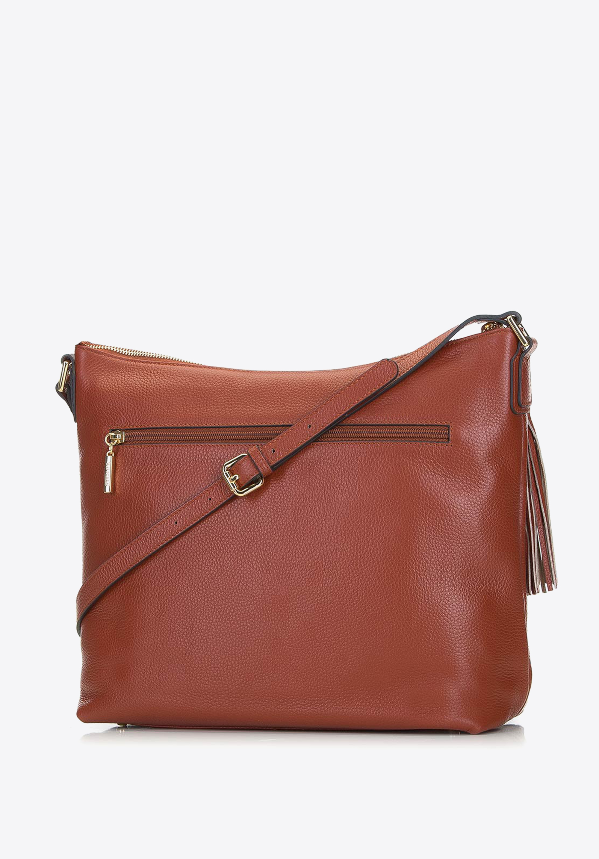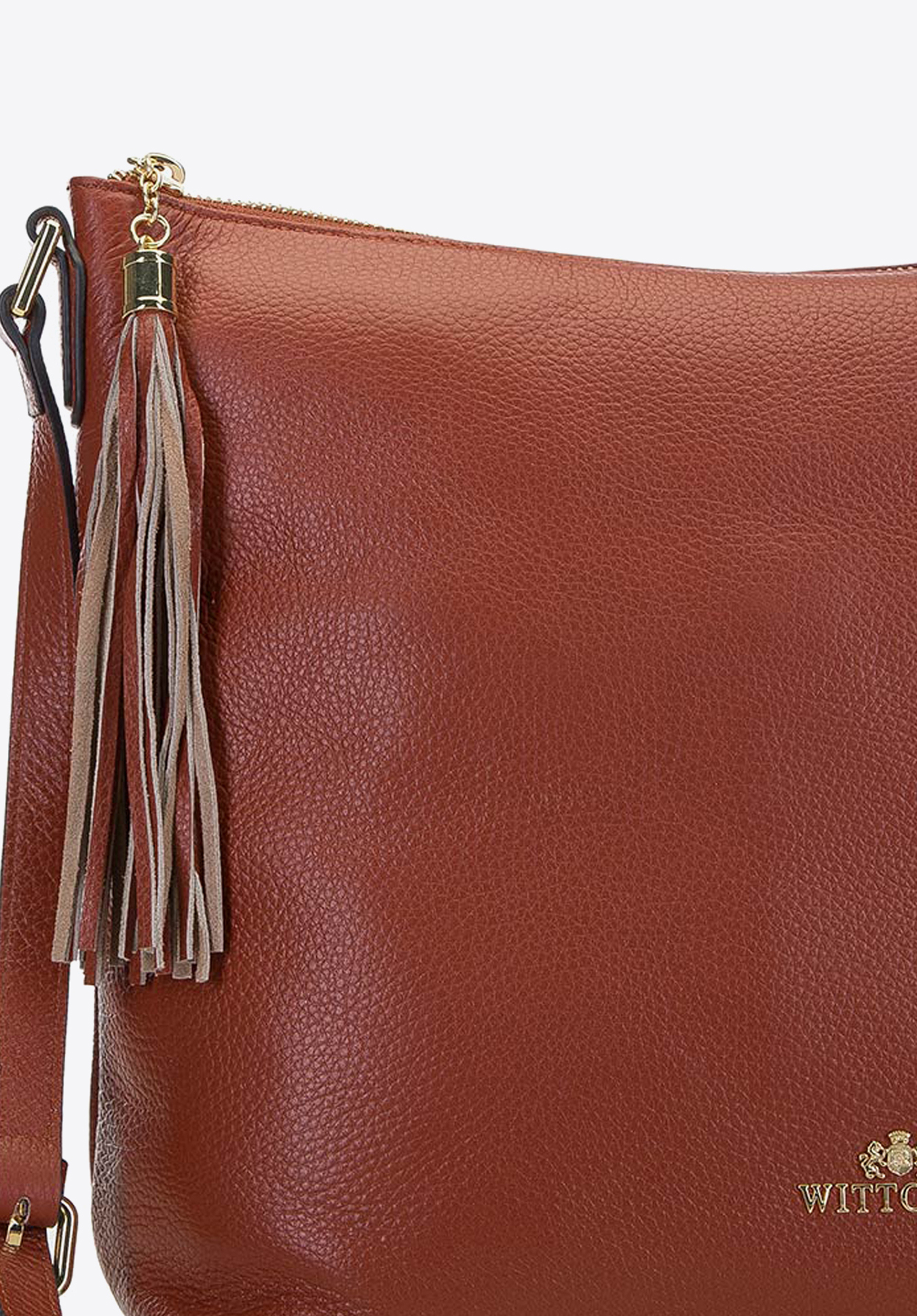 Die elegante Ledertasche erfüllt die Erwartungen jeder Frau, die die hochwertige Verarbeitung schätzt. Das klassische Modell in Beutelform bezaubert mit zeitlosem und elegantem Design. Die schlichte Form wird nur durch einen langen Quastenanhänger und die metallenen Details betont. Dank des übersichtlichen Hauptfachs bietet die Damentasche genug Platz für alle wichtigen Utensilien des Alltags wie Handy, Portemonnaie, Wasserflache und kleine Kosmetiktasche. Die edle Umhängetasche wird aus echtem Leder gefertigt, das besonders lang haltbar ist und im Laufe der Jahre an Charakter gewinnt. Mit dem längenverstellbaren Schulterriemen können Sie dieses Accessoire ganz praktisch cross-over tragen.