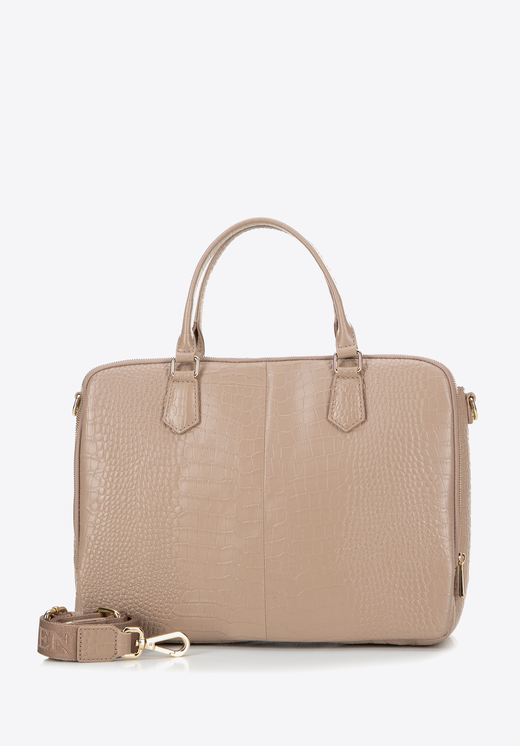 Entdecken Sie die perfekte Kombination aus Eleganz und Funktionalität mit unserer 15,6-Zoll-Laptophandtasche . Diese aus Naturleder höchster Qualität mit stilvoller Krokostruktur gefertigte Handtasche kombiniert ein luxuriöses Erscheinungsbild mit modernem Design und erfüllt damit perfekt die Bedürfnisse der modernen Frau. Dezente Details wie schicke Metallteile verleihen ihr einen einzigartigen Charakter, während ihre unverwechselbare Struktur jedem Outfit eine raffinierte Note verleiht.