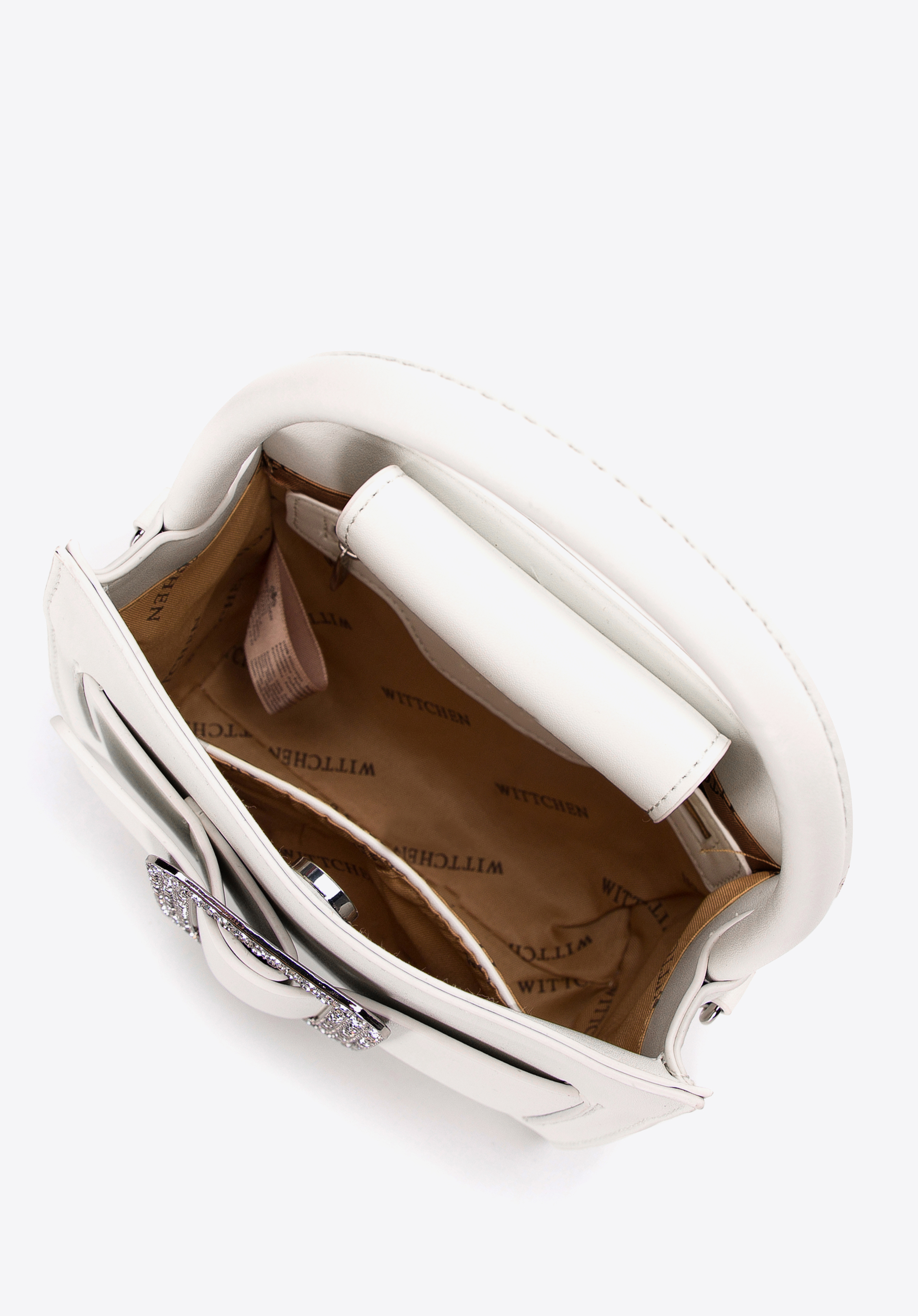 Diese modische kleine Handtasche solle jede elegante Dame haben. Der gepolsterte Schnitt wird durcheine große, glitzernde Schnalle mit Kristallen ergänzt. m Inneren können Sie das Nötigste unterbringen: ein Handy, ein Kartenetui, ein Lieblingslippenstift und ein paar Kleinigkeiten. Sie können die Tasche in der Hand tragen oder sie mit dem verstellbaren Riemen über die Schulter hängen. Kombinieren Sie sie mit einem Cocktailkleid oder mit einer Boyfriend-Jeans und einem Hemd. Die Damen-Minitasche mit glänzender Schnalle ist ein originelles Accessoire und eine gute Wahl für Liebhaber eleganter Accessoires.