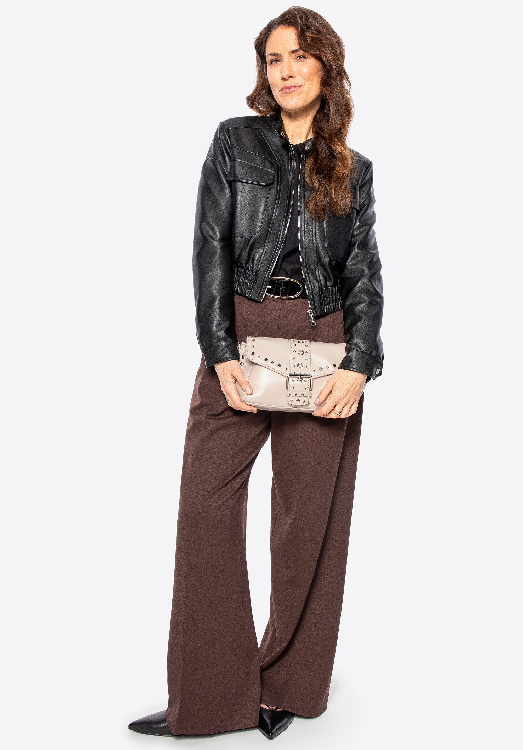 Unser Tipp: Die Jacke lässt sich perfekt mit minimalistischen Umhängetaschen oder eleganten Crossbody-Bags kombinieren. Kombiniert mit klassischen Stiefeln mit Absatz oder sportlichen Sneakers kreieren Sie einen Look für jede Gelegenheit.