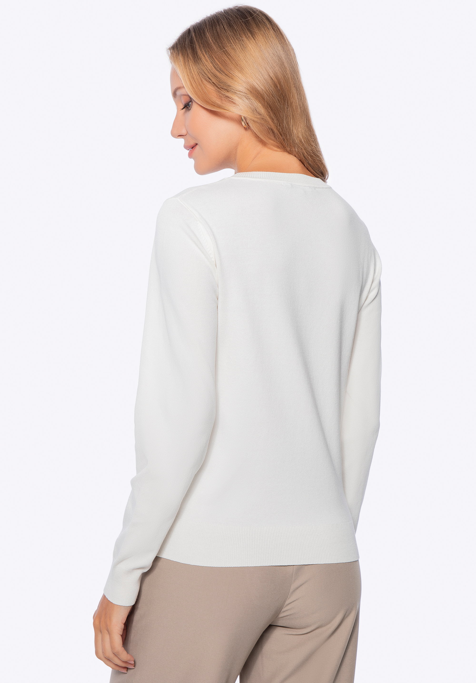 Für wen ist dieser Pullover geeignet? Wenn Sie Schlichtheit, Komfort und Vielseitigkeit in Ihren Alltagsoutfits schätzen, ist dieser Pullover eine hervorragende Ergänzung für Ihre Garderobe. Perfekt für die Arbeit oder Treffen mit Freunden – das Design lässt sich problemlos für viele Anlässe kombinieren.