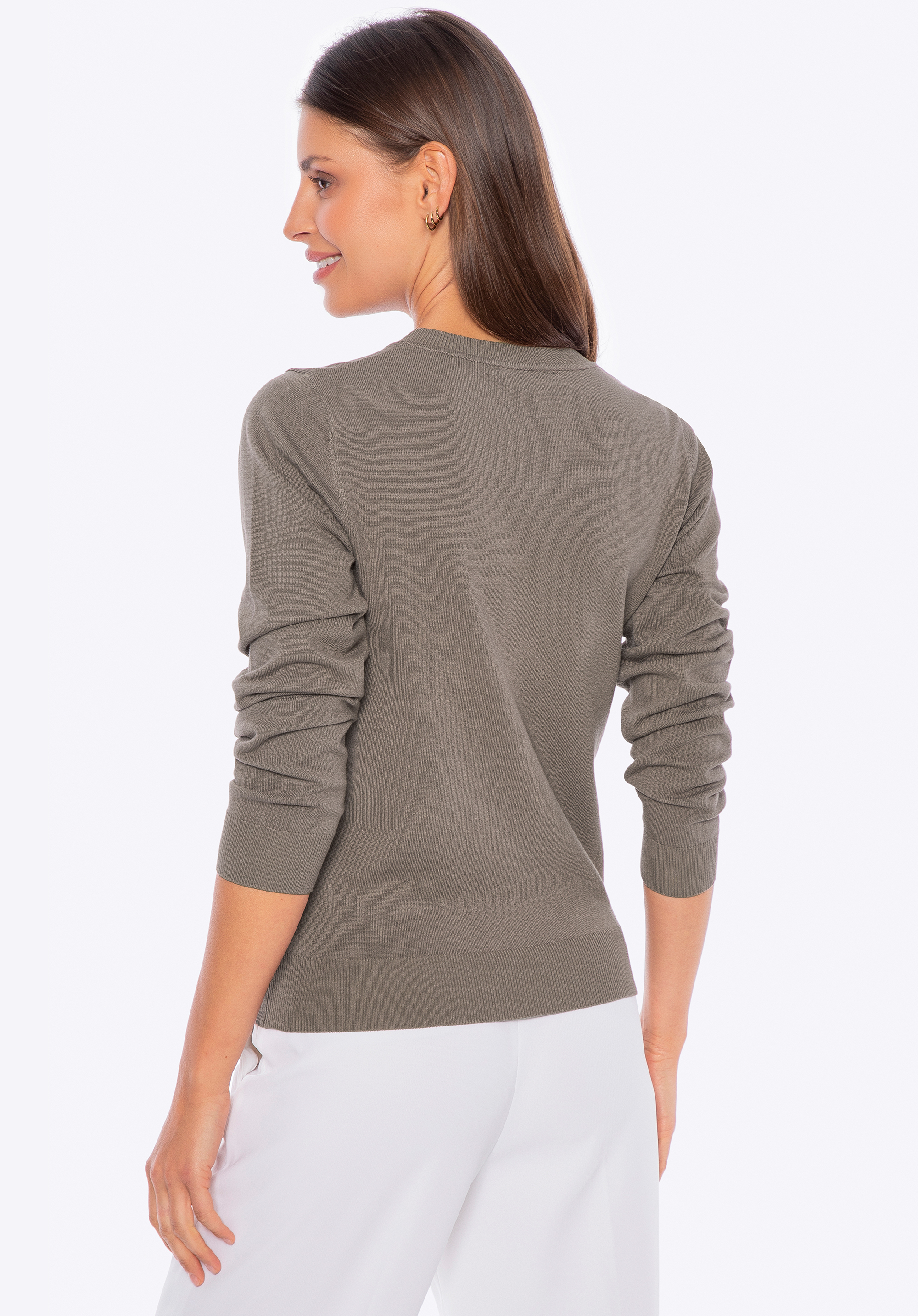Eine Strickjacke, die Sie immer wieder tragen werden – schlicht, bequem und leicht zu stylen. Kurz gesagt: ein praktisches Basic für Ihre Garderobe.