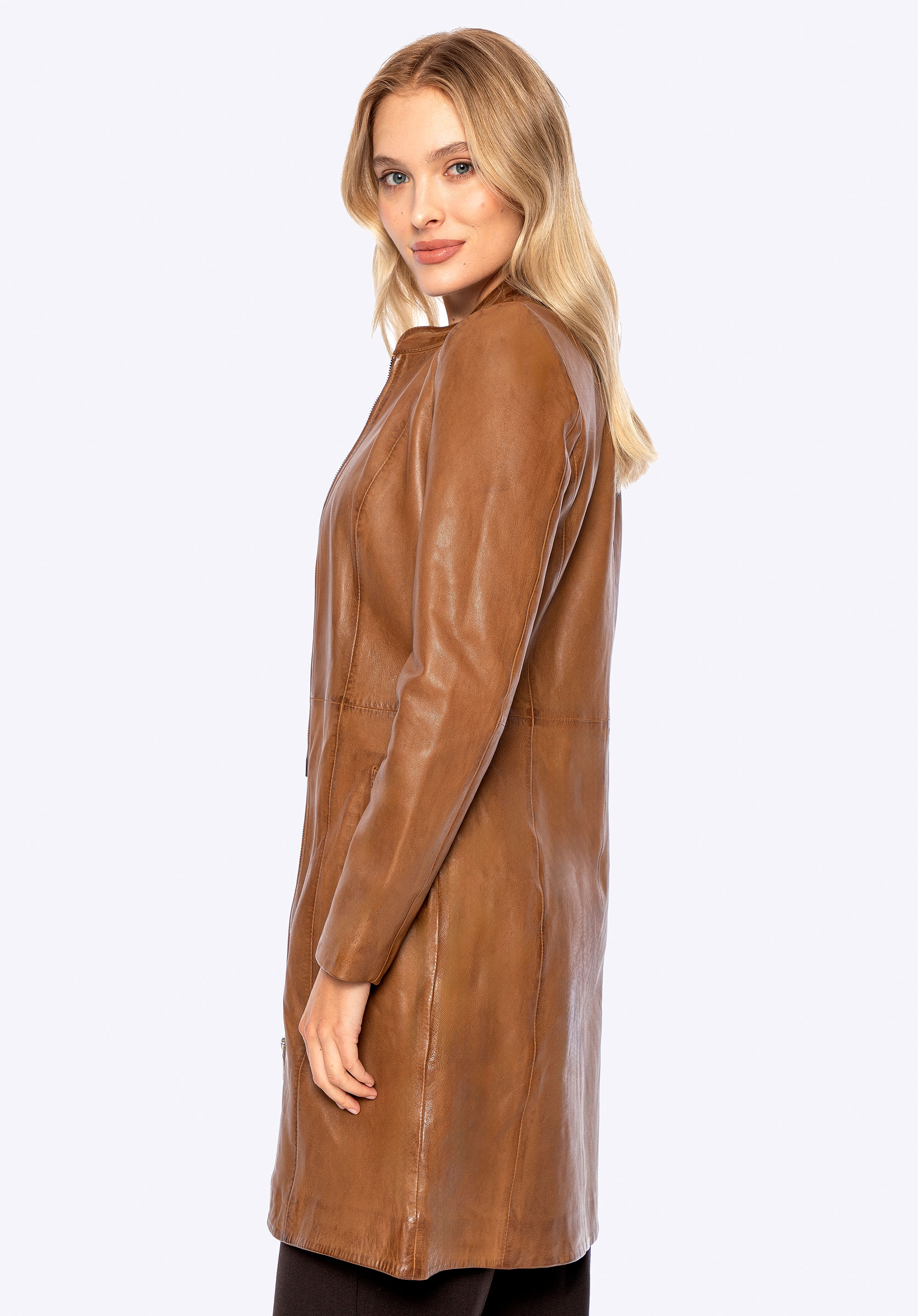 Zeitlos und edel – dieser Ledermantel wird zum zuverlässigen Essential für die Übergangszeit und verleiht jedem Outfit raffinierte Eleganz.
