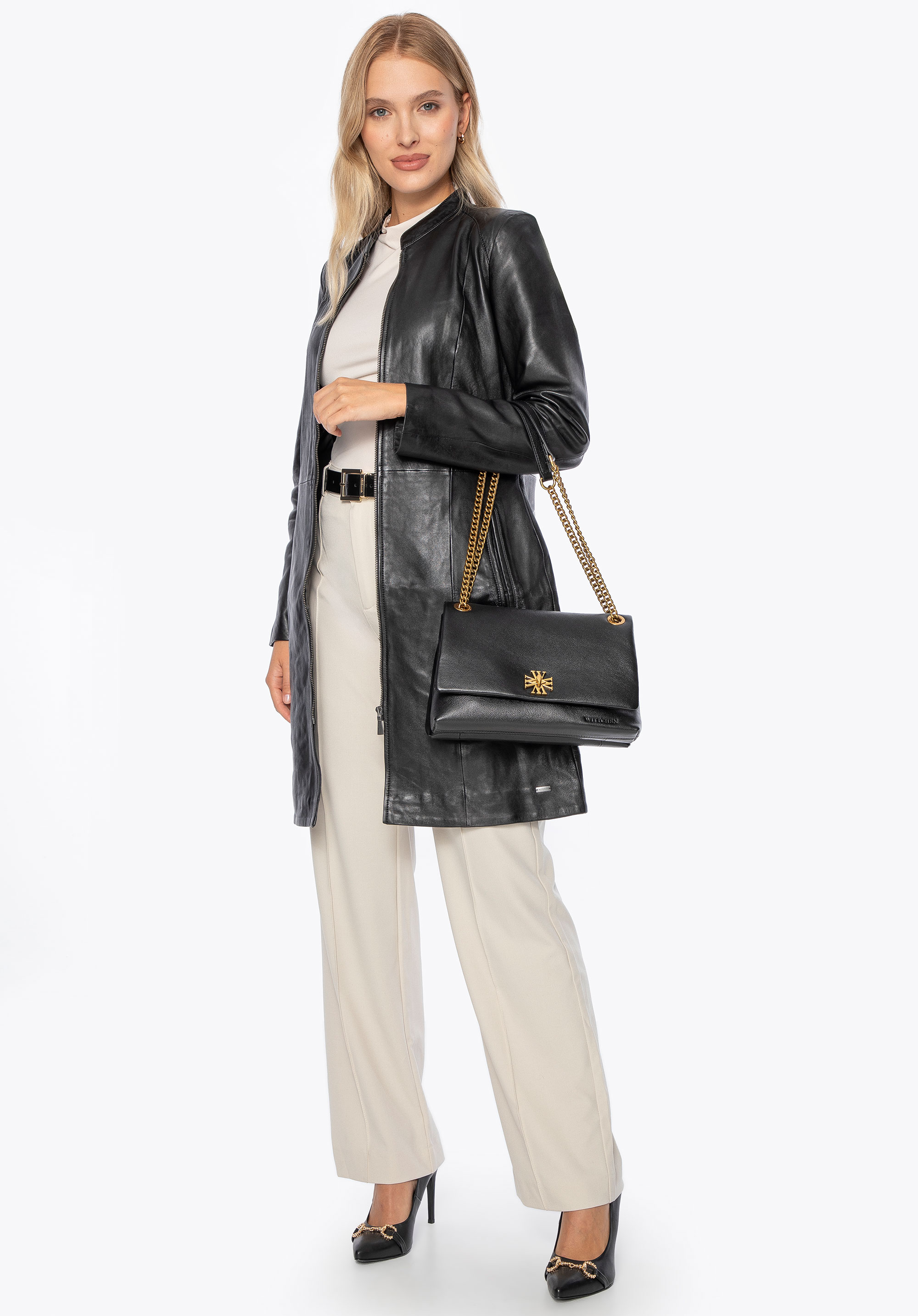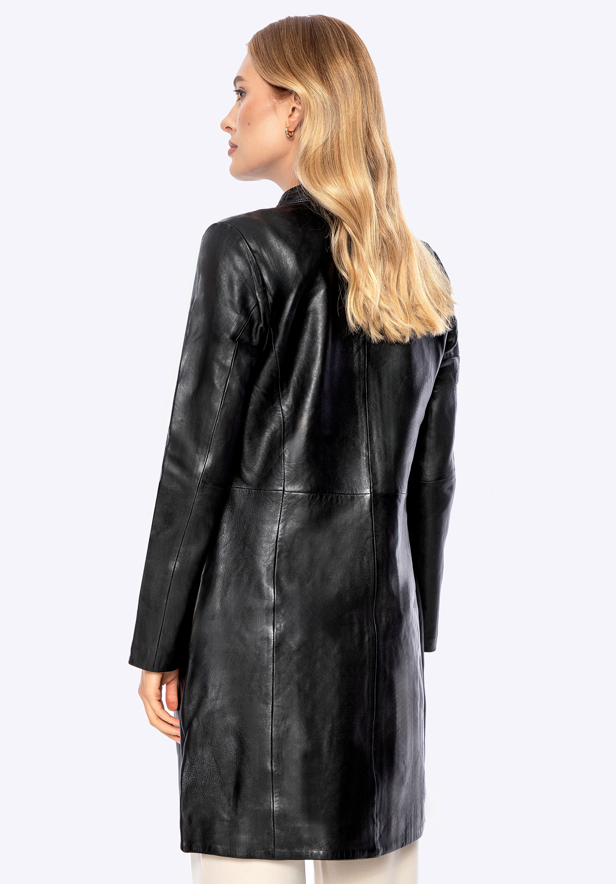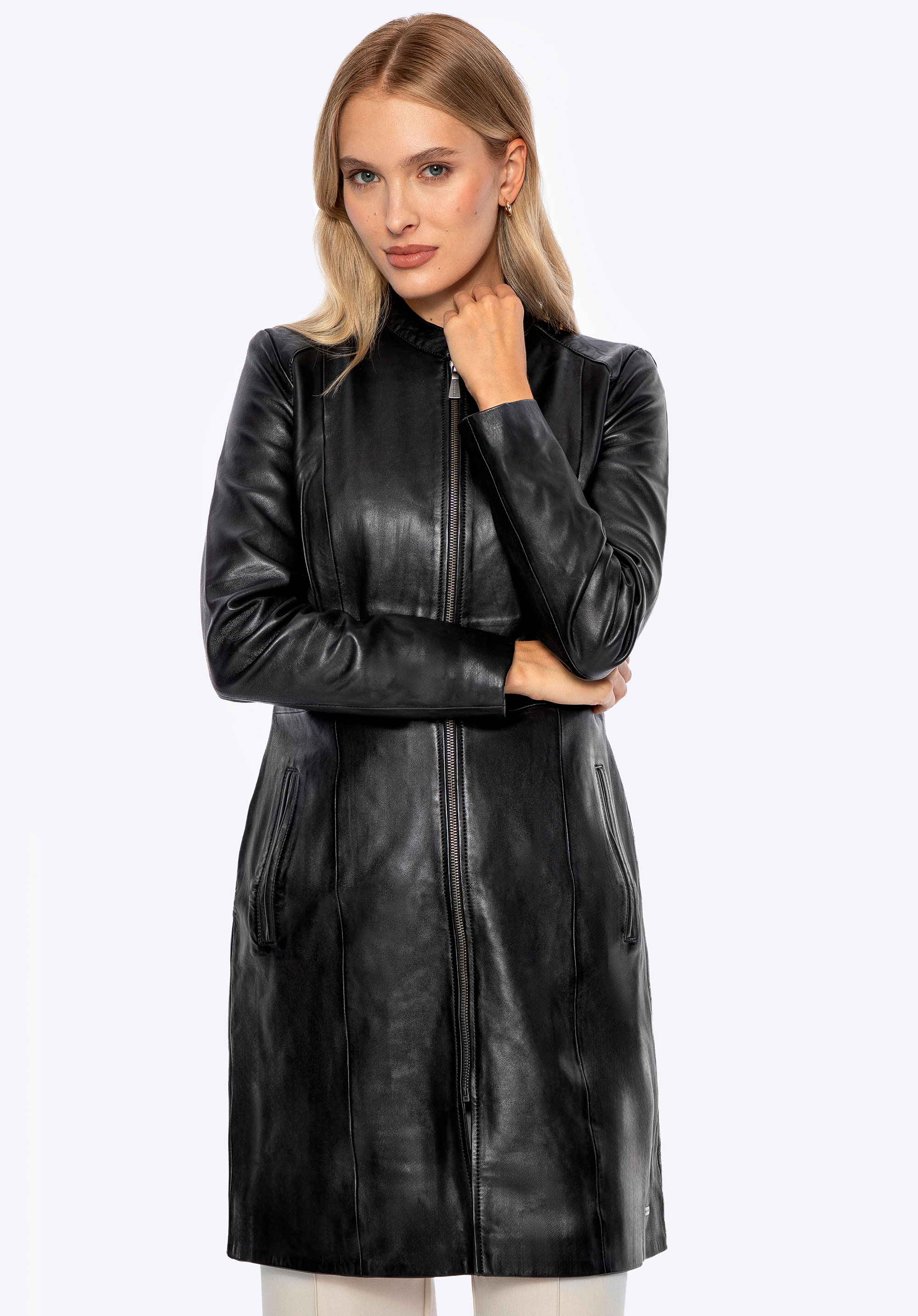 Zeitlos und edel – dieser Ledermantel wird zum zuverlässigen Essential für die Übergangszeit und verleiht jedem Outfit raffinierte Eleganz.