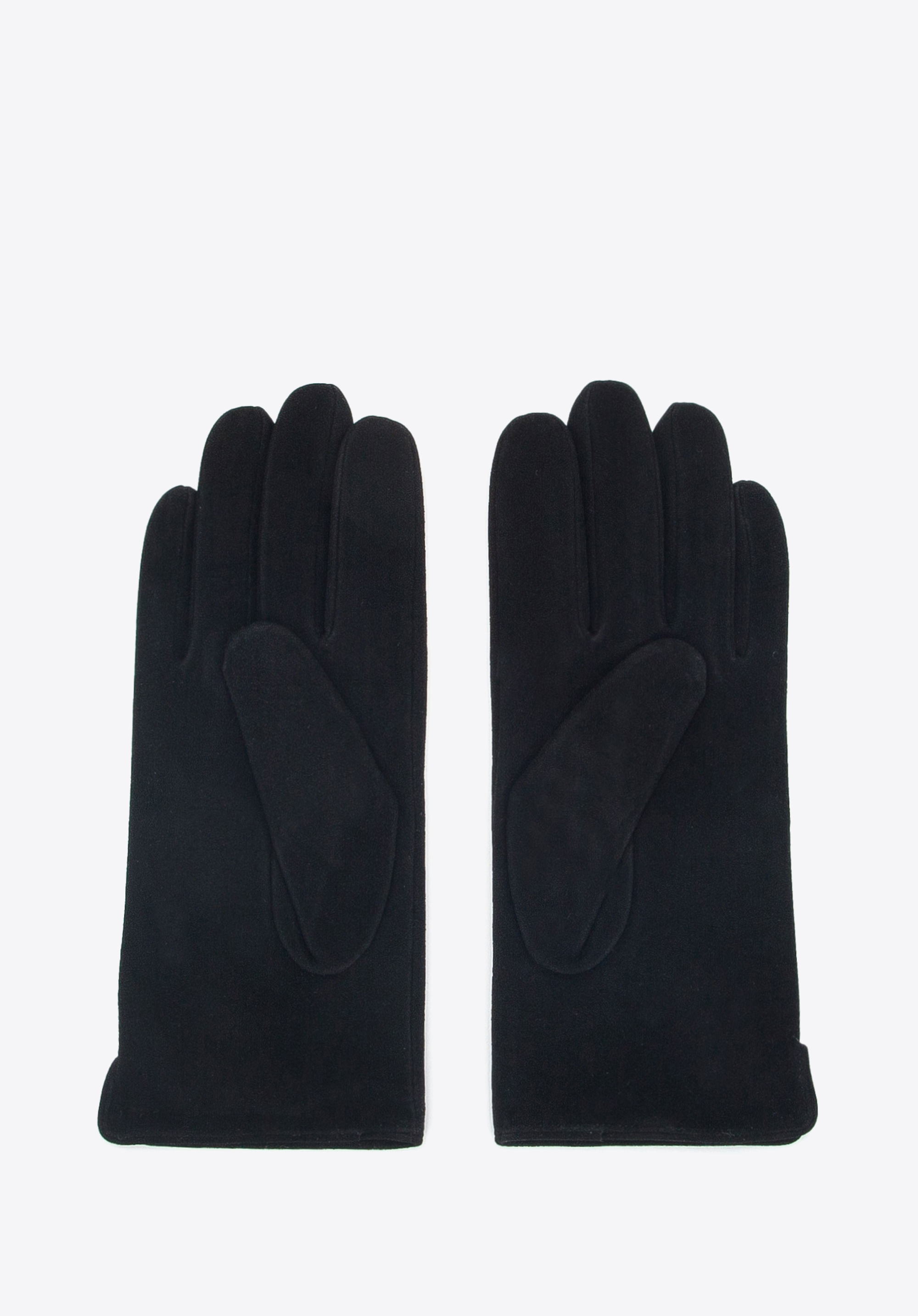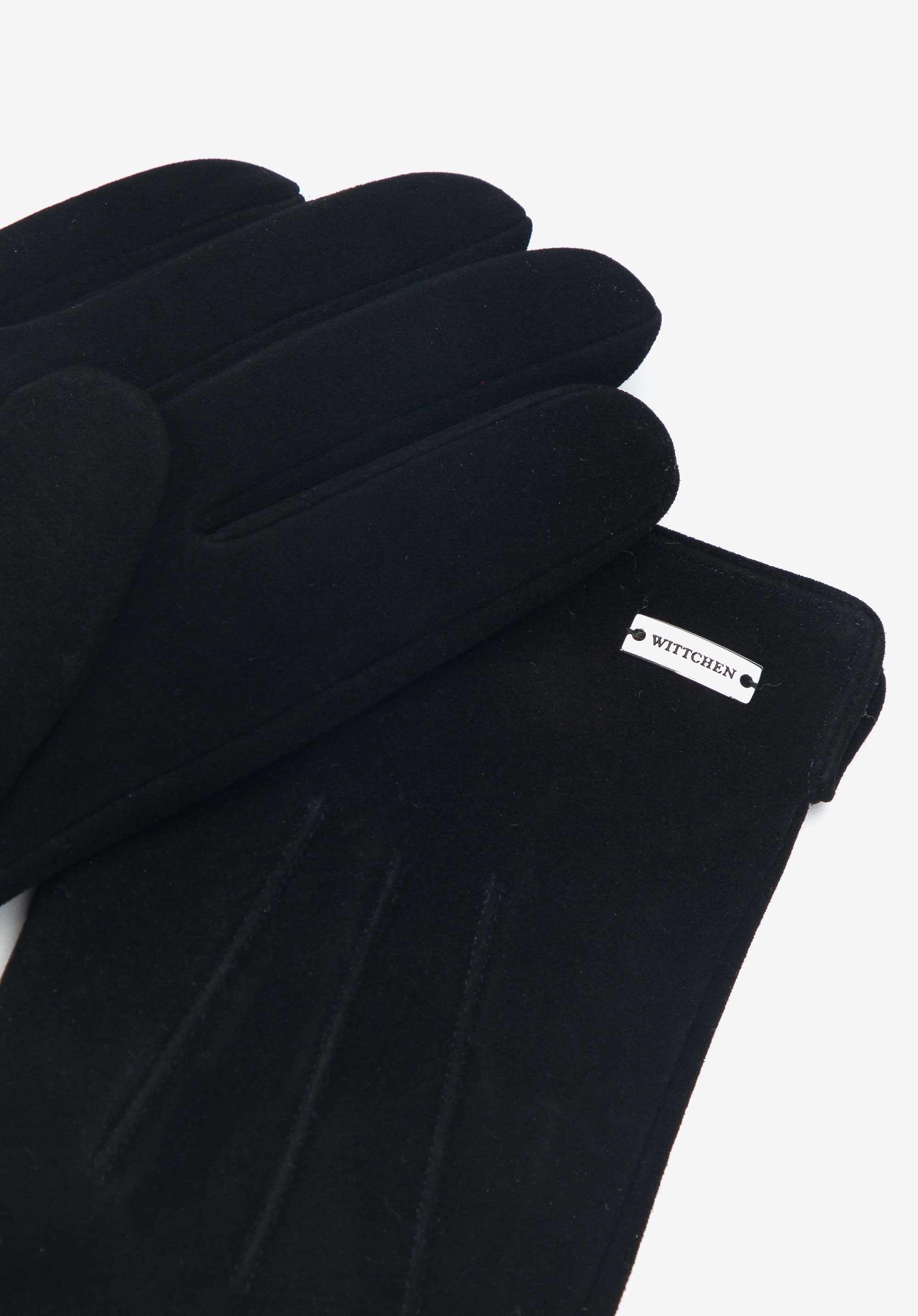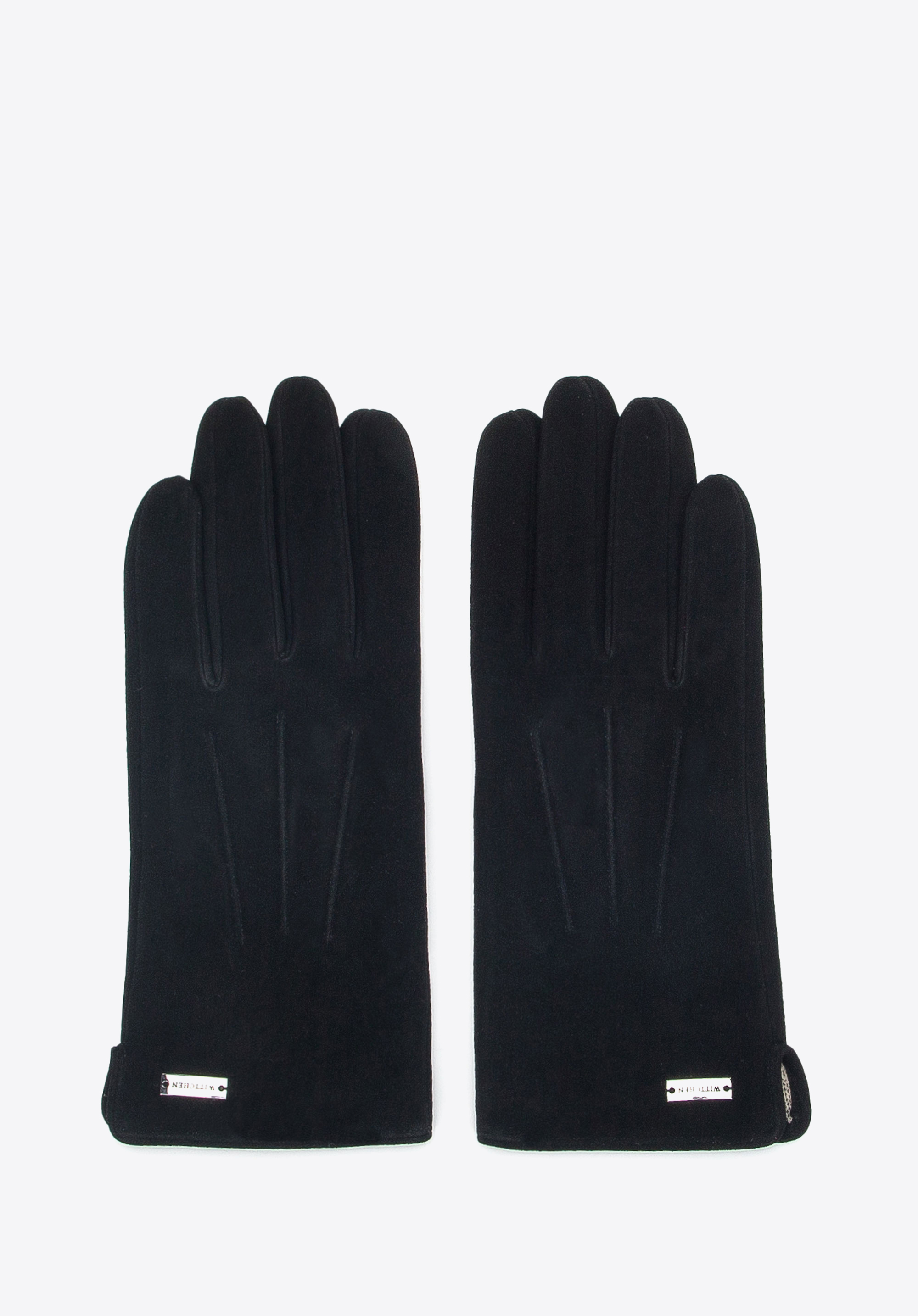 Diese schicken Handschuhe verleihen jedem Outfit einen eleganten Charakter. Sie sind aus Veloursleder gefertigt, das sich angenehm anfühlt. Das 70%ige Wollfutter hält Sie an kälteren Tagen warm. Dieses Modell passt perfekt zu einem klassischen Trenchcoat und kann auch eine Daunenjacke stilvoll ergänzen. Die Damenhandschuhe aus Velour sind eine tolle Geschenkidee für jede Frau.